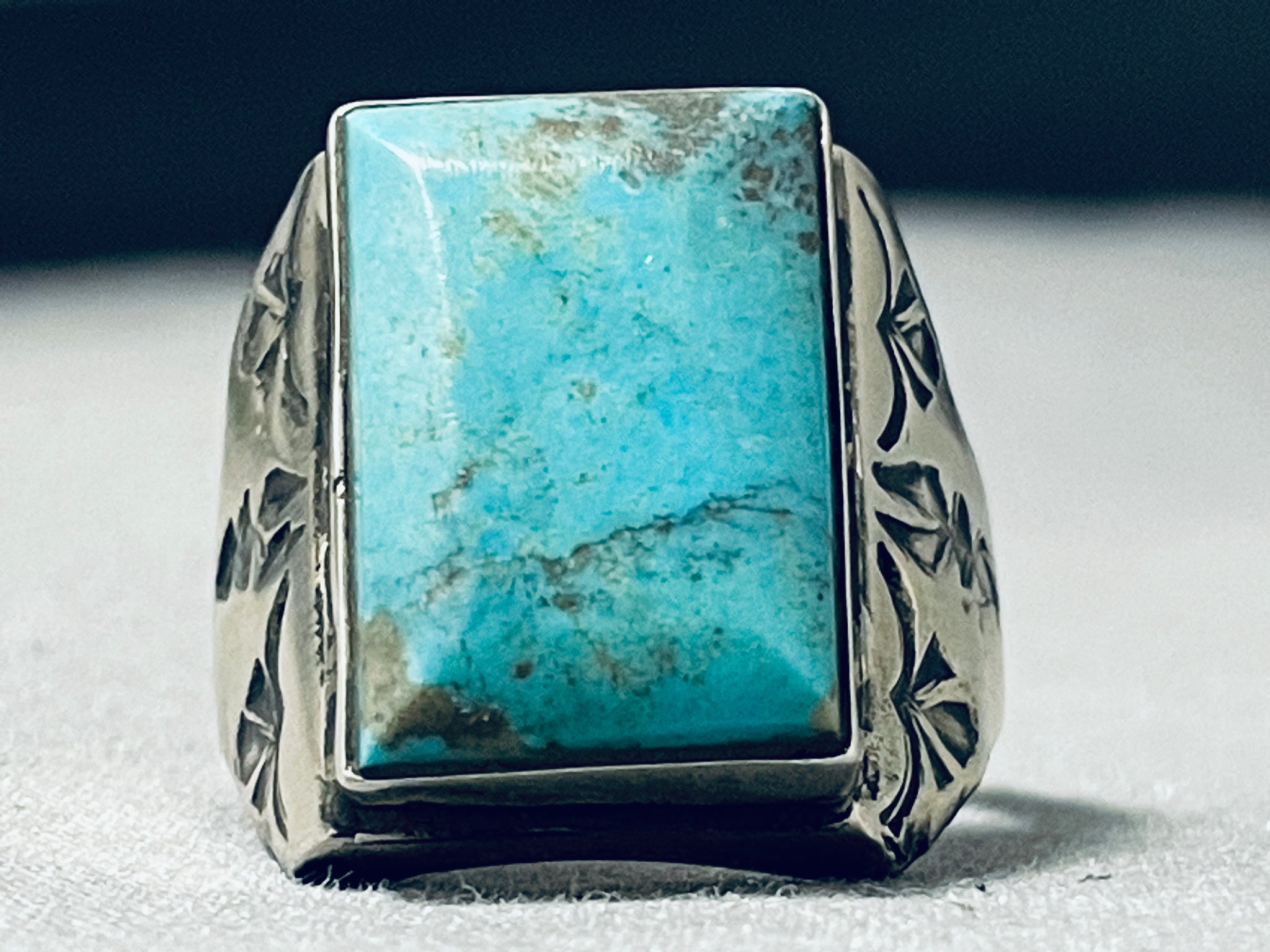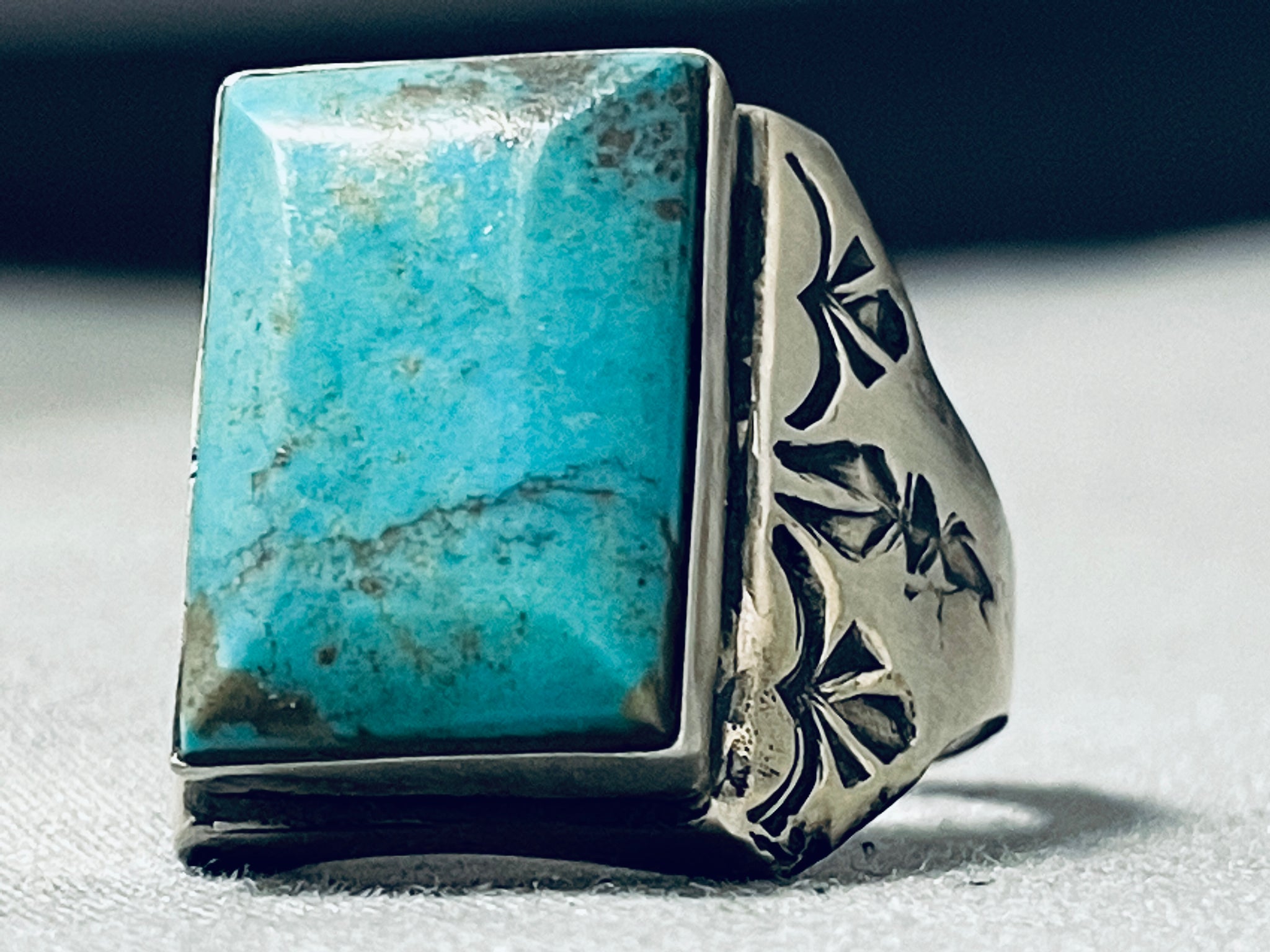 Outstanding Vintage Native American Navajo Kingman Turquoise Square Sterling Silver Ring