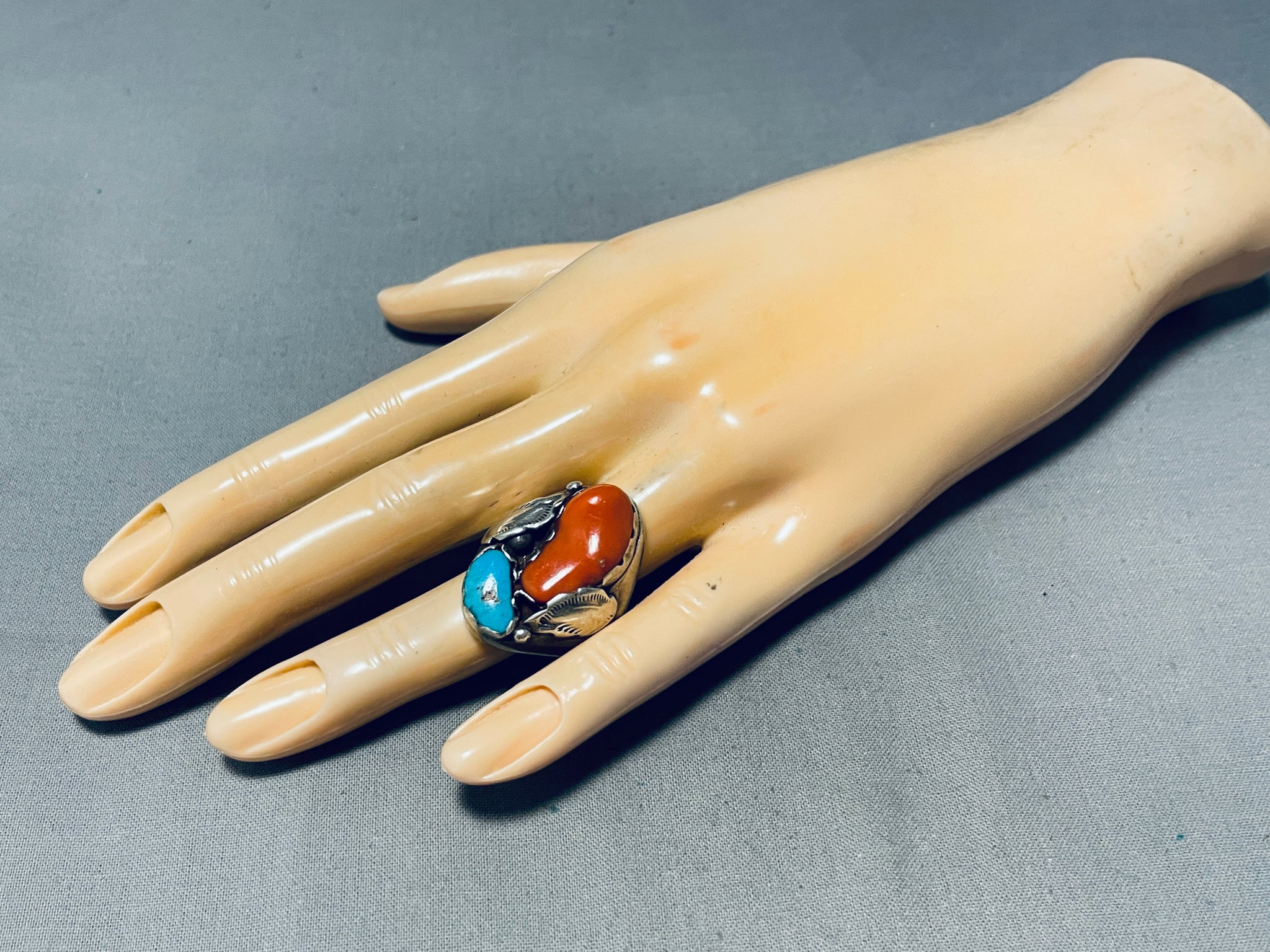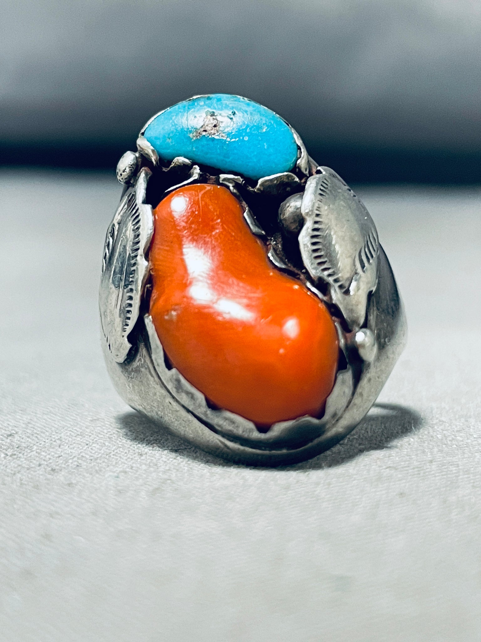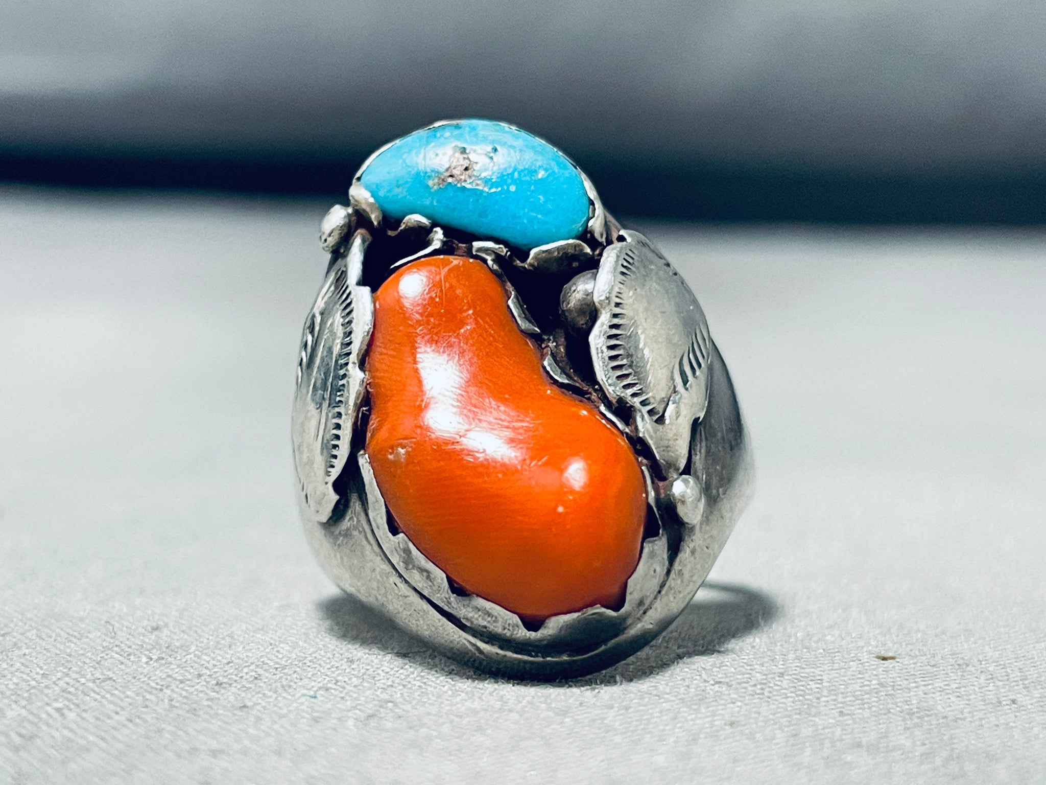 Outstanding Vintage Native American Navajo Pilot Mountain Turquoise Sterling Silver Ring