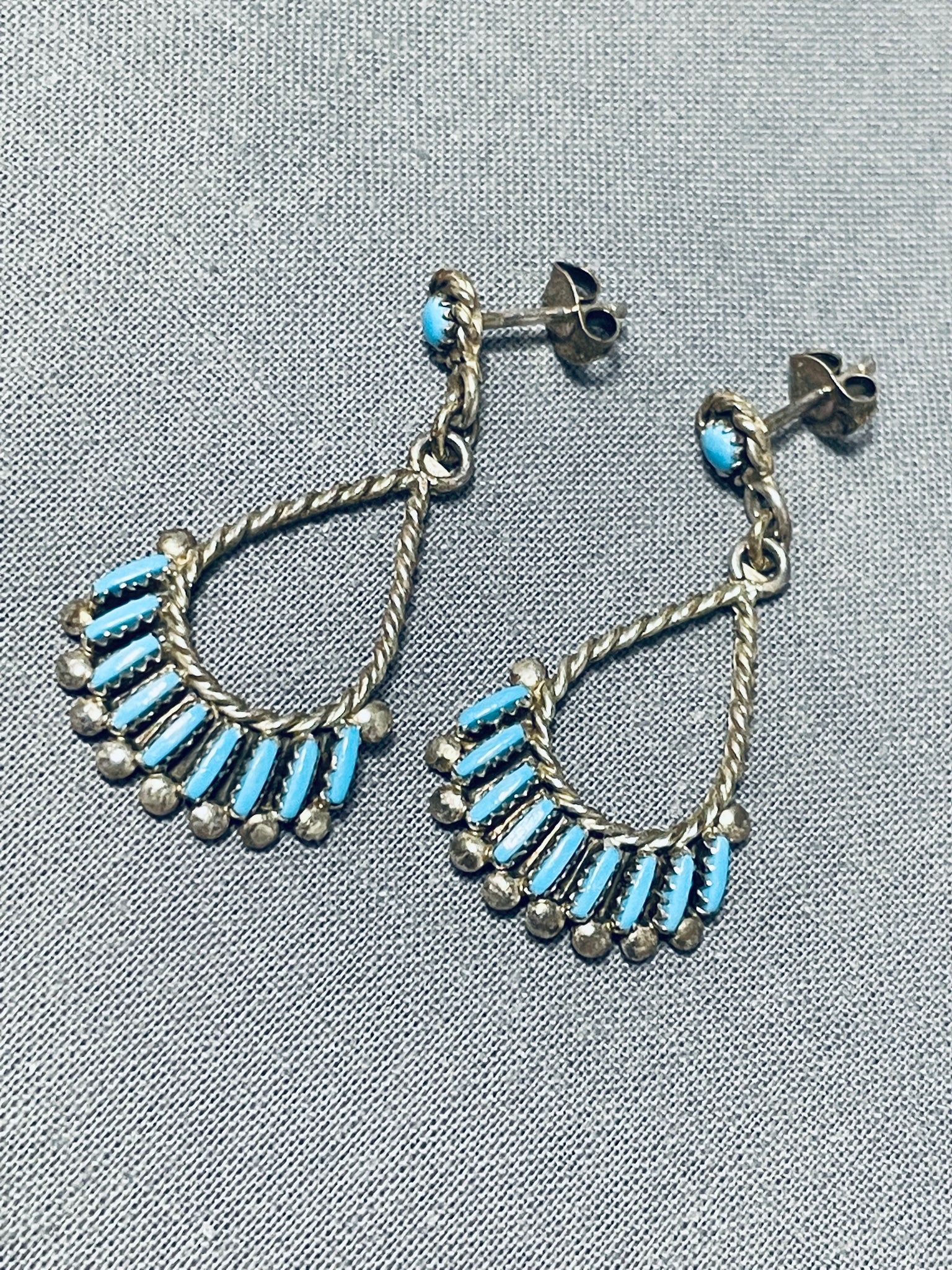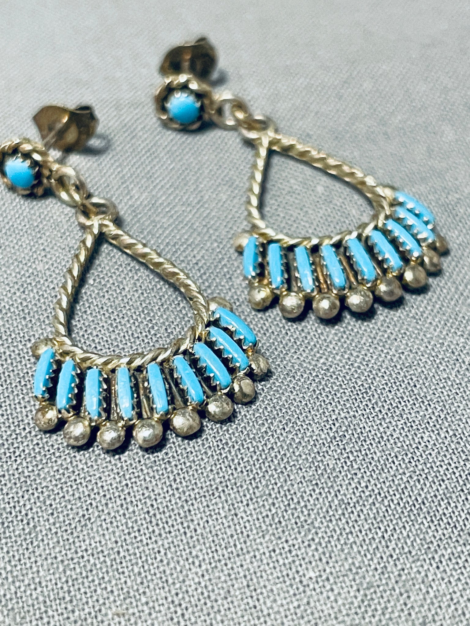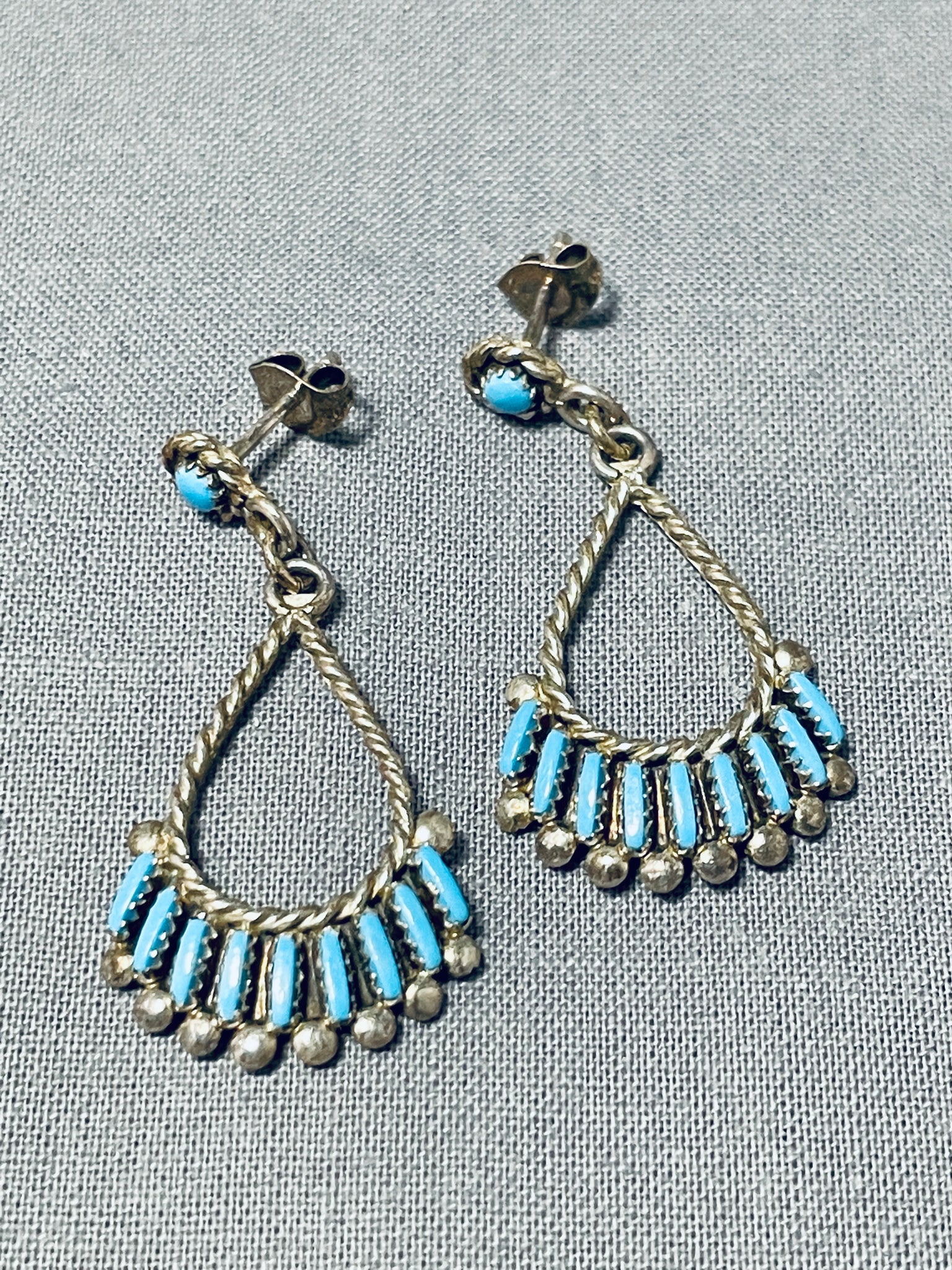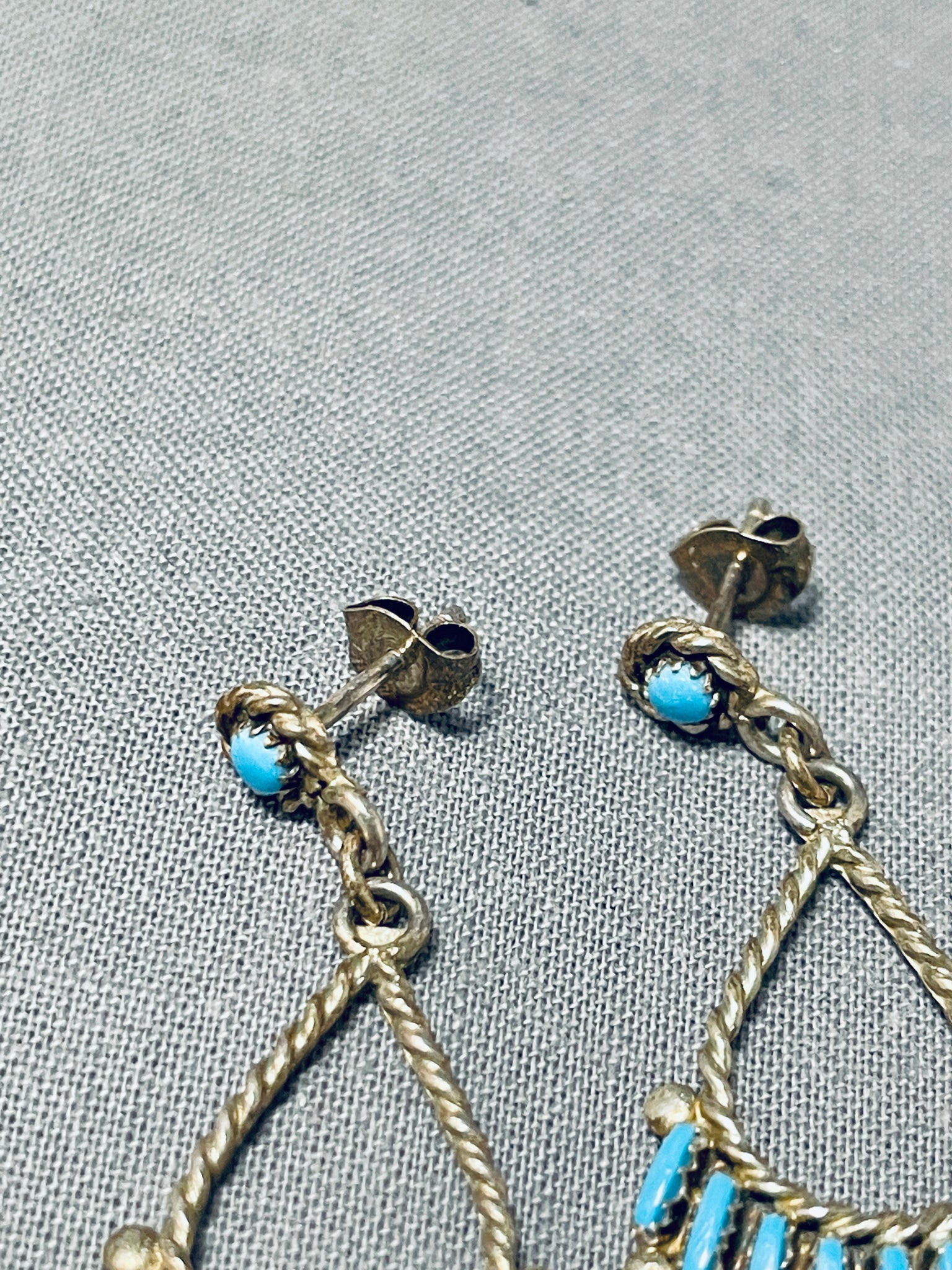 Outstanding Vintage Native American Zuni Blue Gem Turquoise Sterling Silver Earrings
