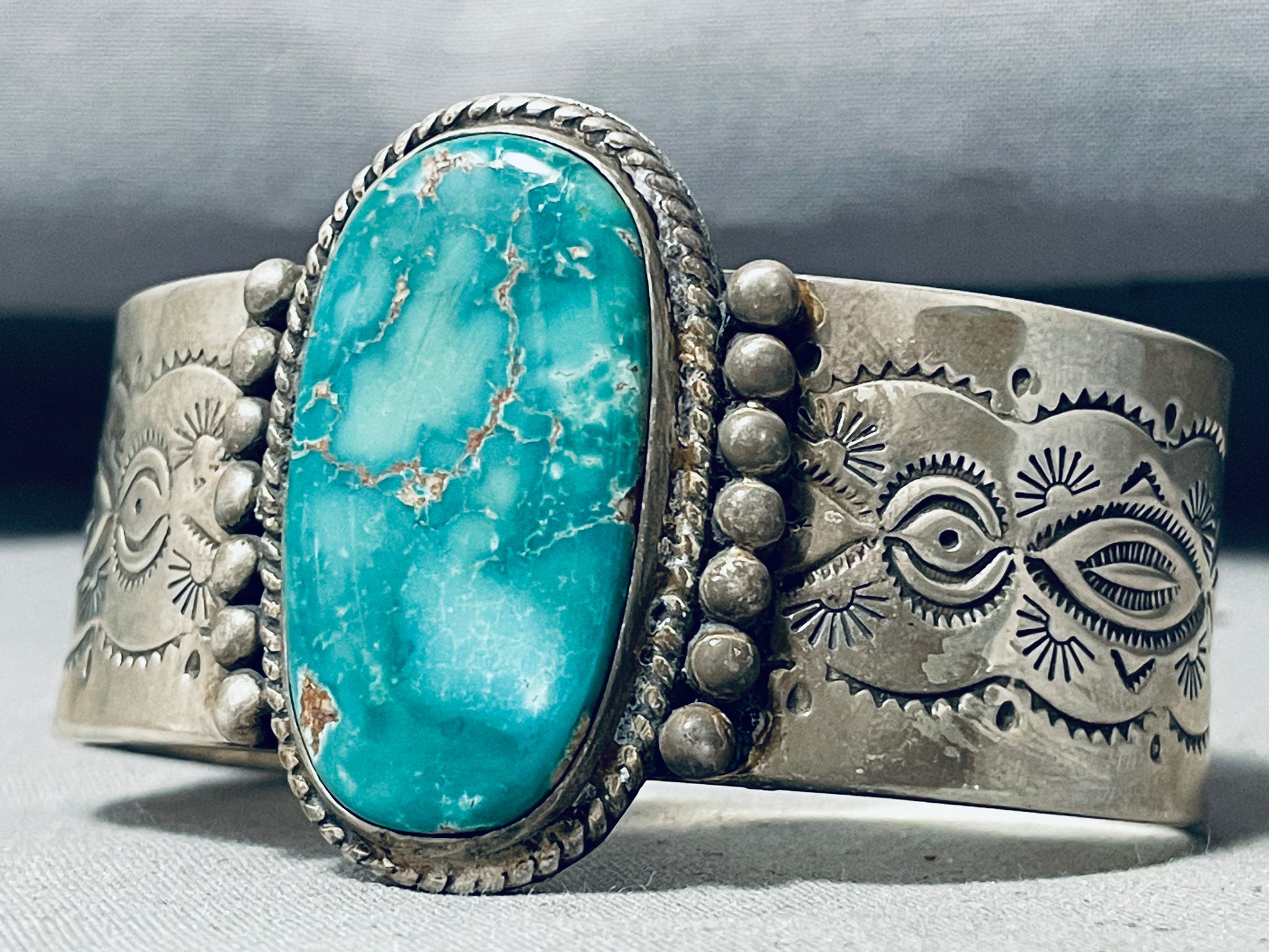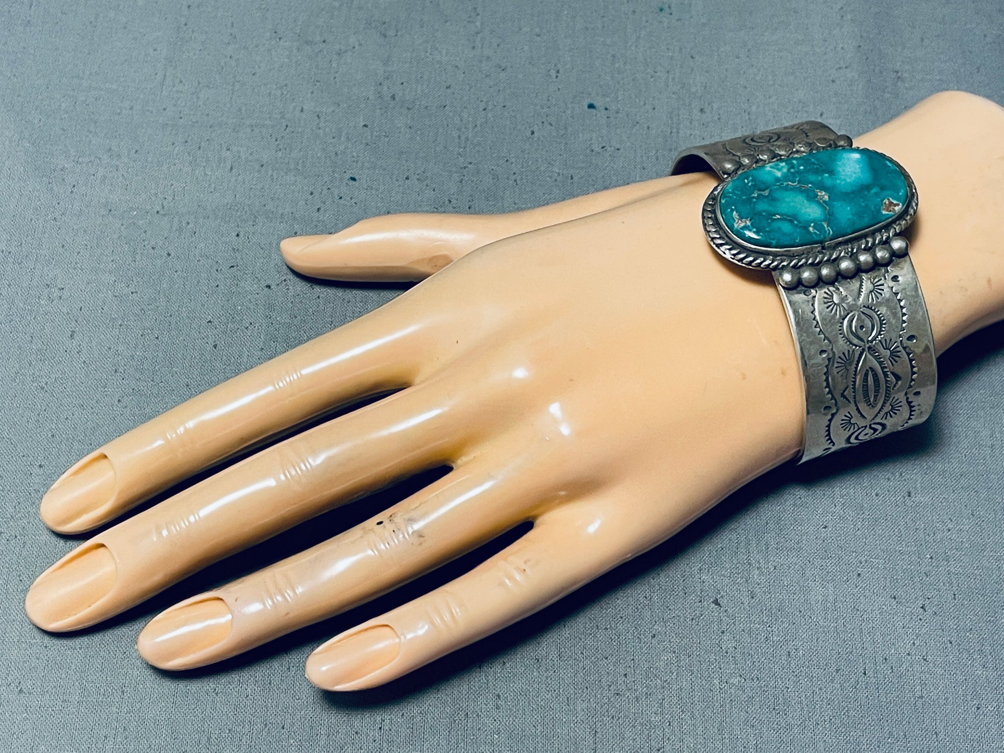 Particularly Rare Vintage Native American Navajo Damale Turquoise Sterling Silver Bracelet