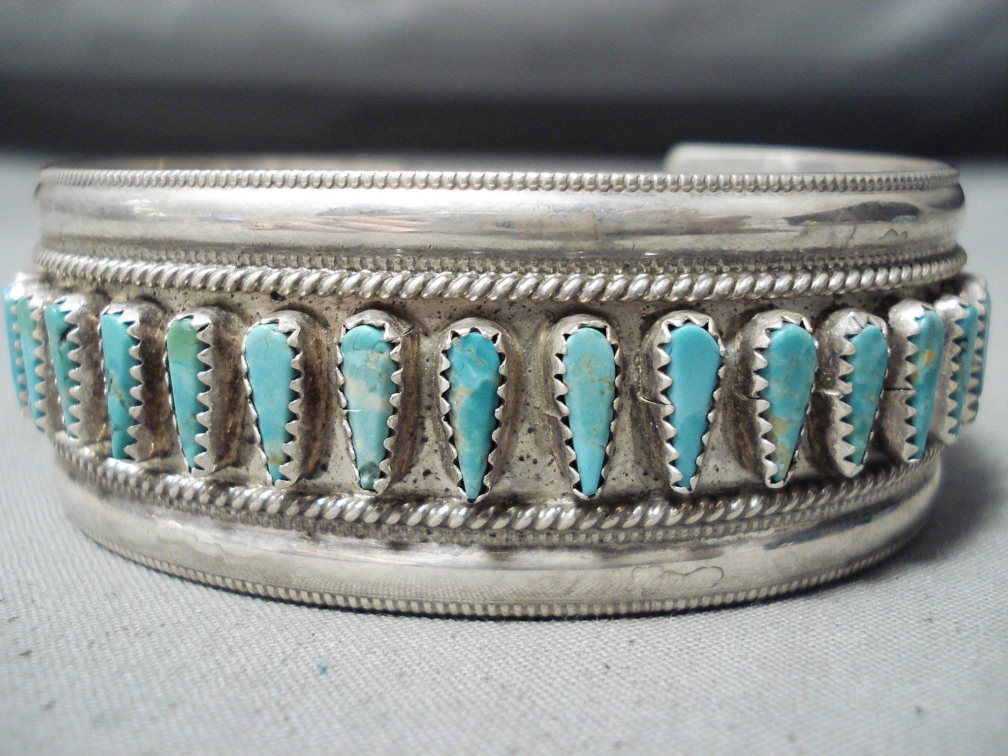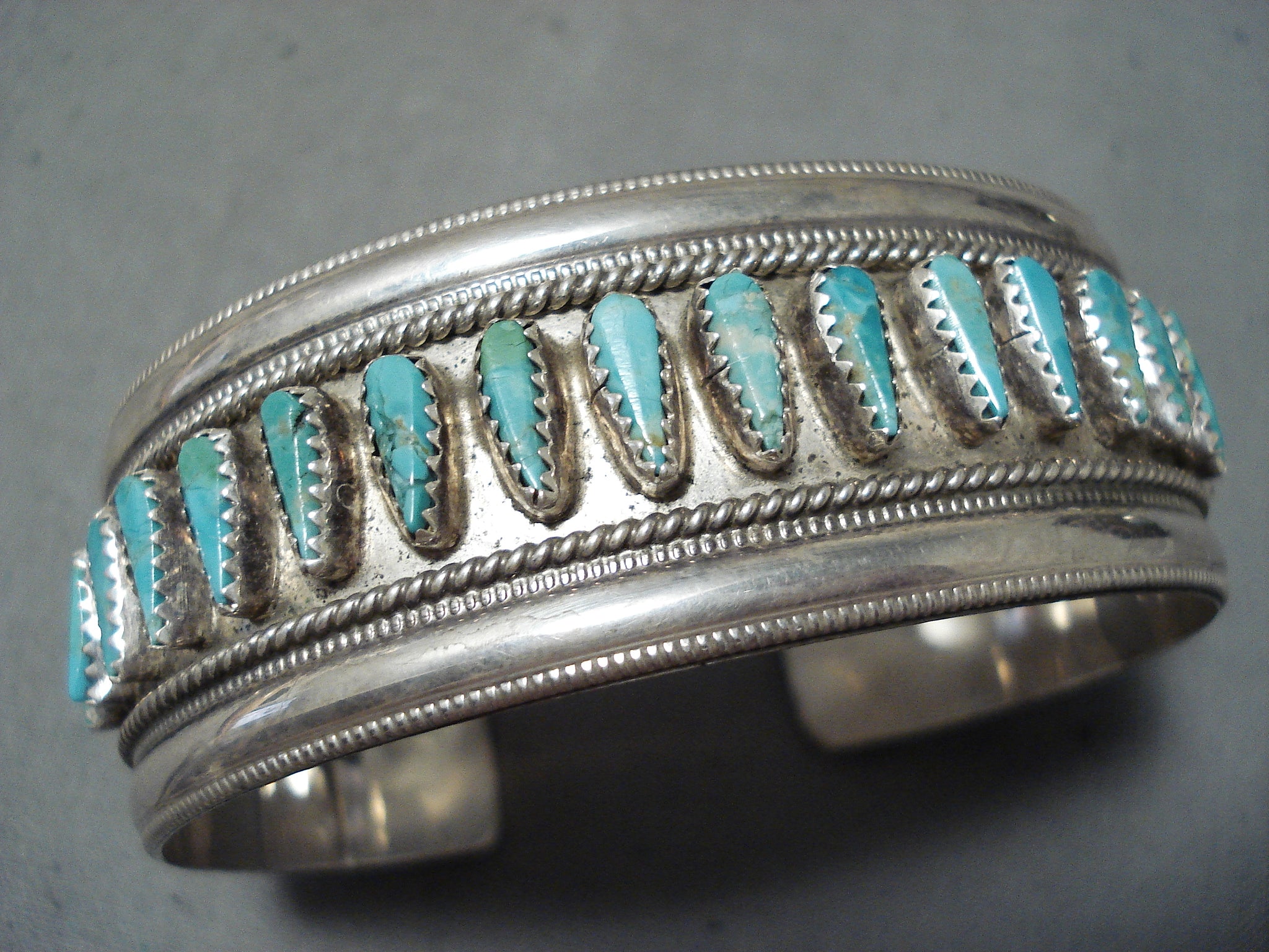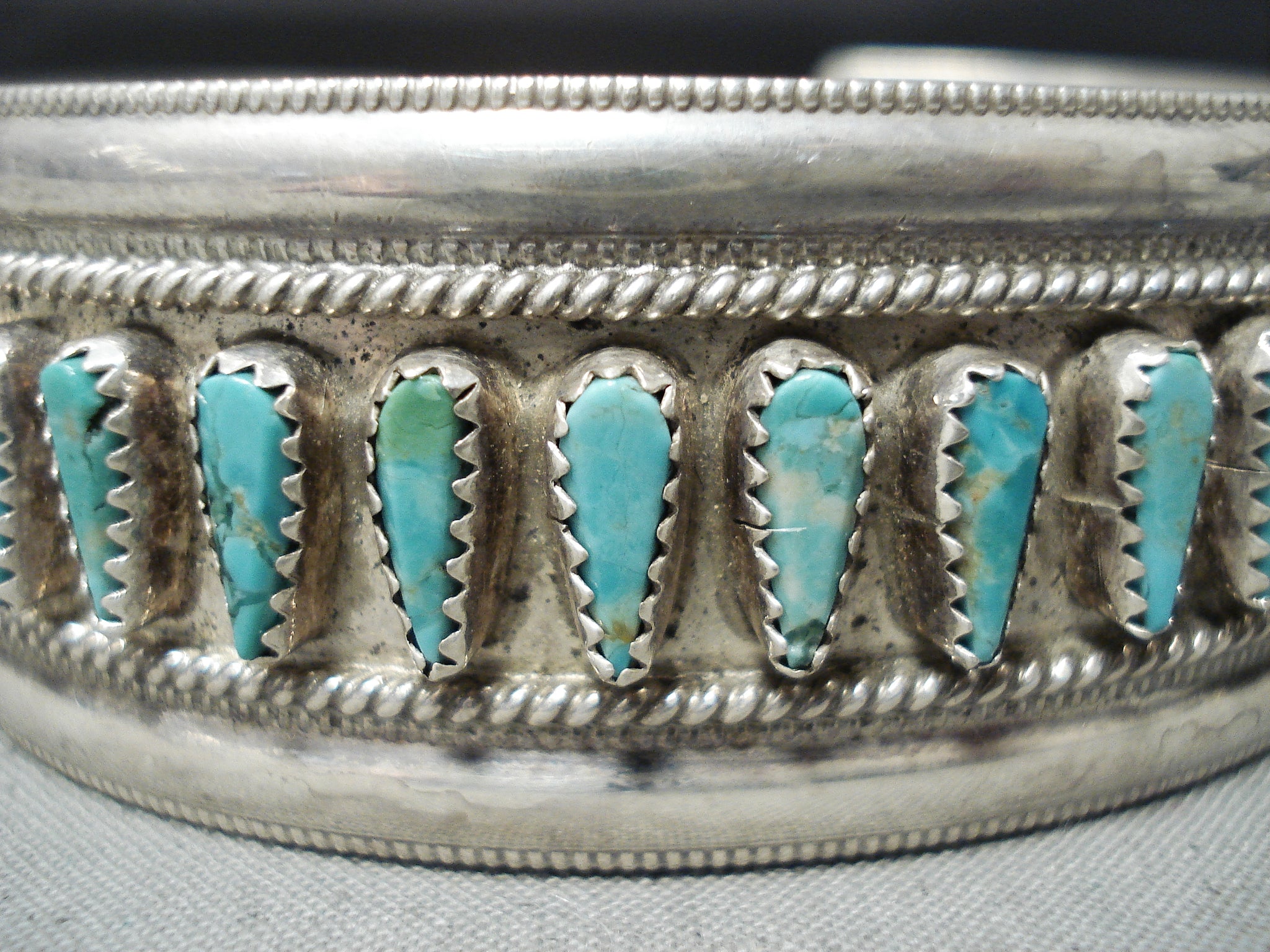 Phenomenal Native American Navajo Turquoise Teardrops Sterling Silver Bracelet