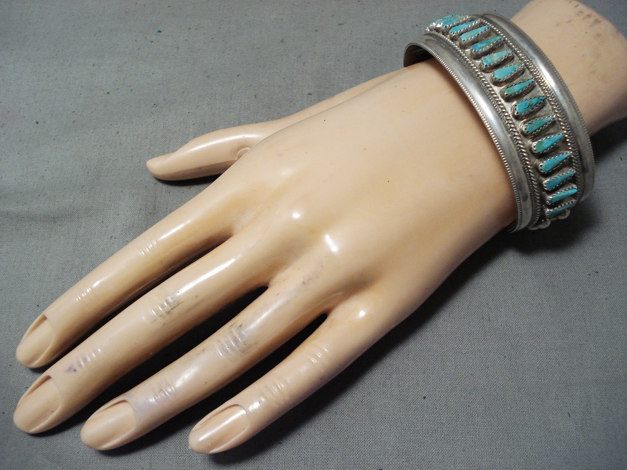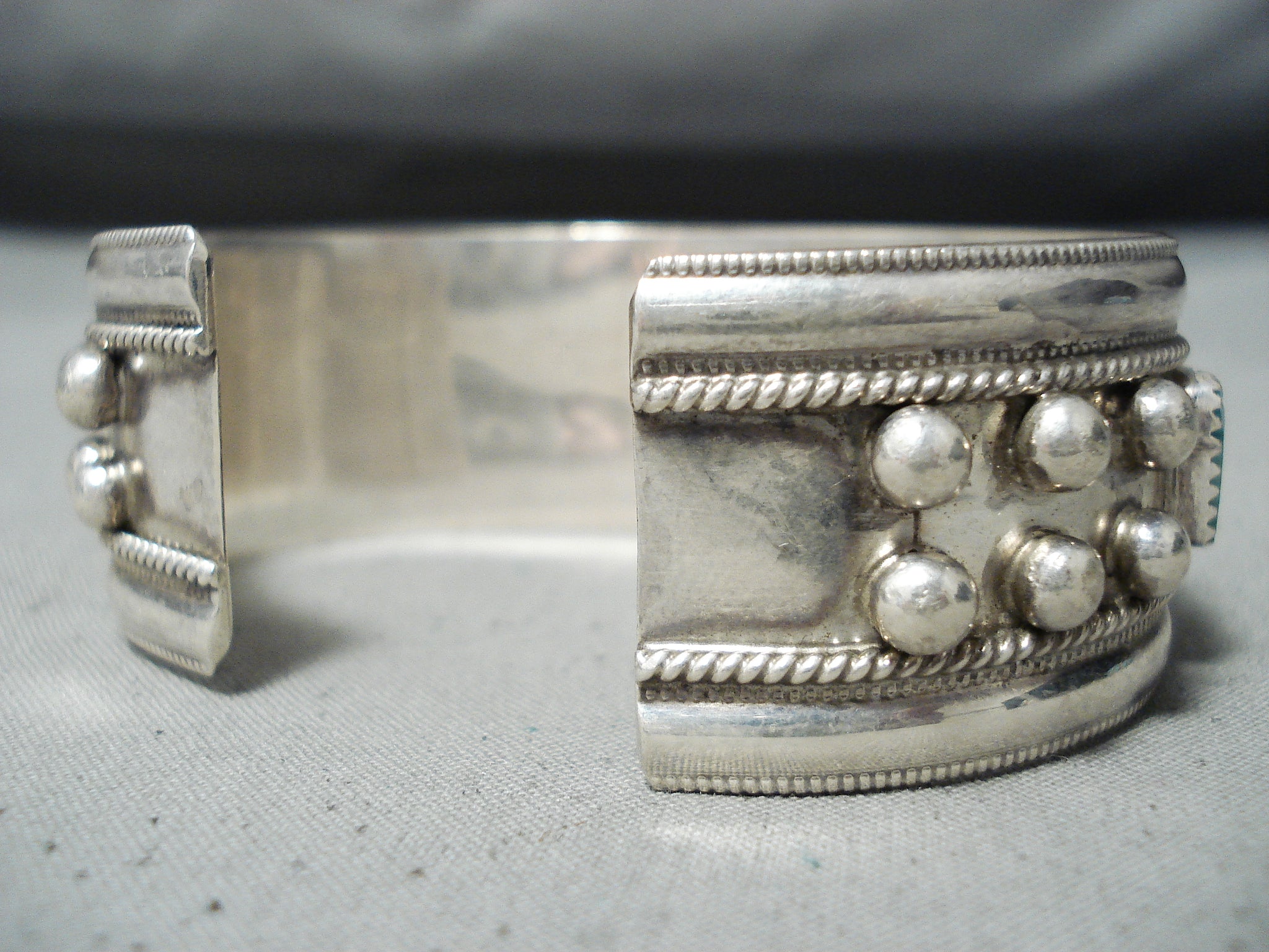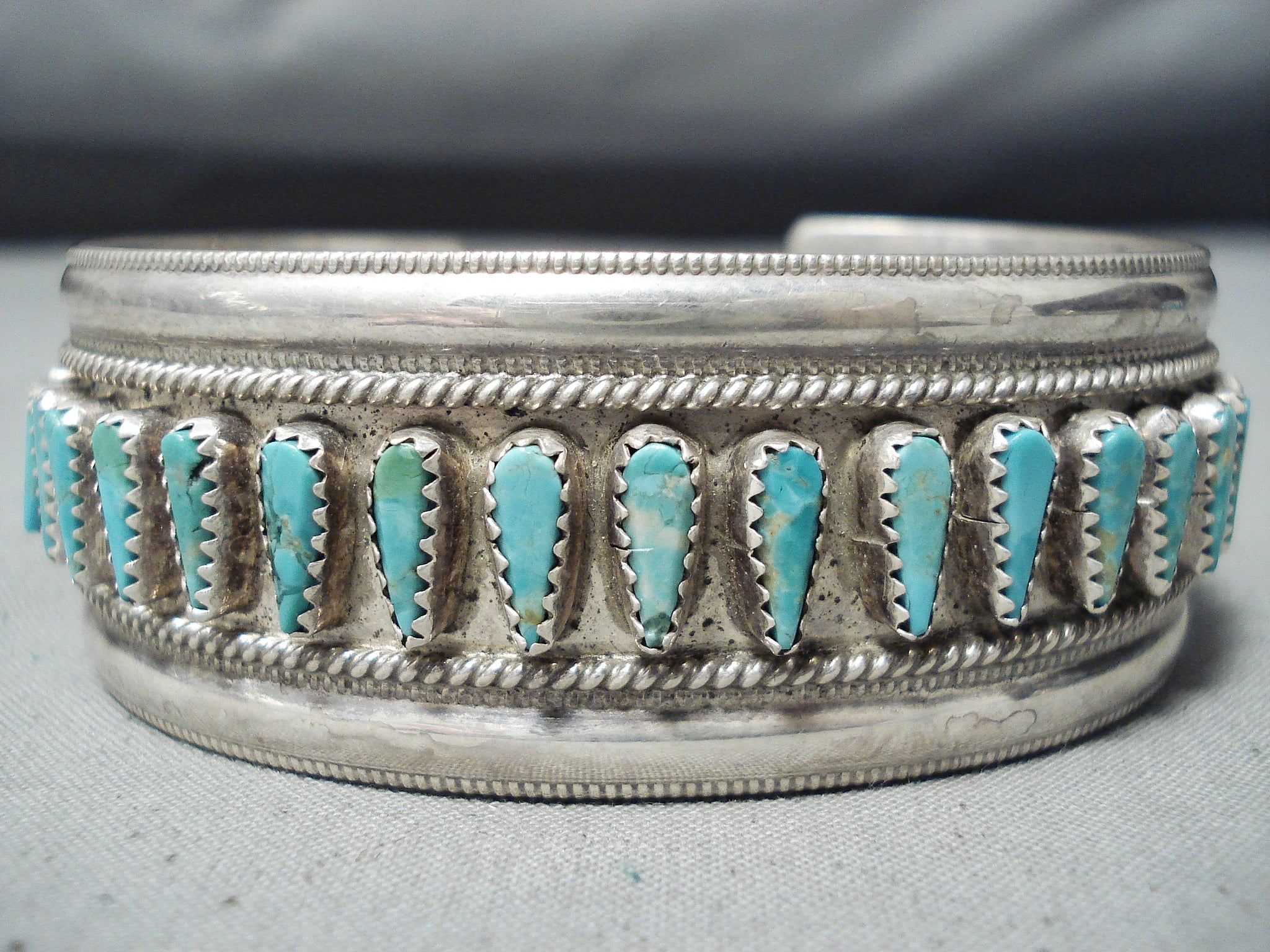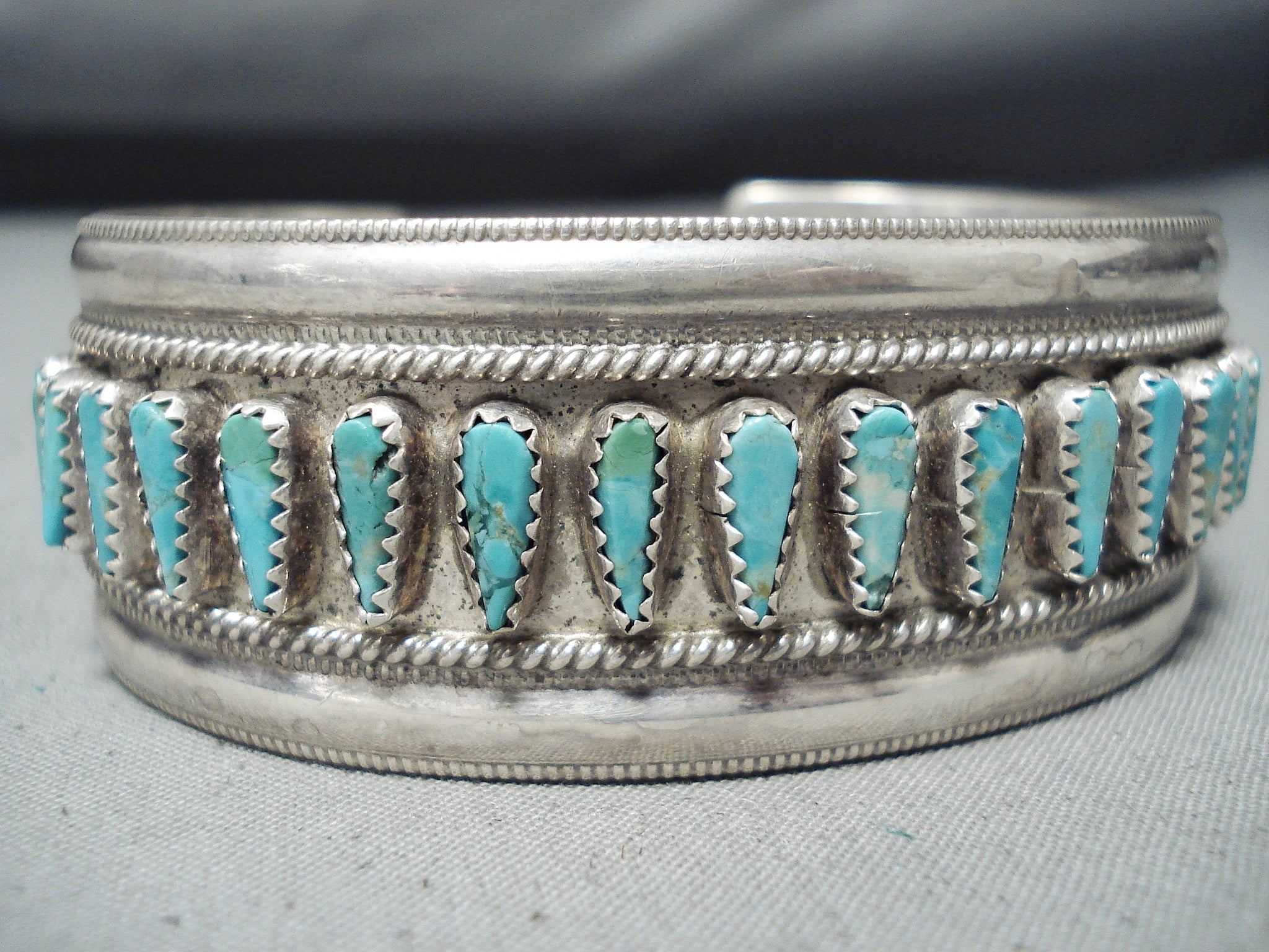 Phenomenal Native American Navajo Turquoise Teardrops Sterling Silver Bracelet