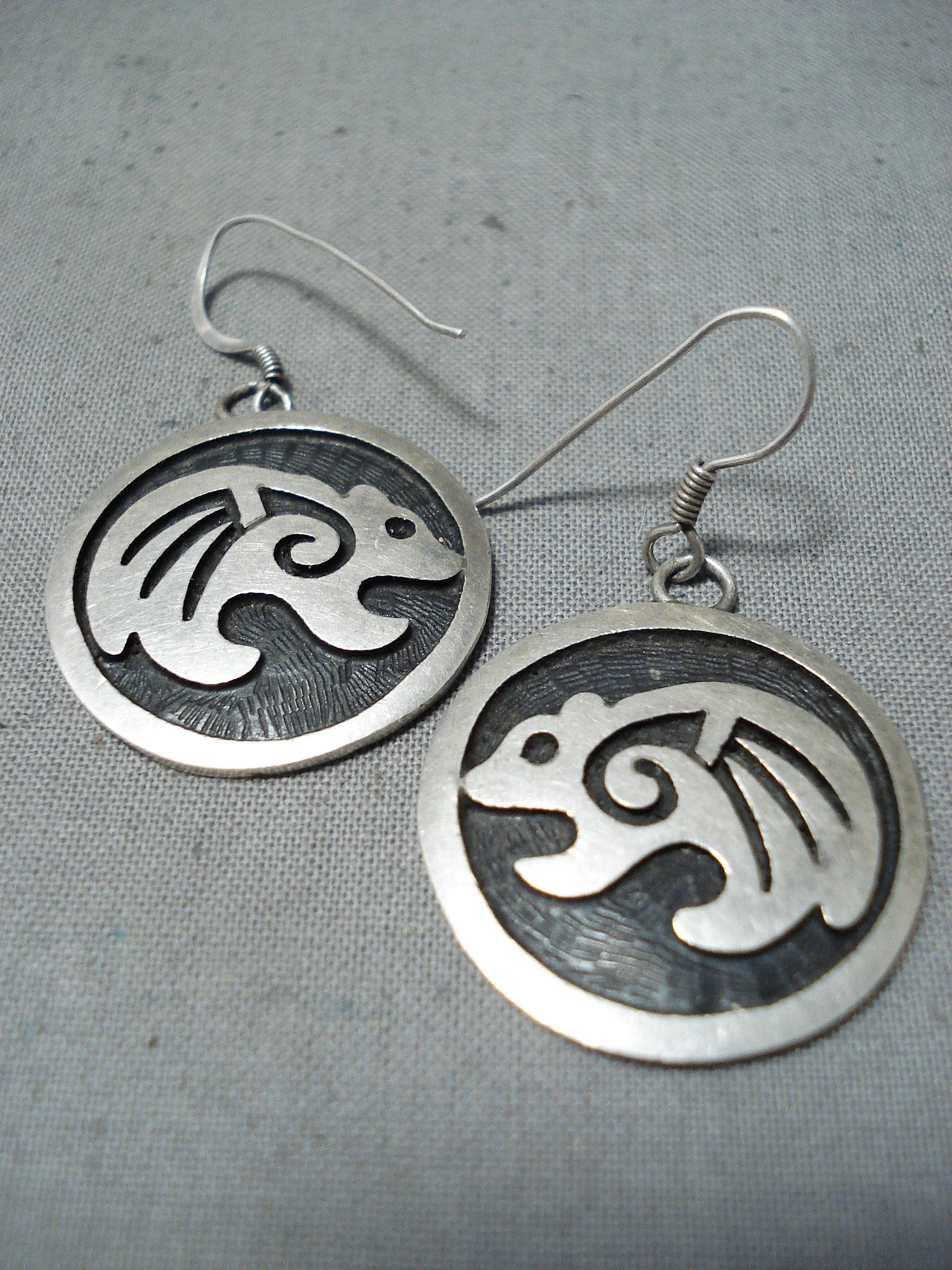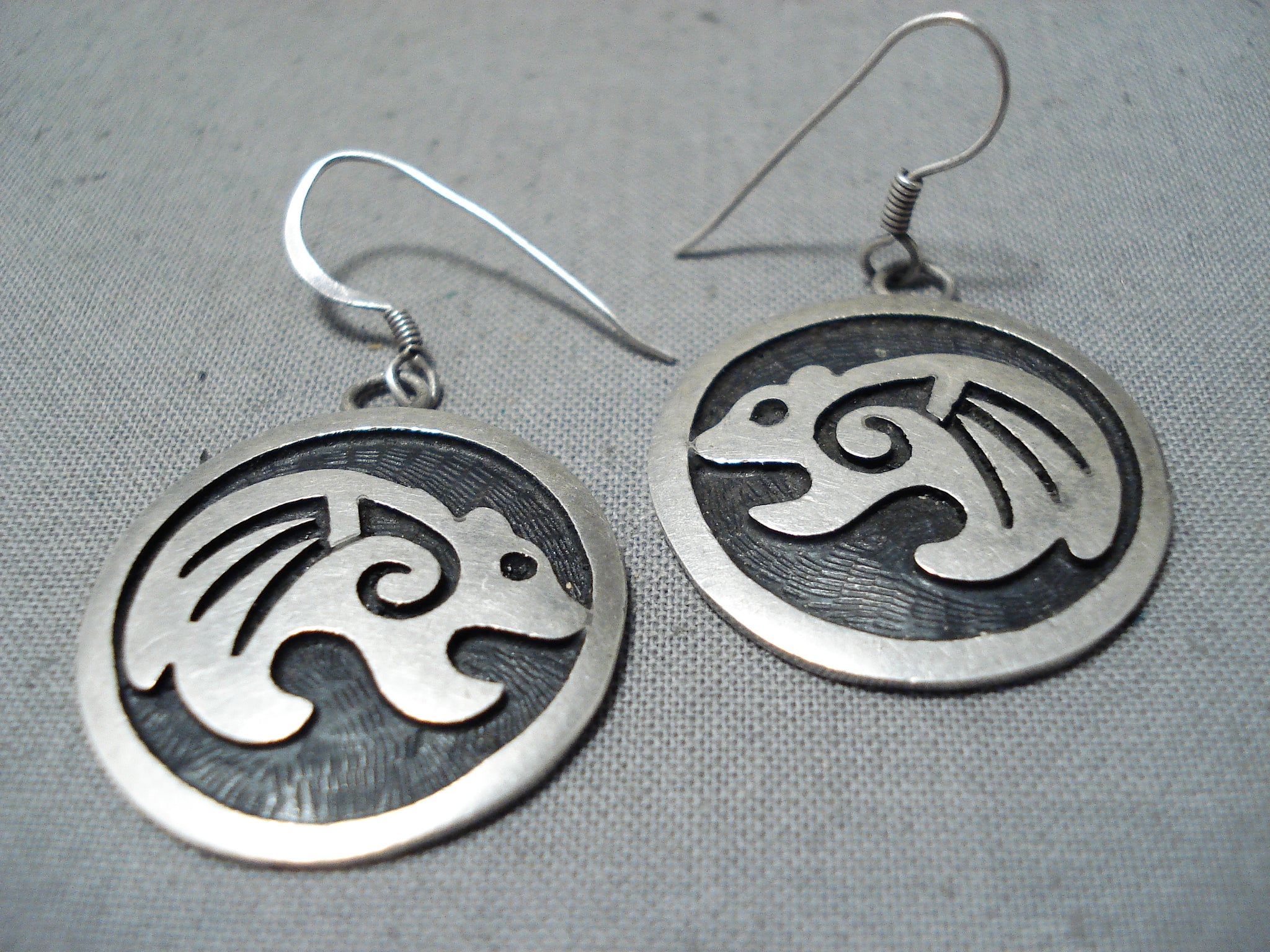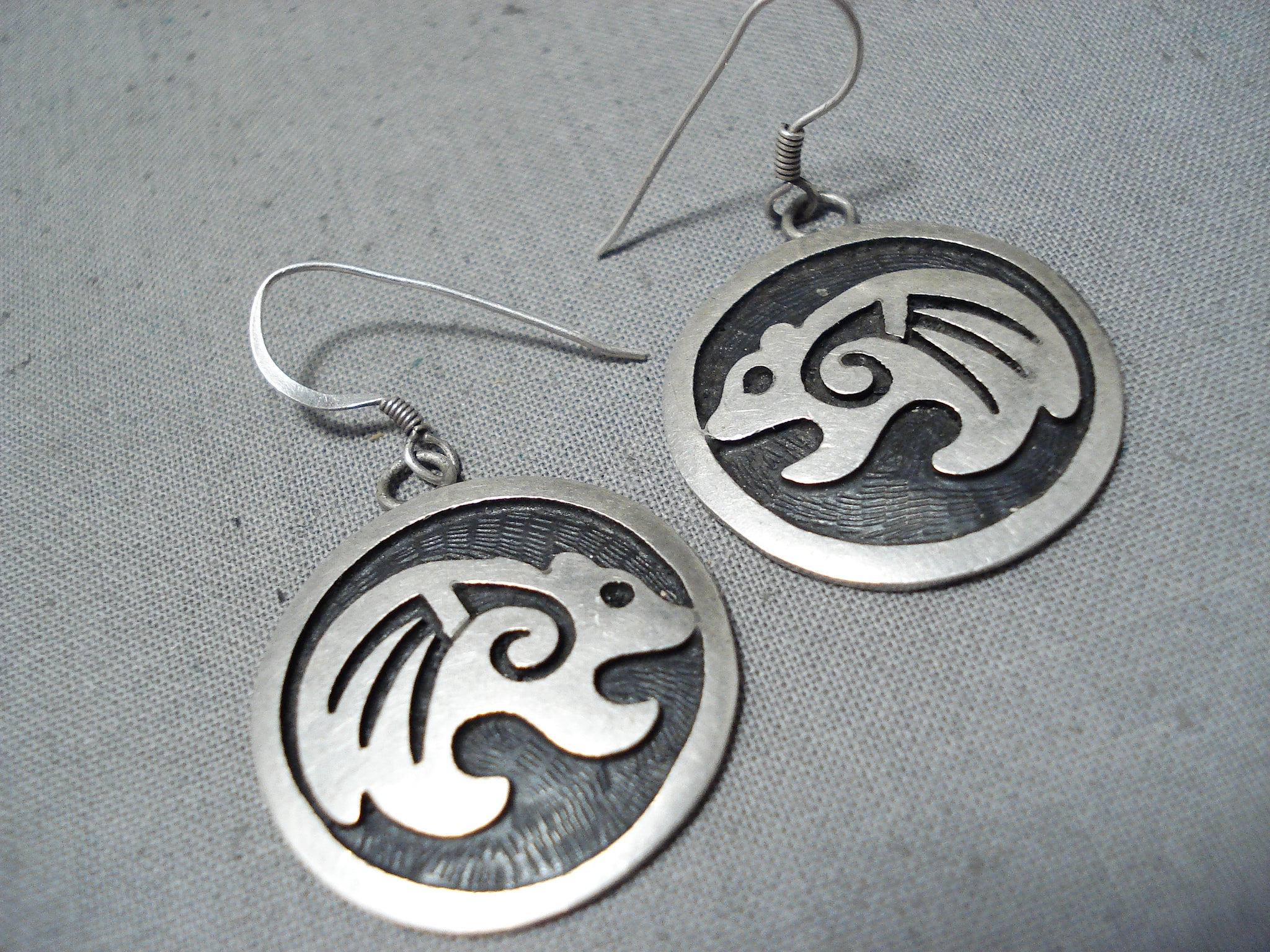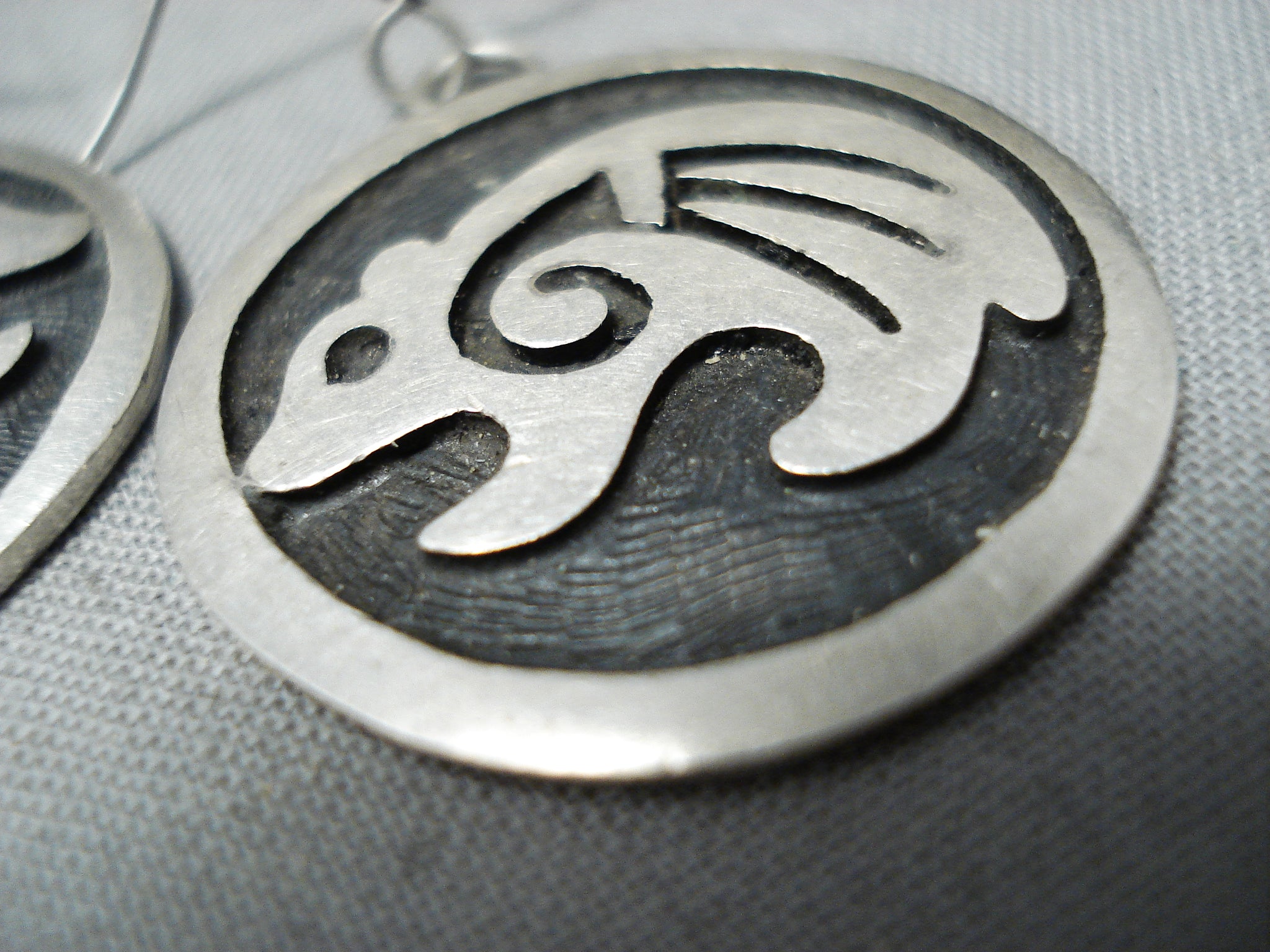 Phenomenal Vintage Hopi Native American Sterling Silver Earrings Old