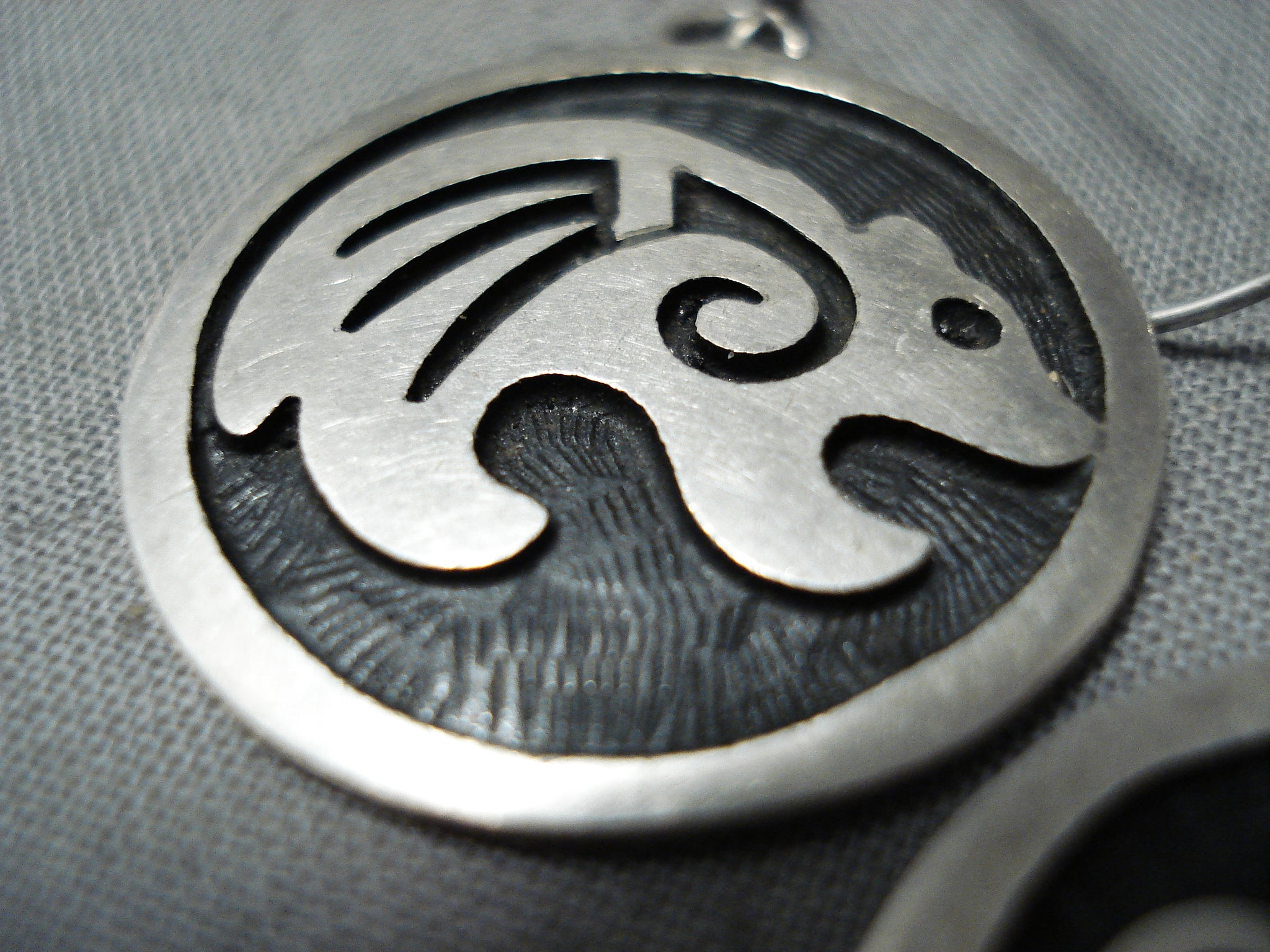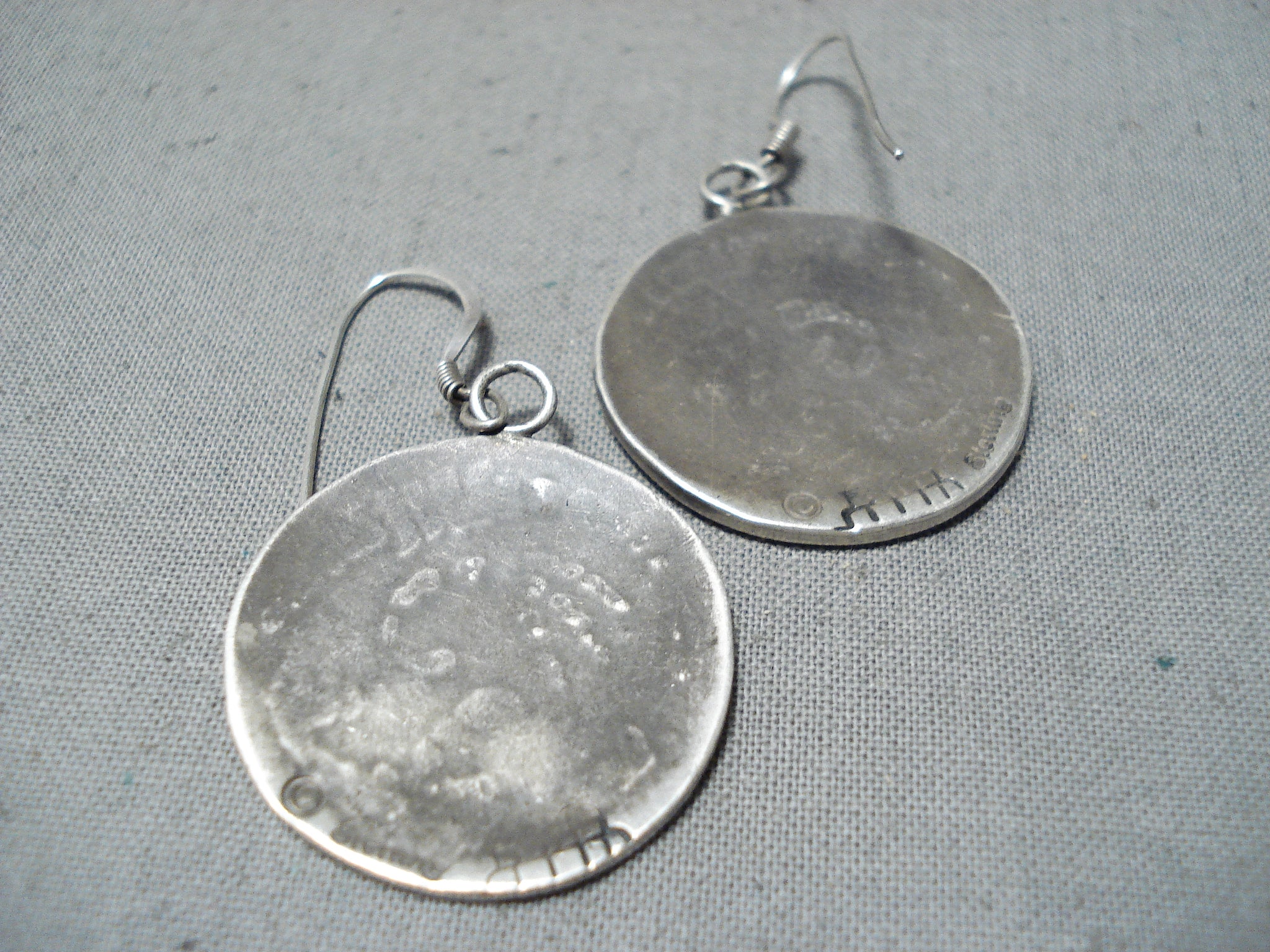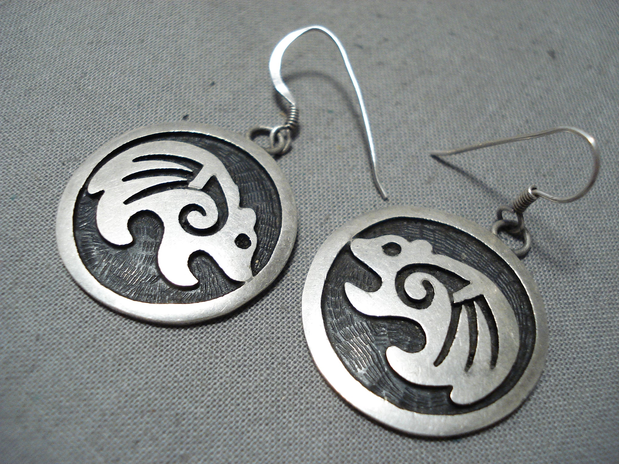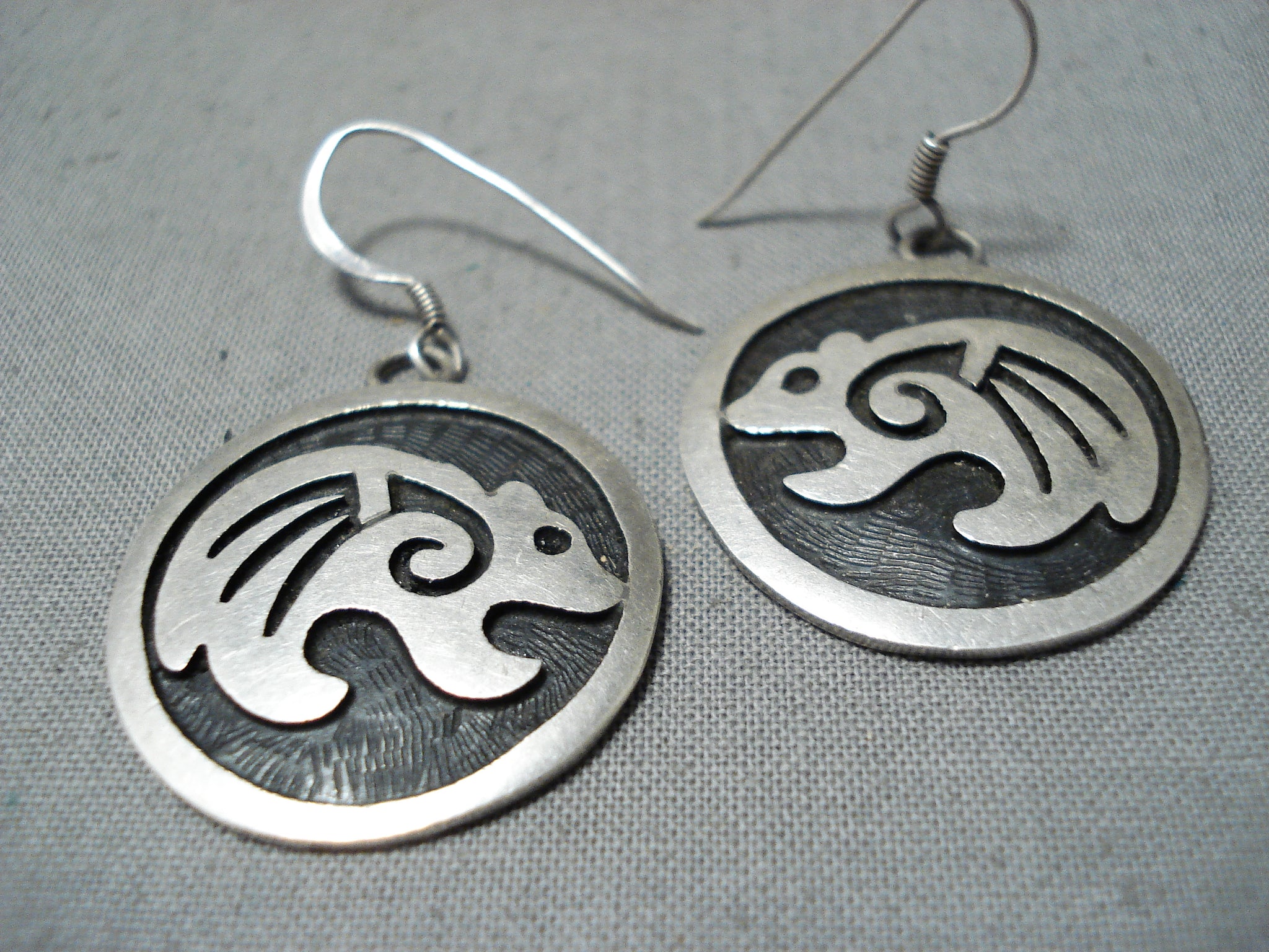 Phenomenal Vintage Hopi Native American Sterling Silver Earrings Old