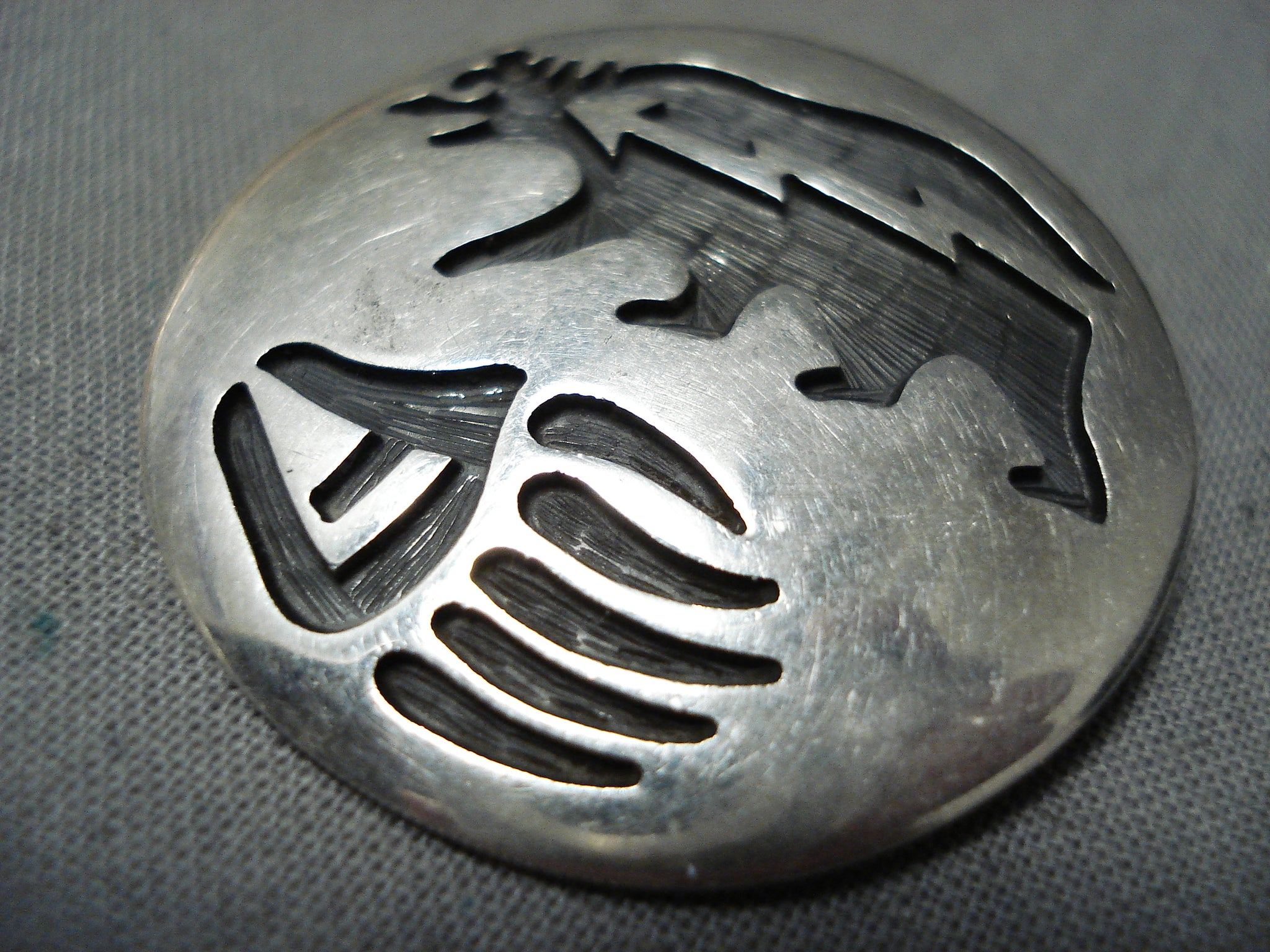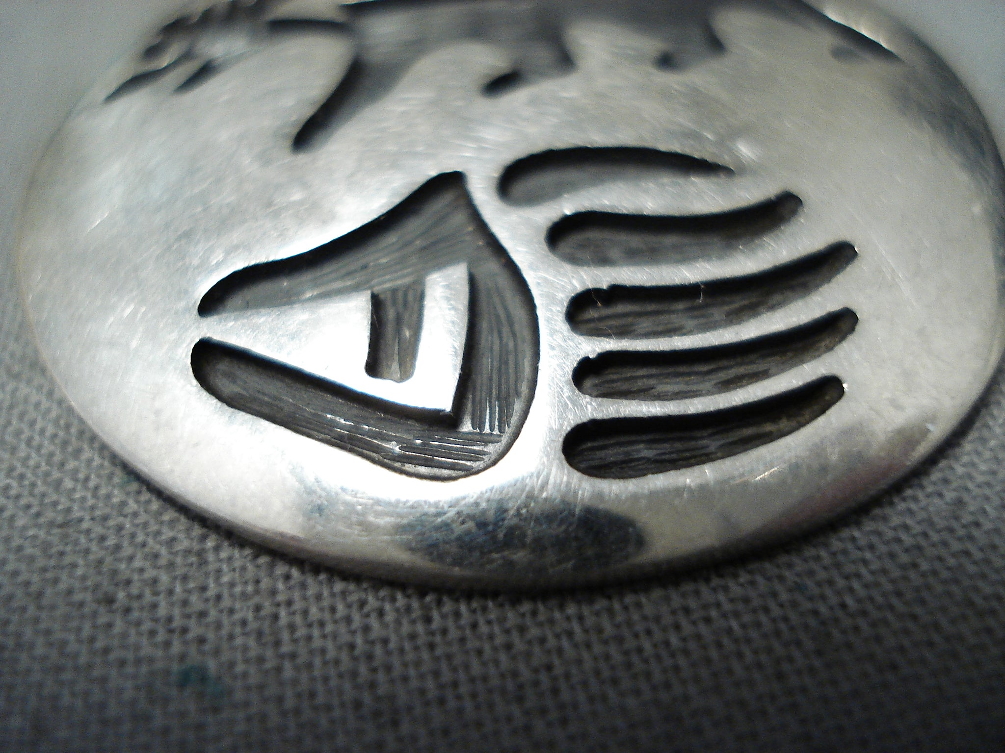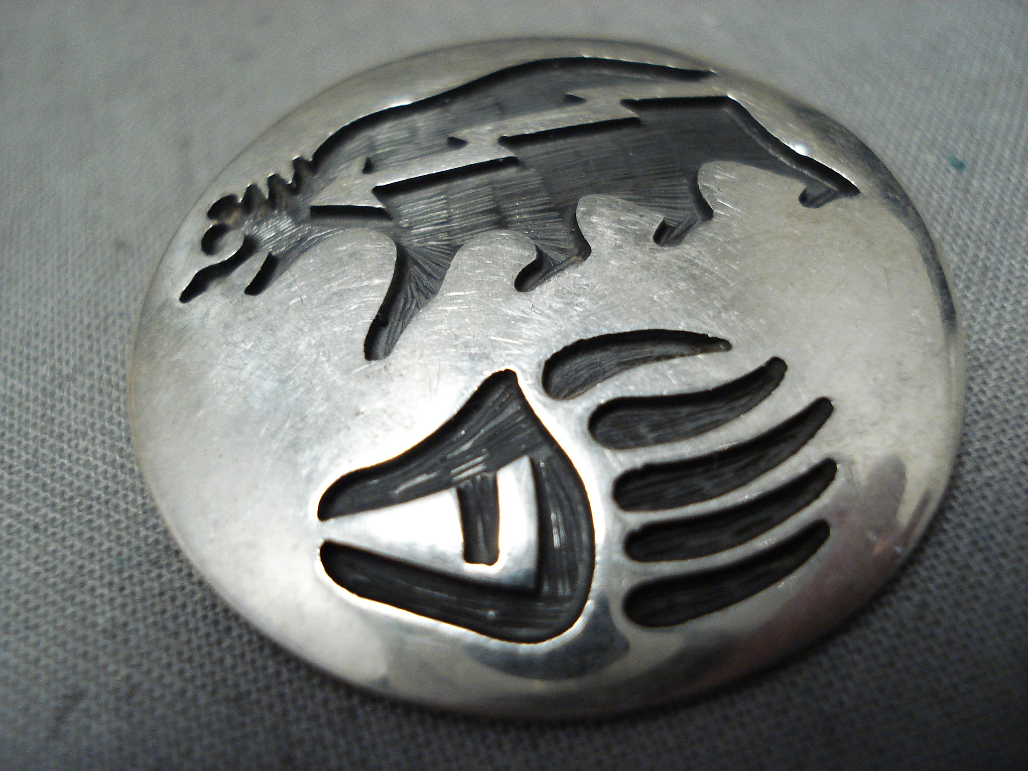 Phenomenal Vintage Native American Hopi Sterling Silver Bear Pin Pendant