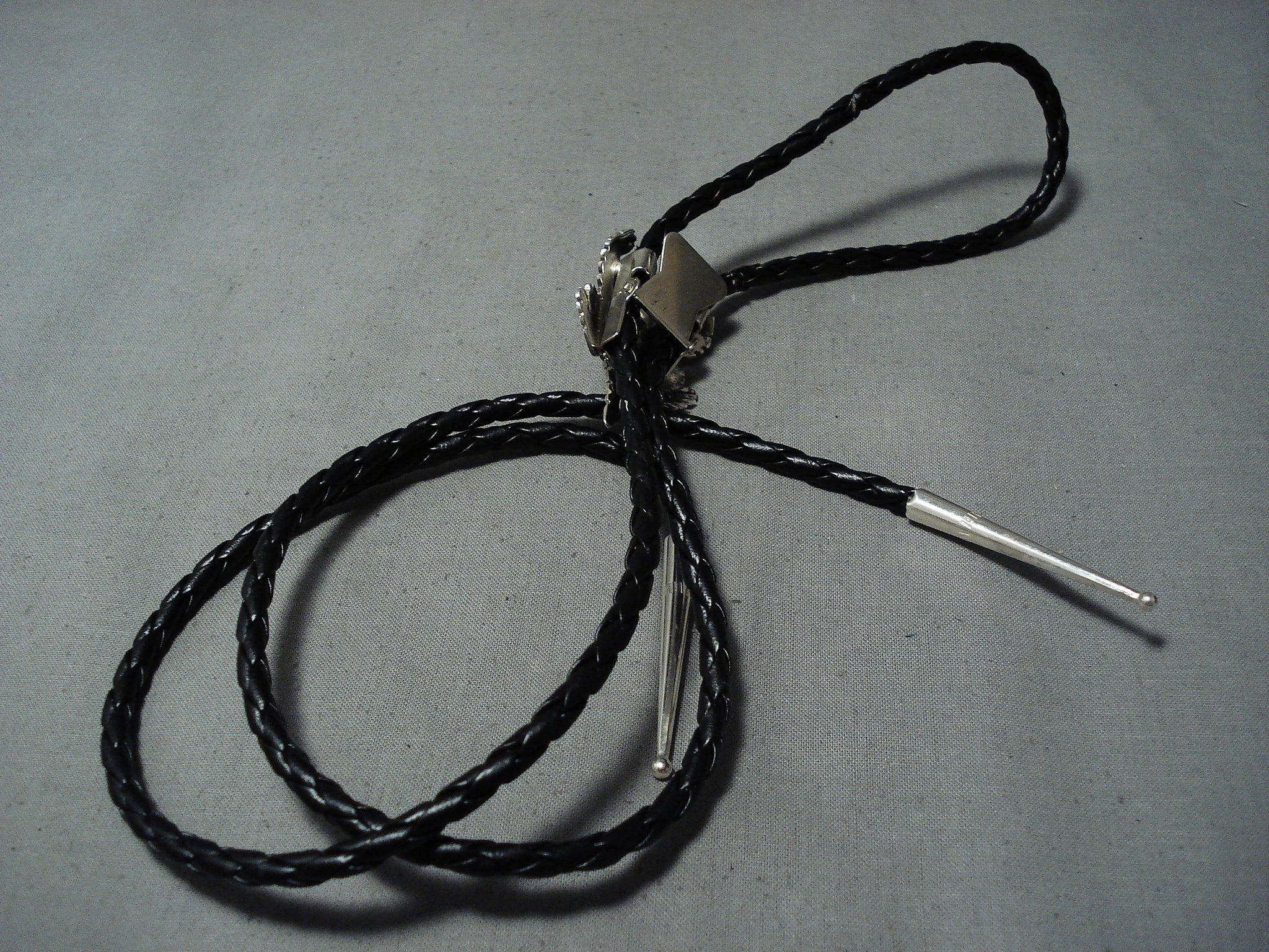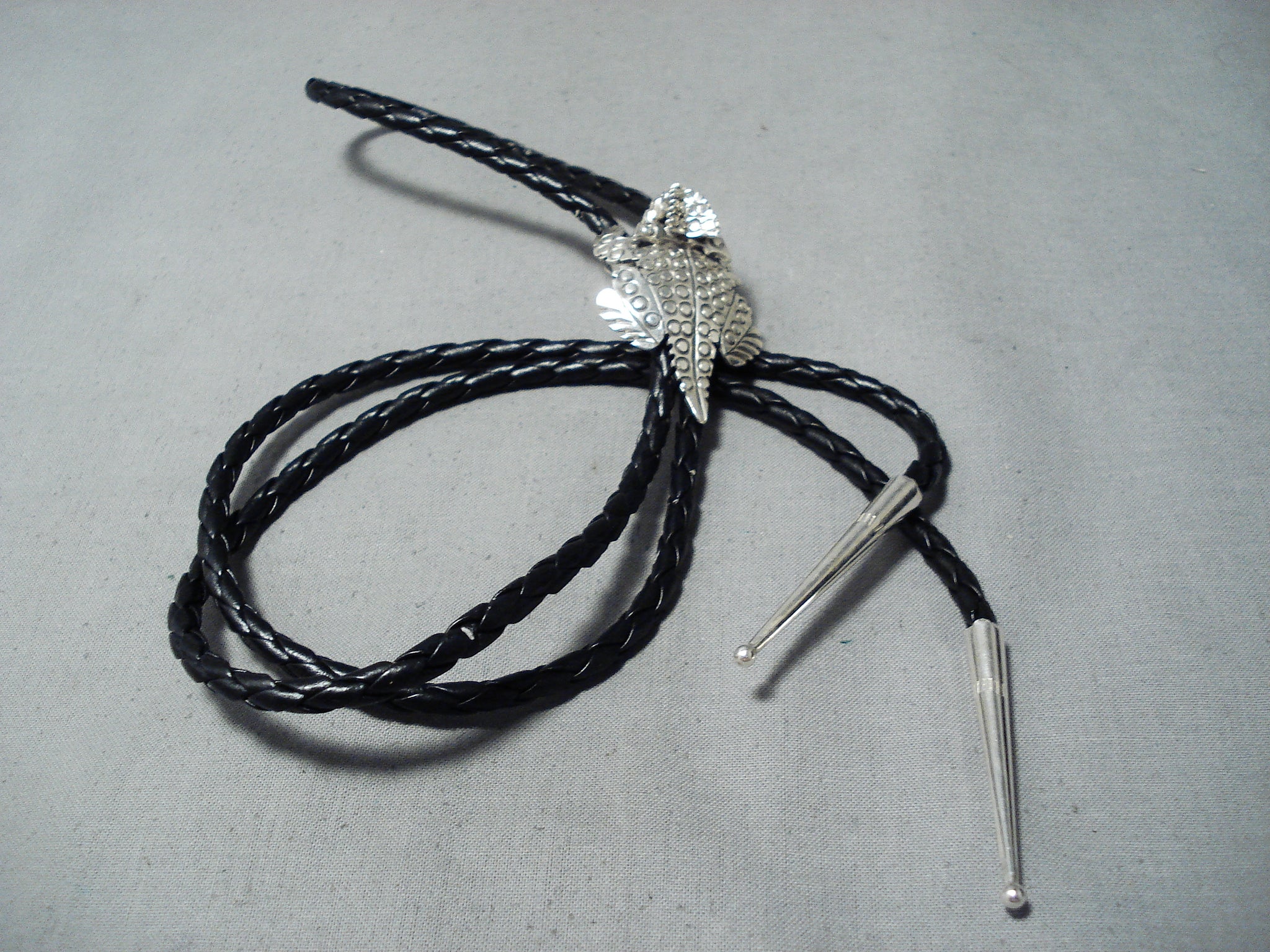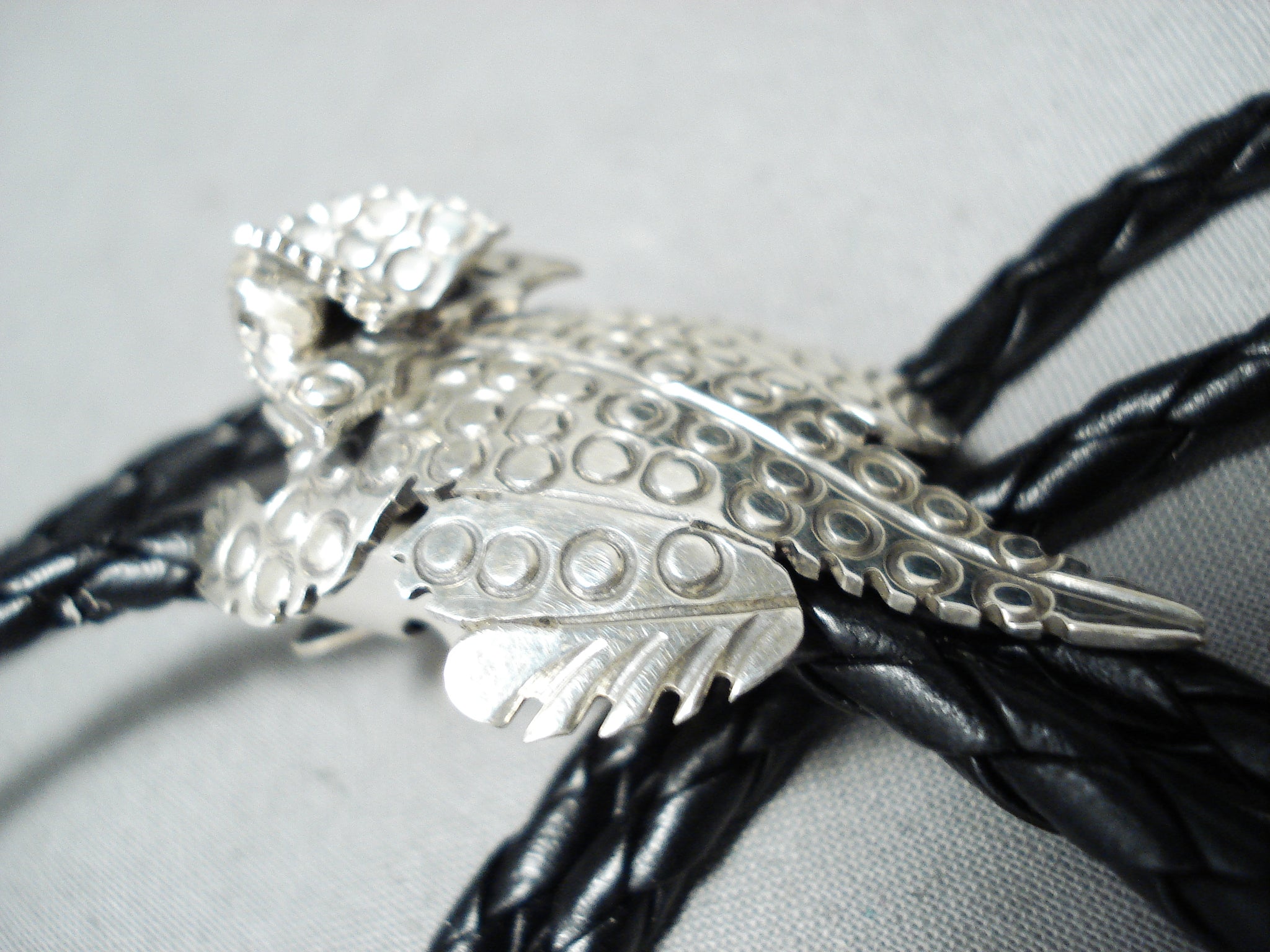 Picturesque Navajo Sterling Silver Toad Bolo Tie Native American