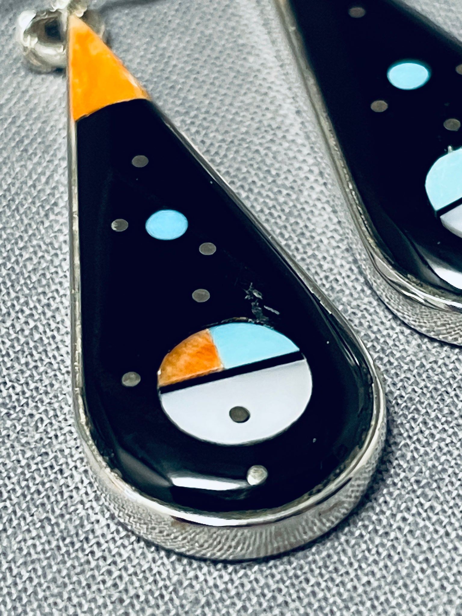 Planets Inlay Native American Navajo Turquoise Sterling Silver Inlay Earrings