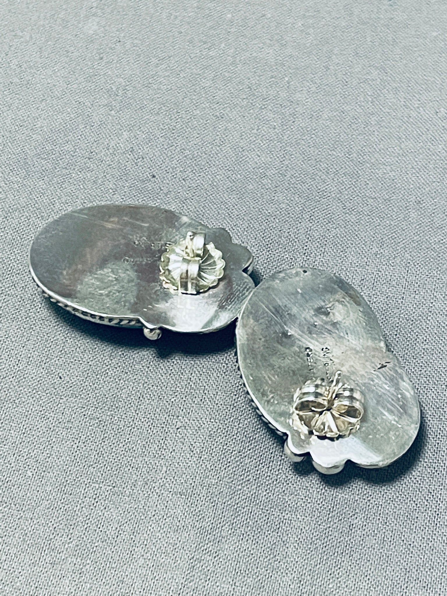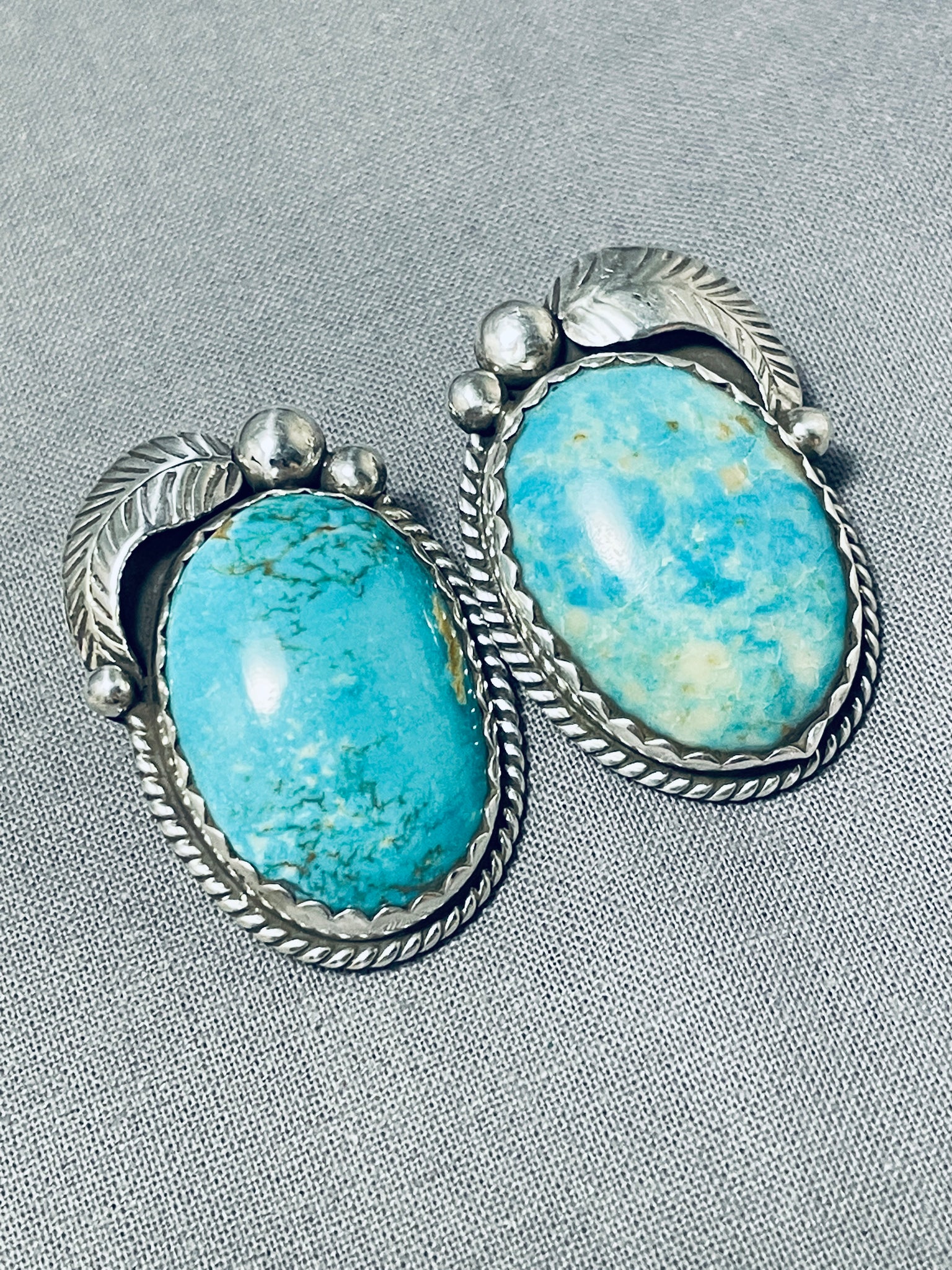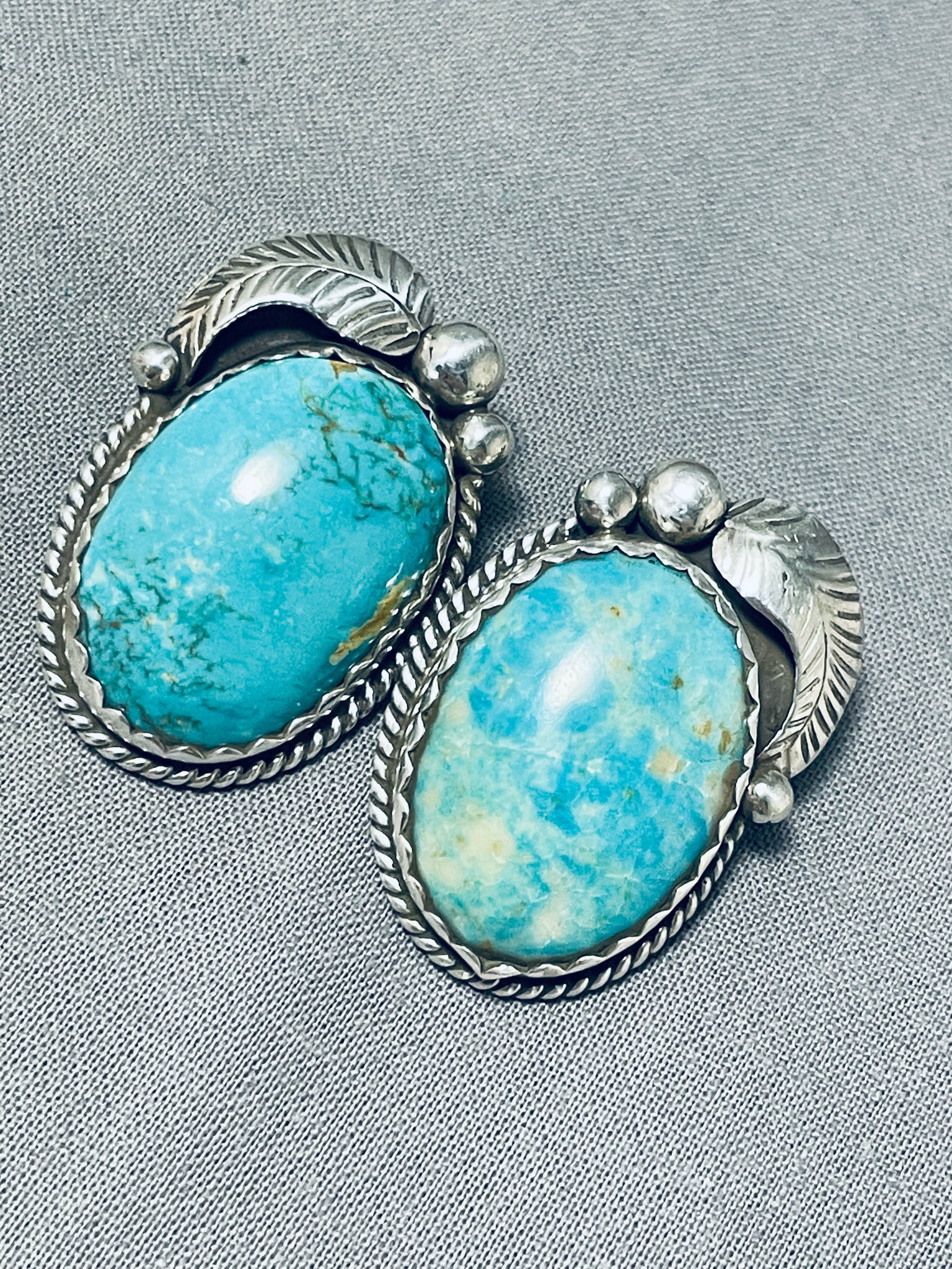 Platero Vintage Native American Navajo Earth Blue Turquoise Sterling Silver Earrings