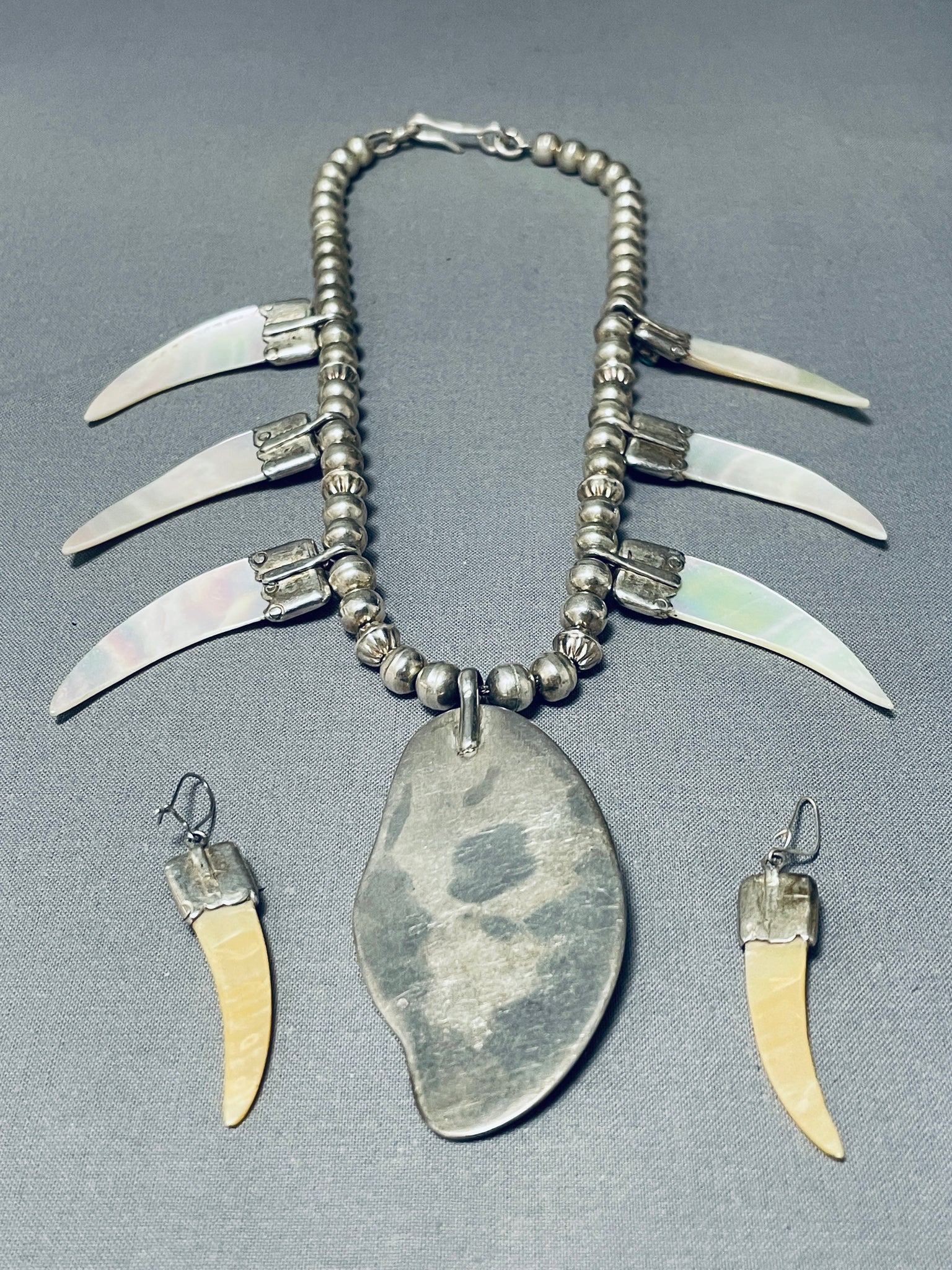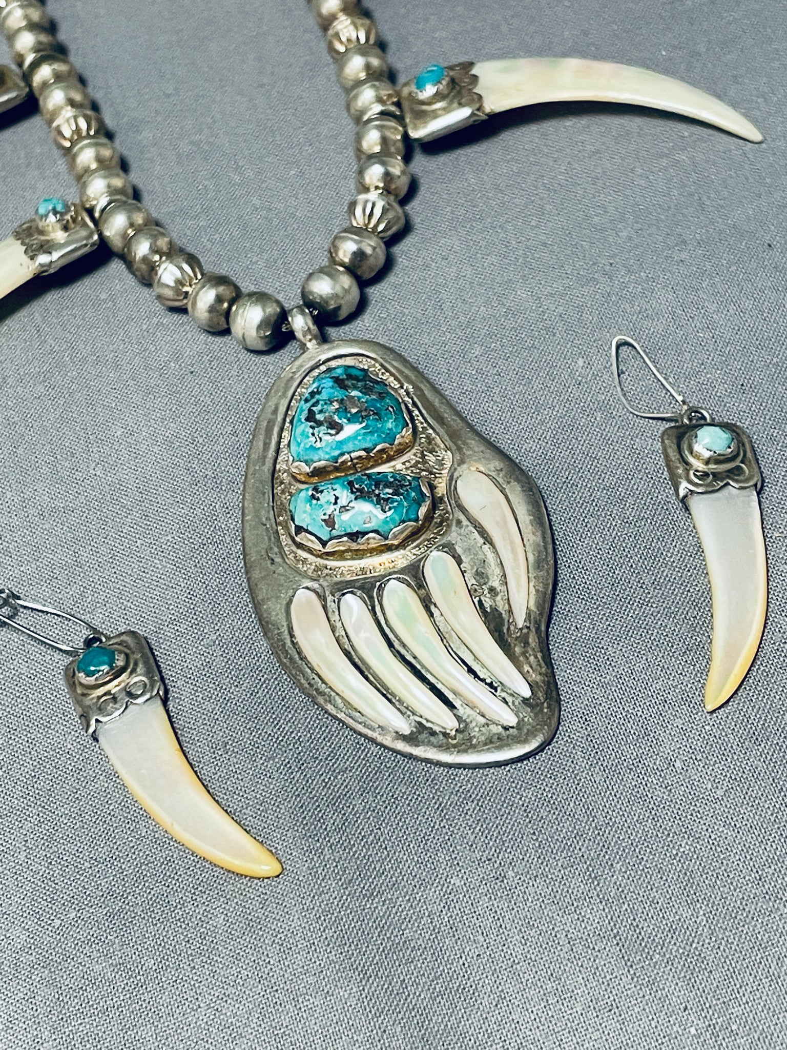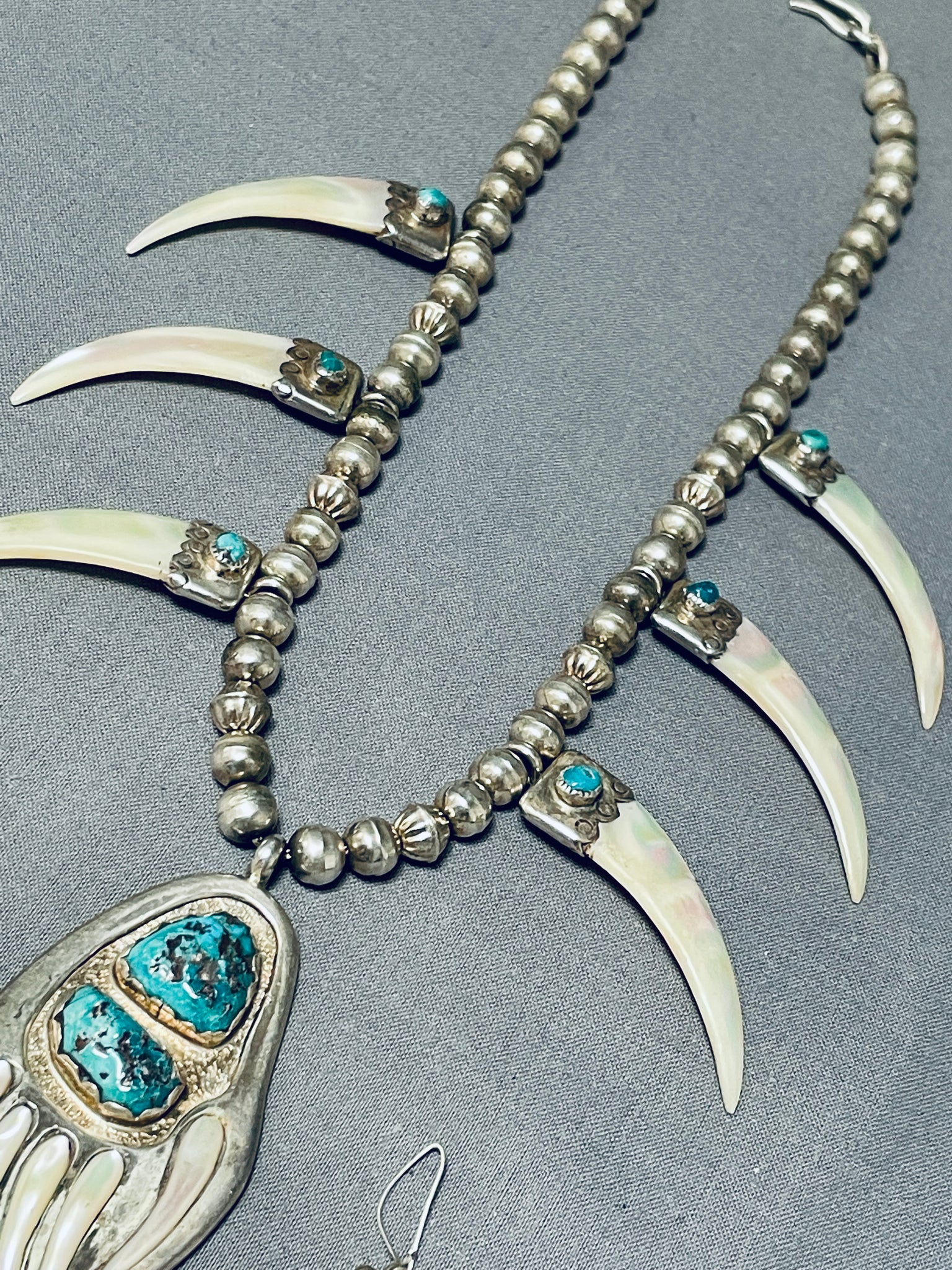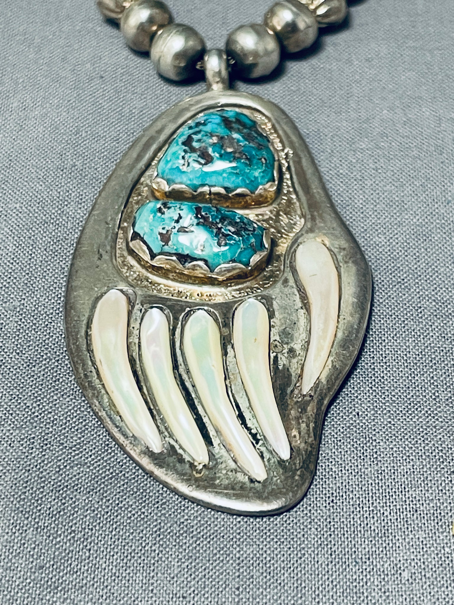 Powerful Vintage Native American Navajo Pearl Sterling Silver Turquoise Necklace