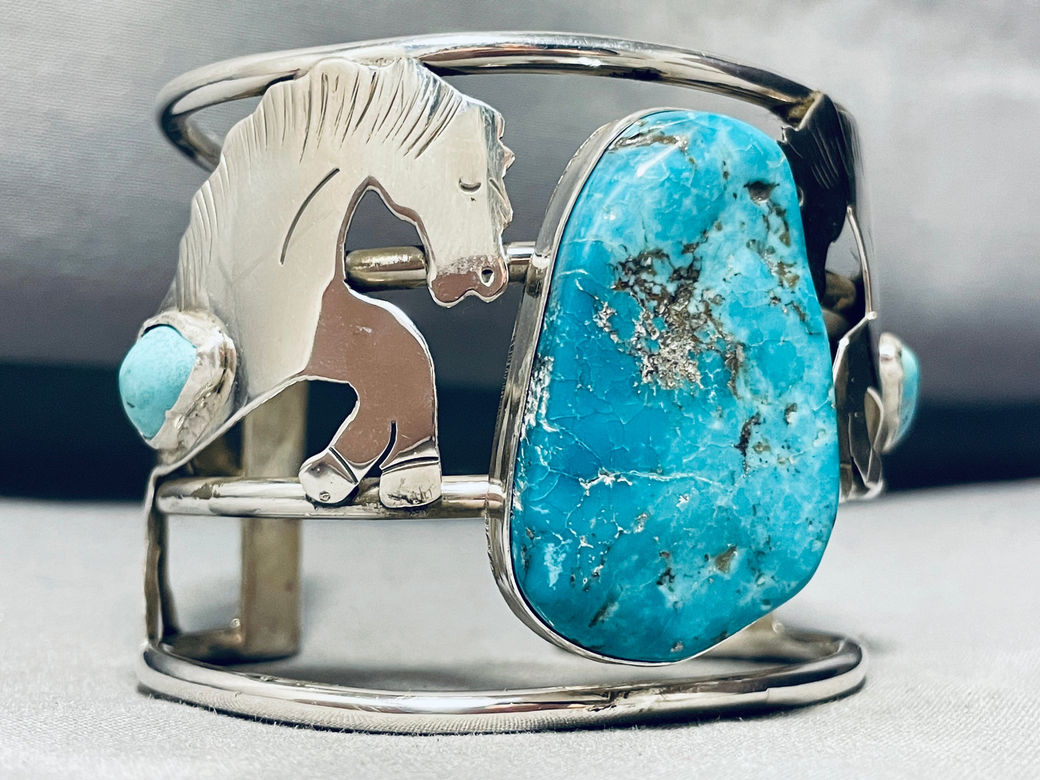 Prancing Horse Native American Navajo Turquoise Sterling Silver Bracelet