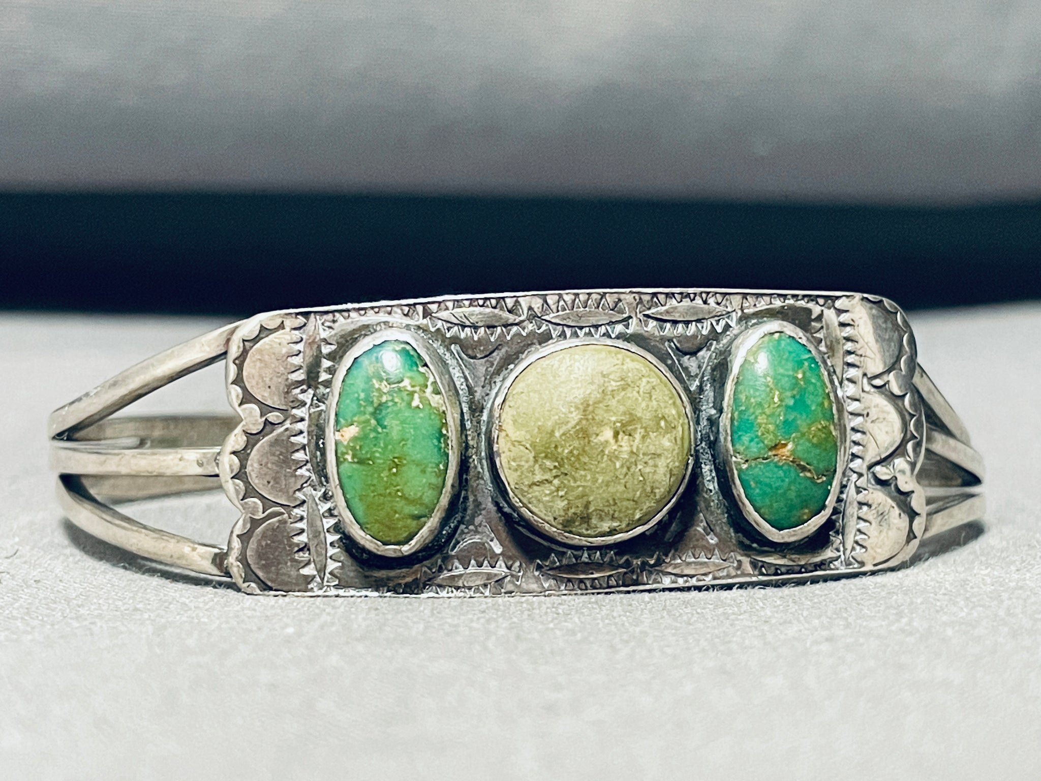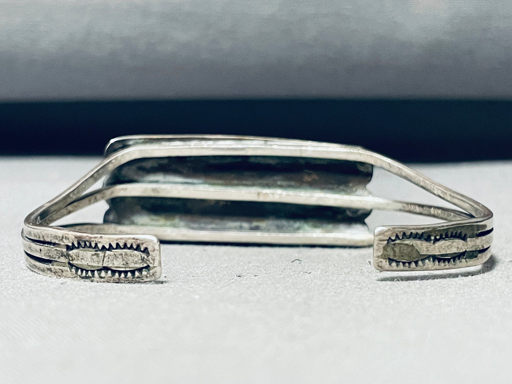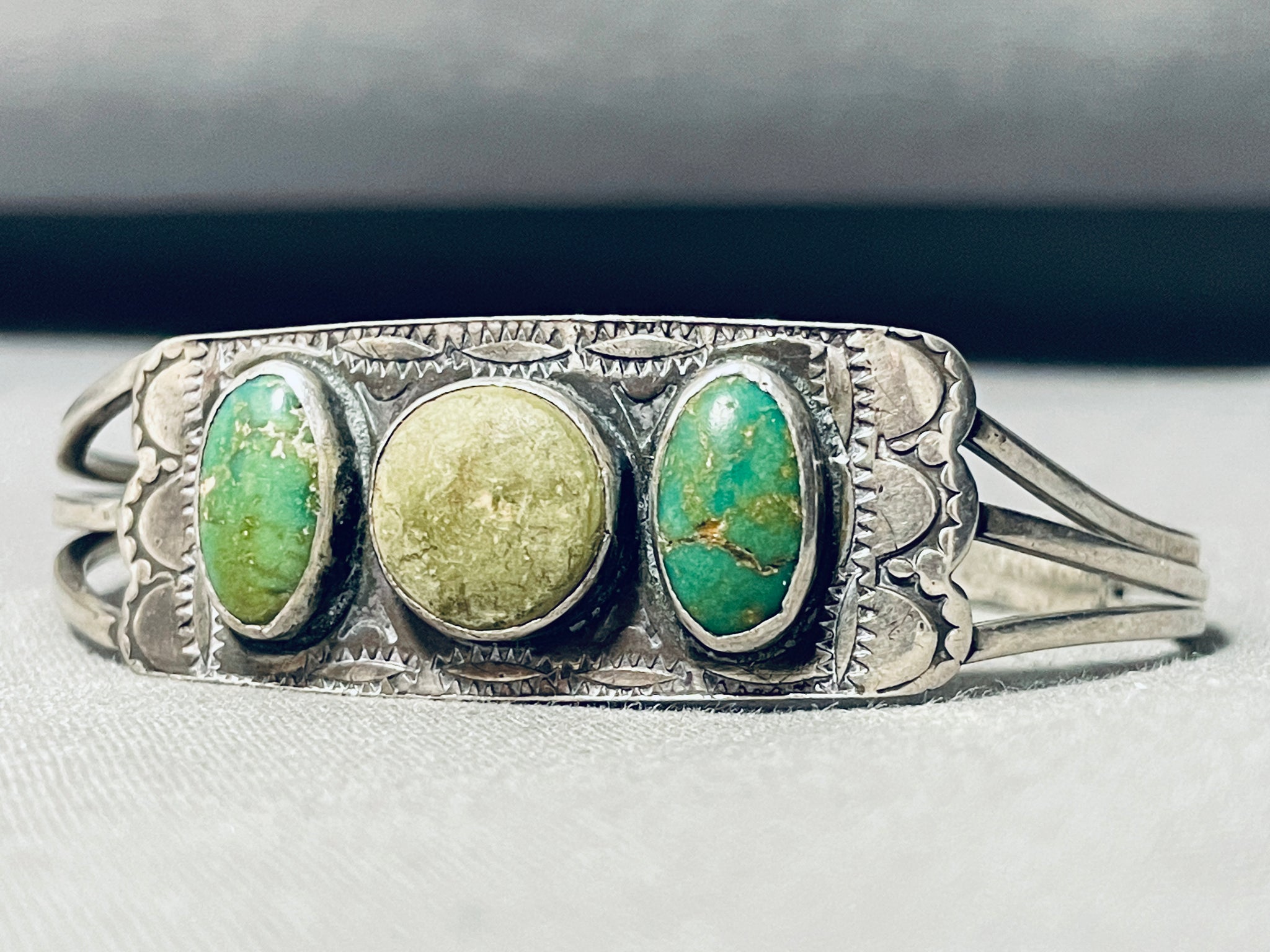 Pre 1920's Vintage Native American Navajo Cerrillos Turquoise Coin Ingot Silver Bracelet