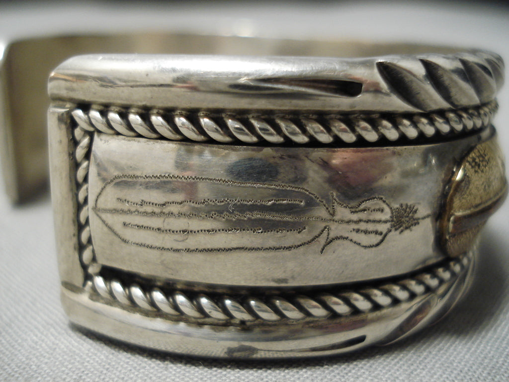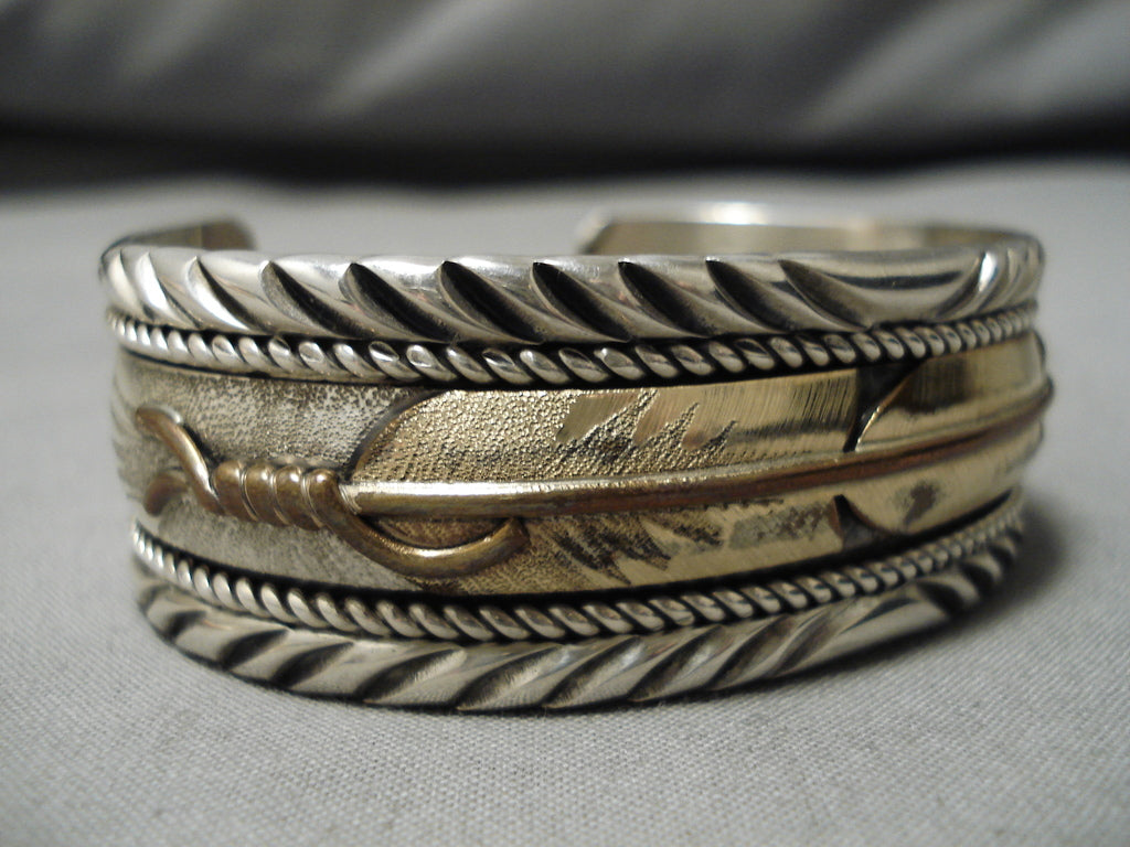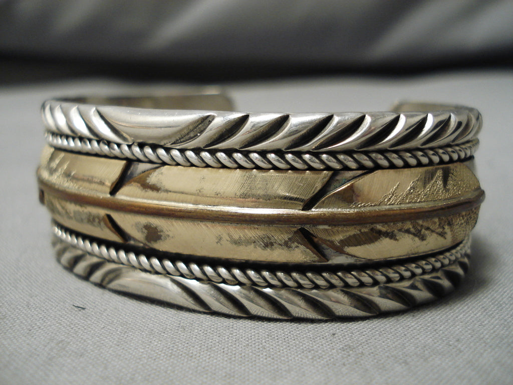 Quality 14k Gold Sterling Silver Mark Yazzie Vintage Native American Navajo Bracelet Old