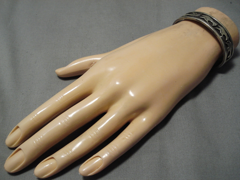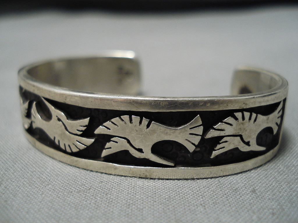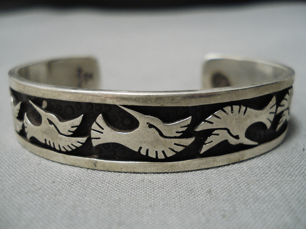 Quality Aaron John Vintage Native American Navajo Hummingbird Sterling Silver Bracelet