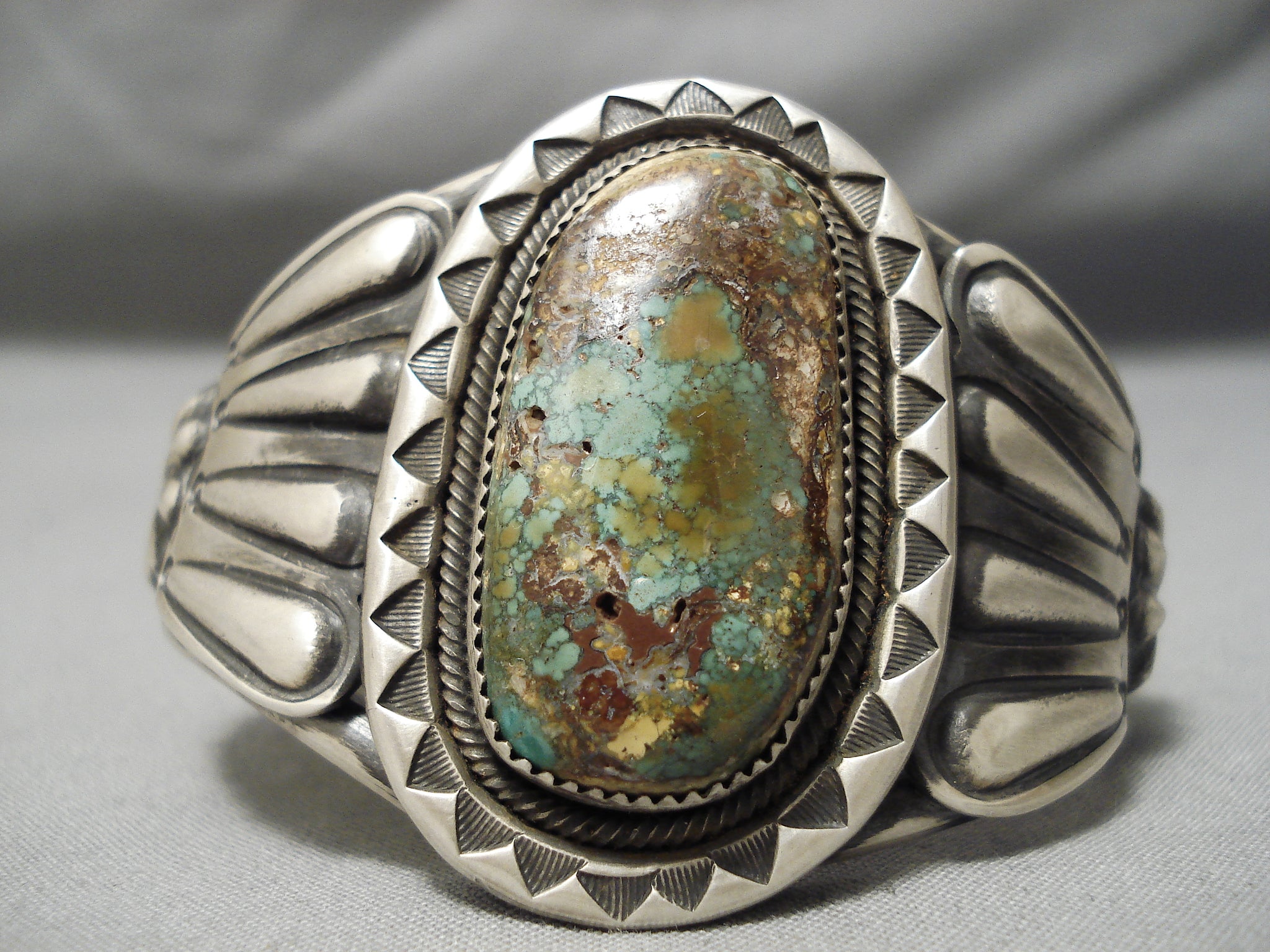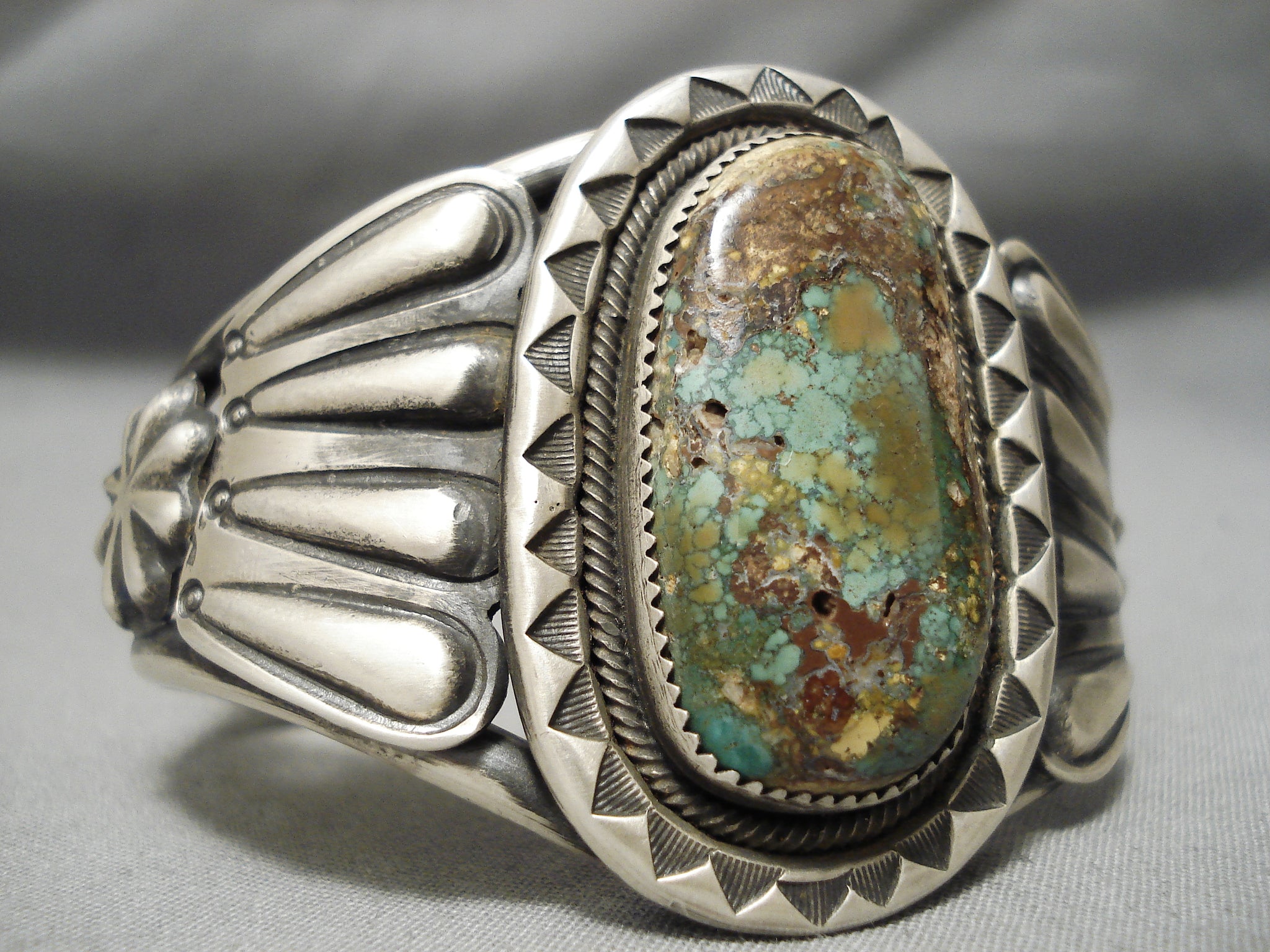 Quality Zuni Native American Rare Technique Turquoise Sterling Silver Bracelet