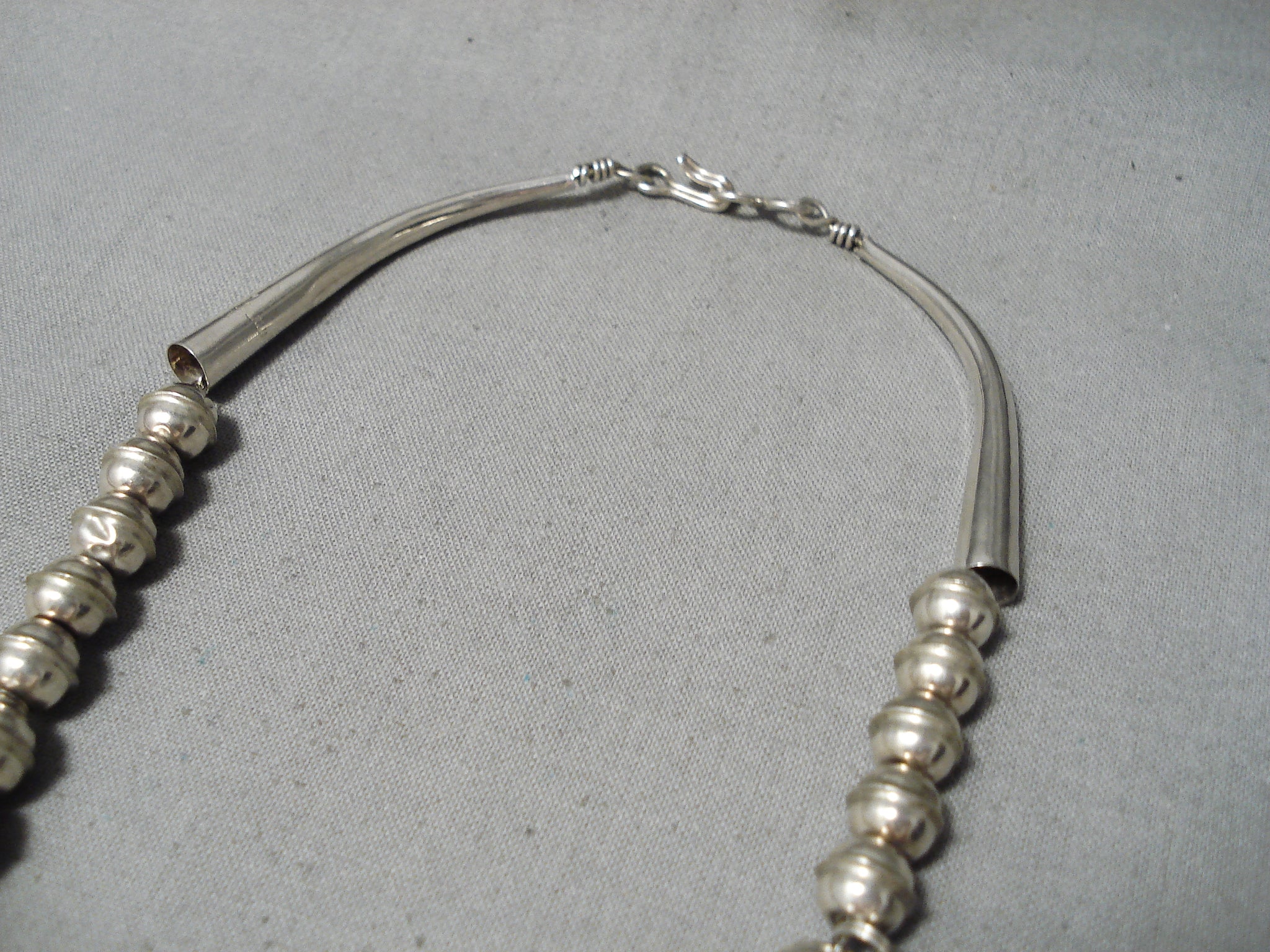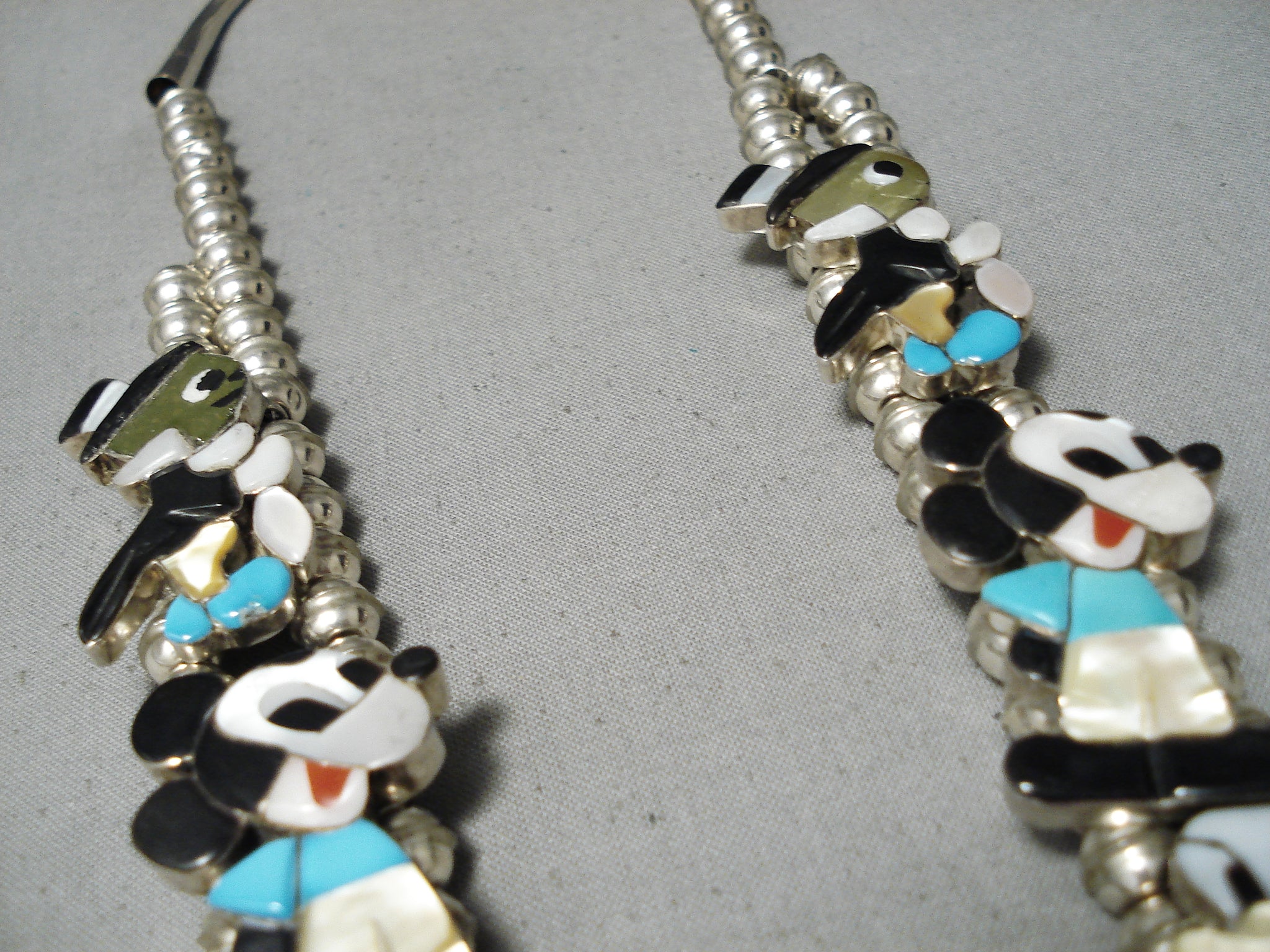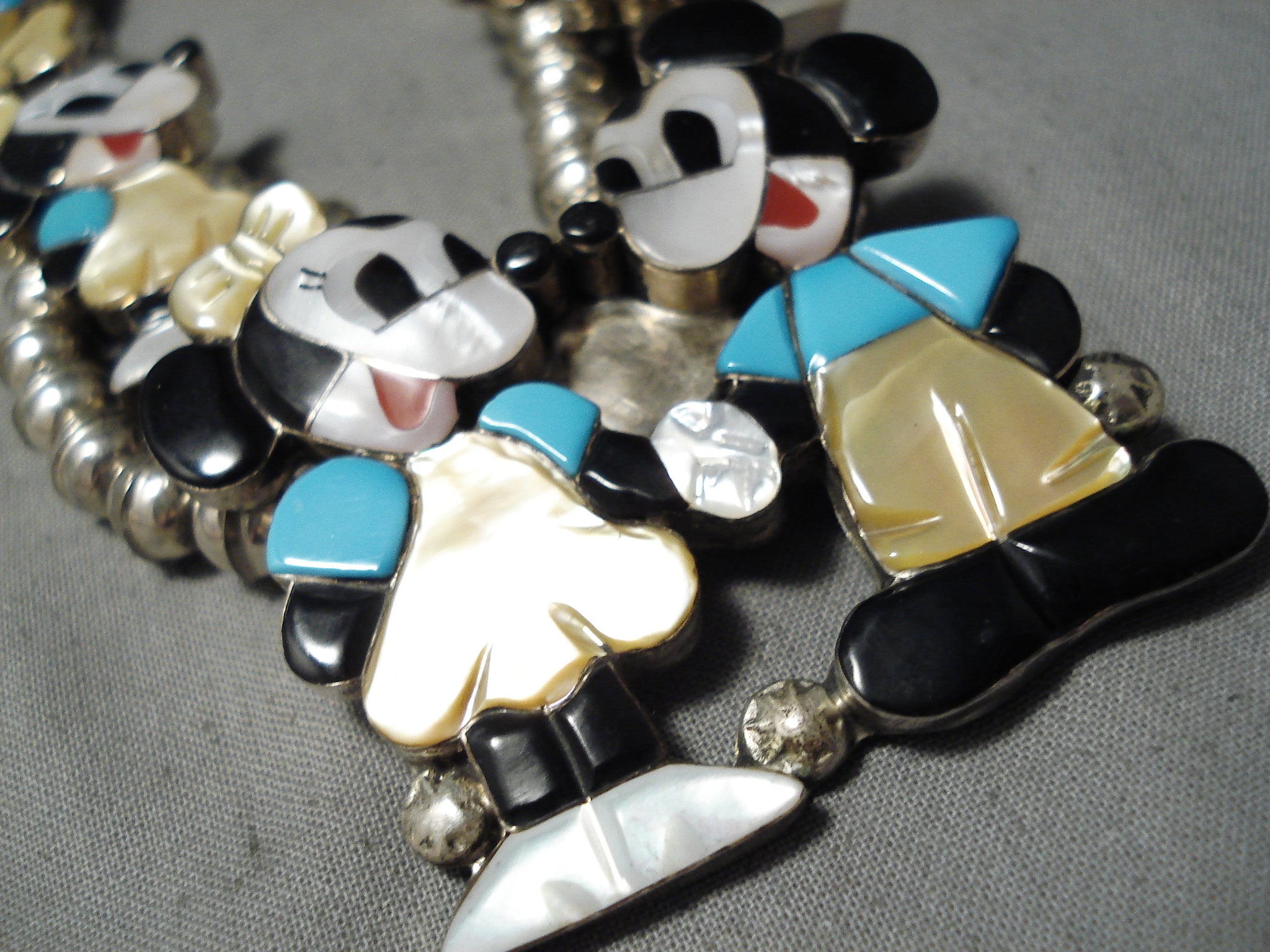 Rare 1980's Vintage Native American Zuni Turquoise Sterling Silver Squash Blossom Necklace Old