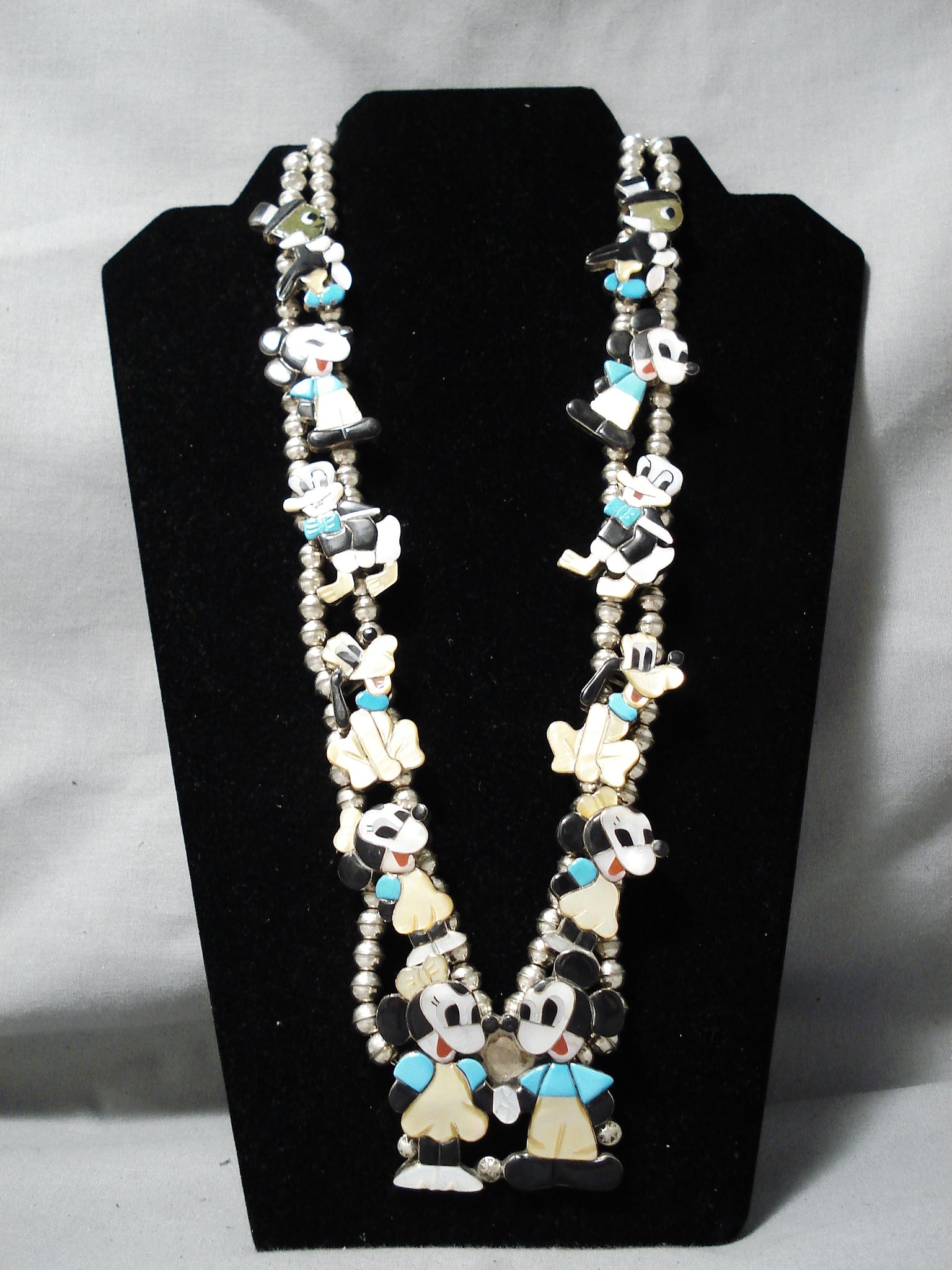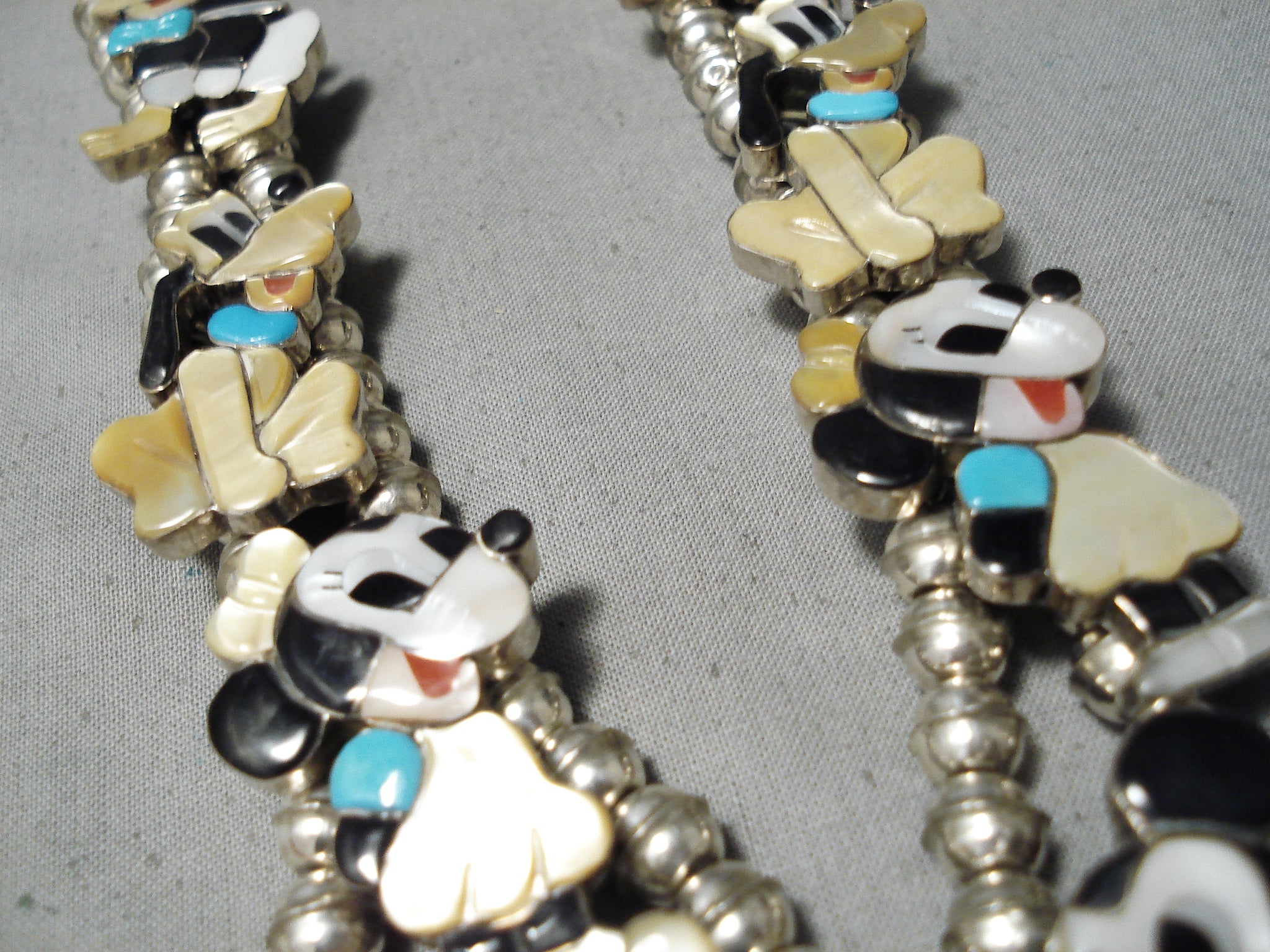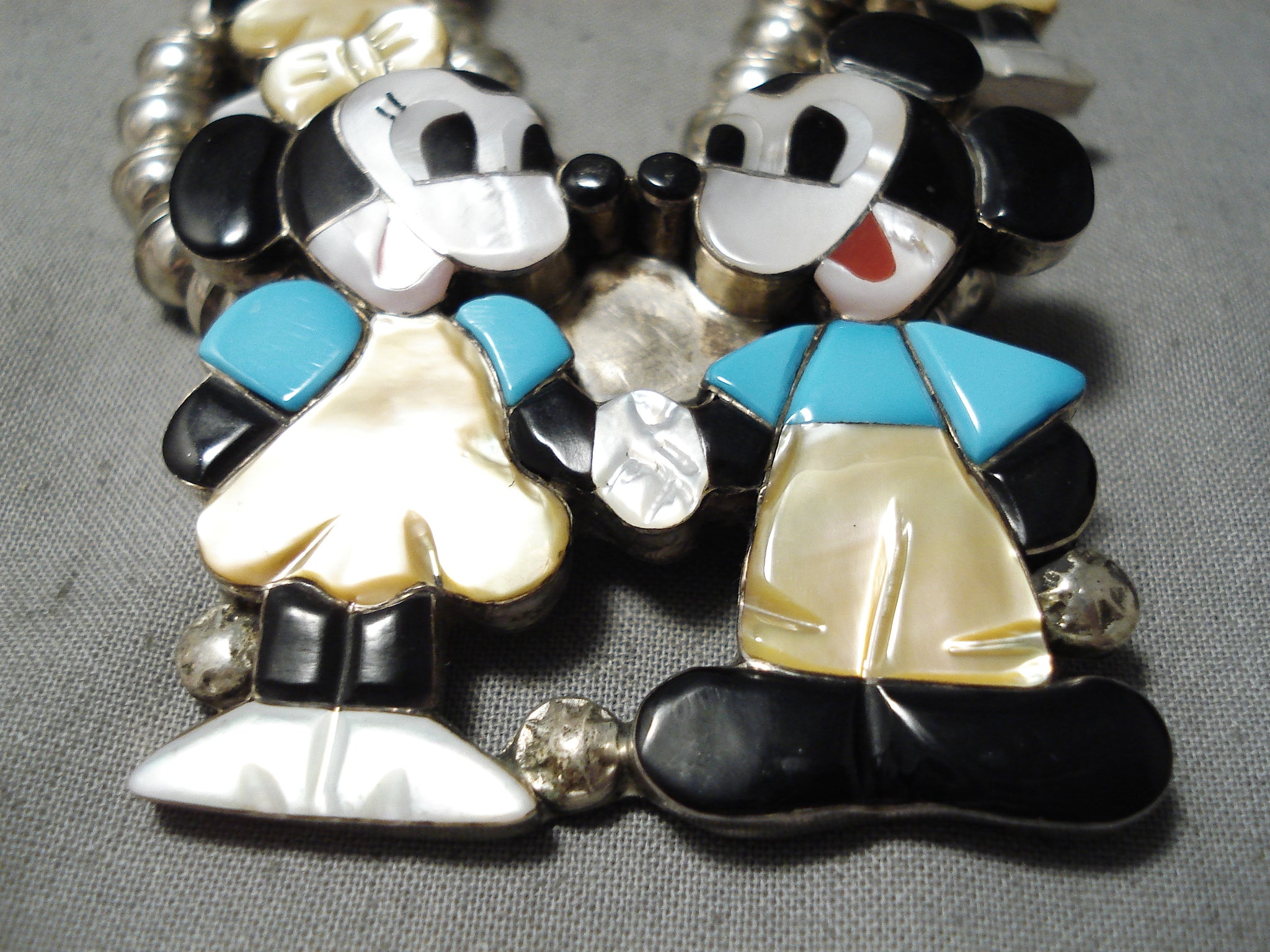 Rare 1980's Vintage Native American Zuni Turquoise Sterling Silver Squash Blossom Necklace Old