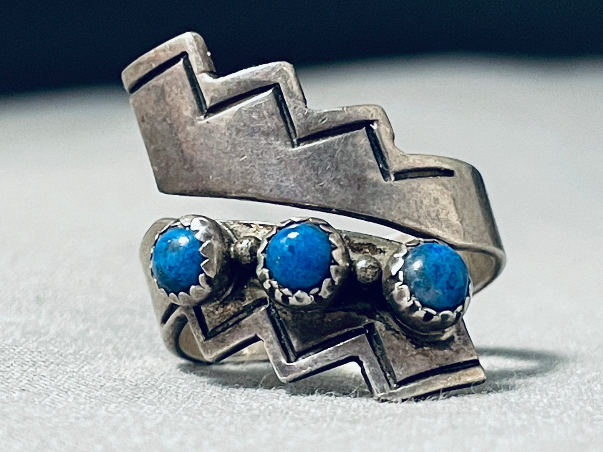 Rare Adjustable Shank Vintage Native American Navajo Lapis Sterling Silver Ring