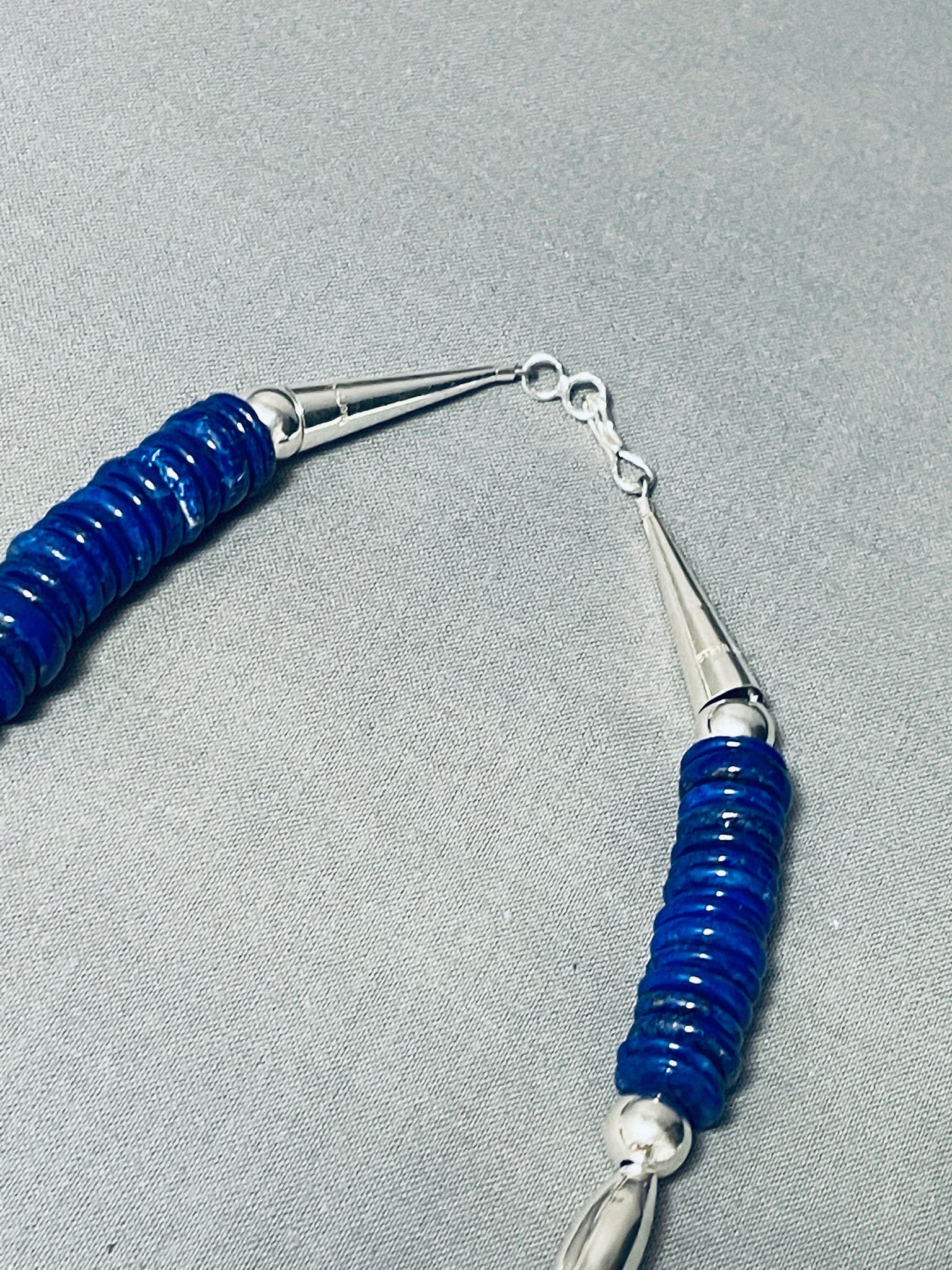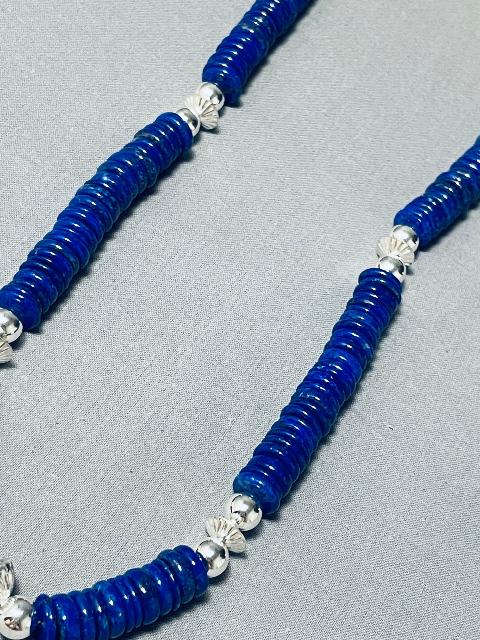 Rare Authentic Native American Navajo Lapis Sterling Silver Bead Necklace