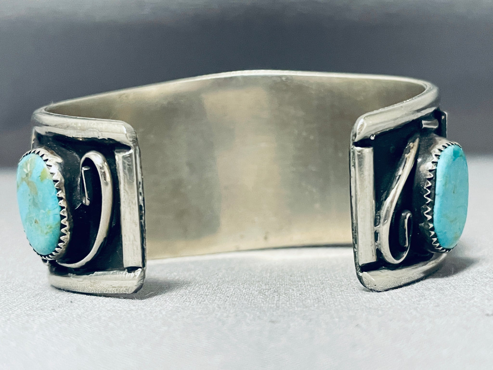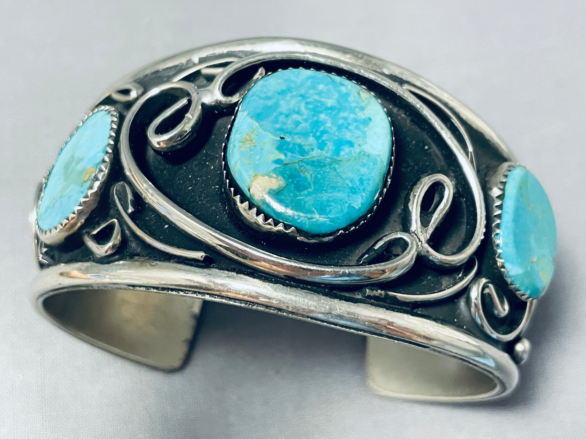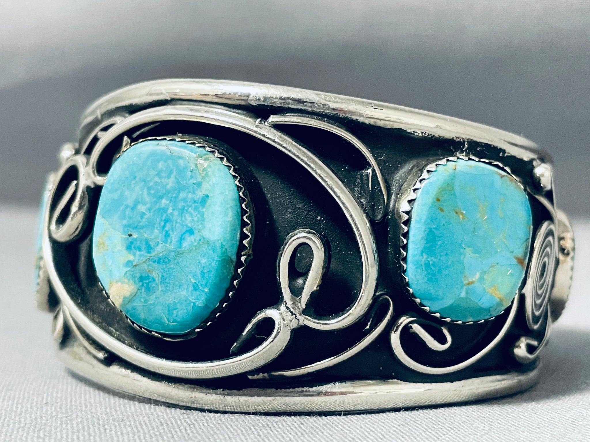 Rare Authentic Vintage Native American Navajo Blue Gem Turquoise Sterling Silver Bracelet