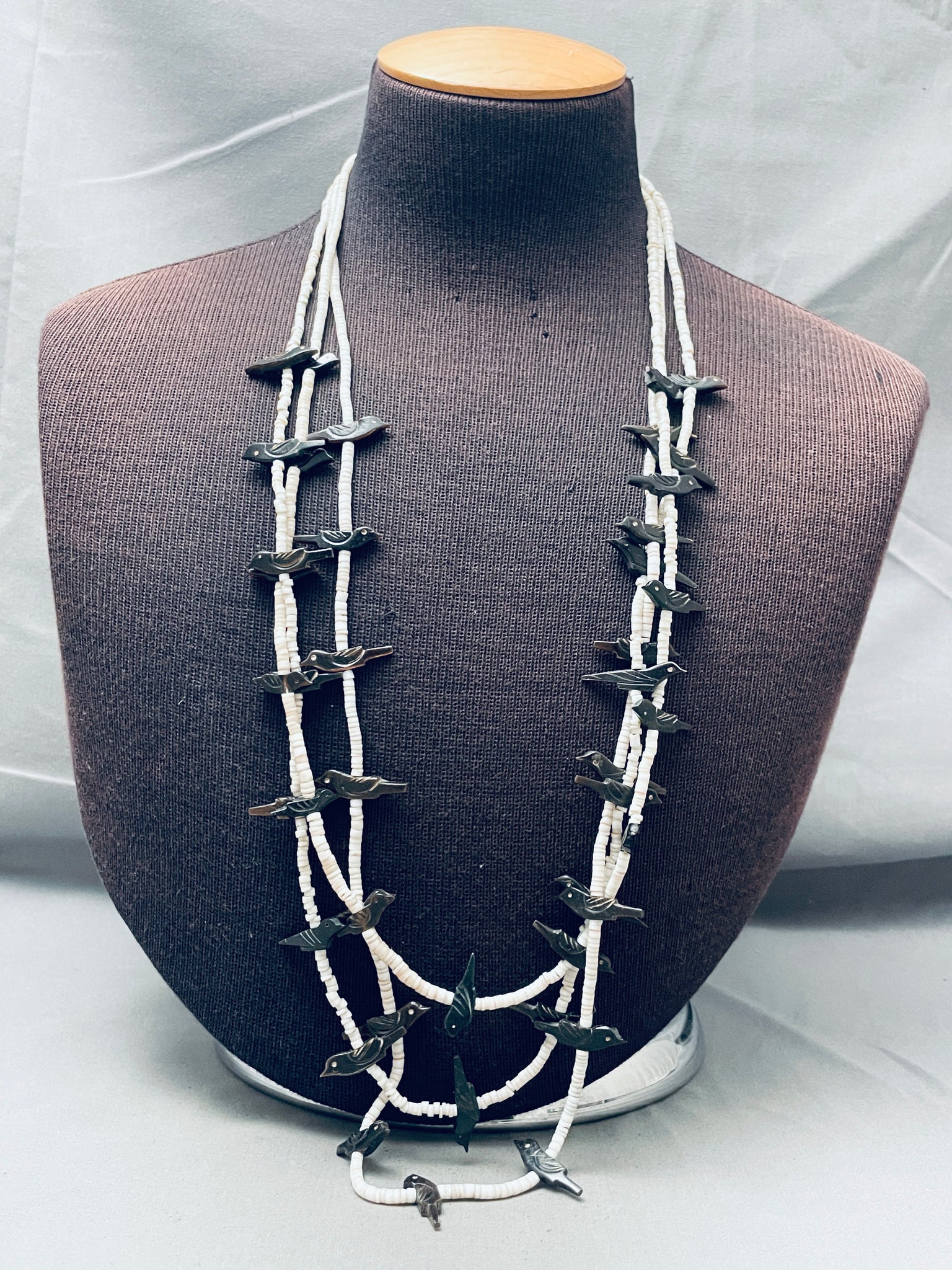Rare Blackbird Vintage Santo Domingo White Heishi Sterling Silver Necklace Old