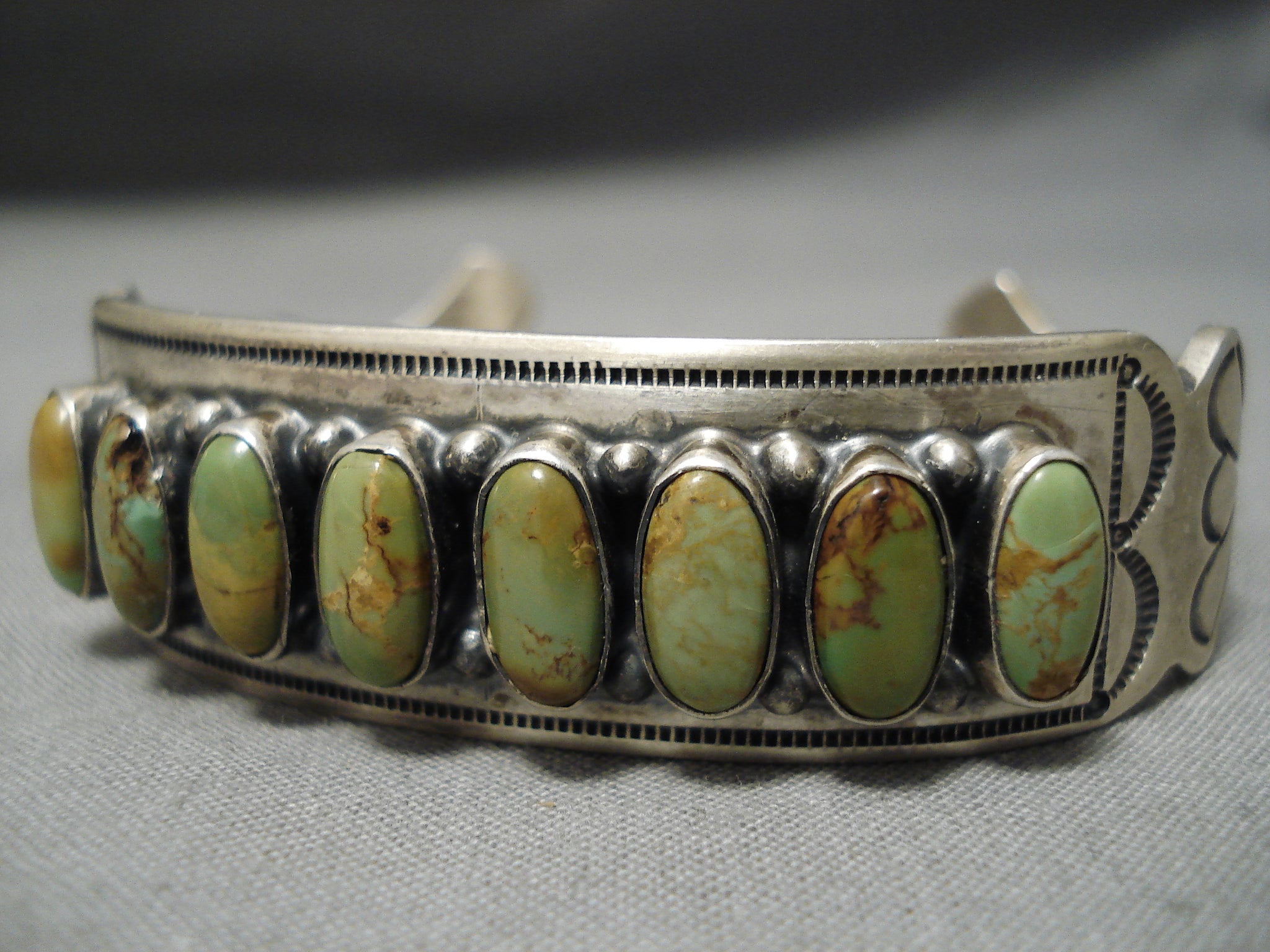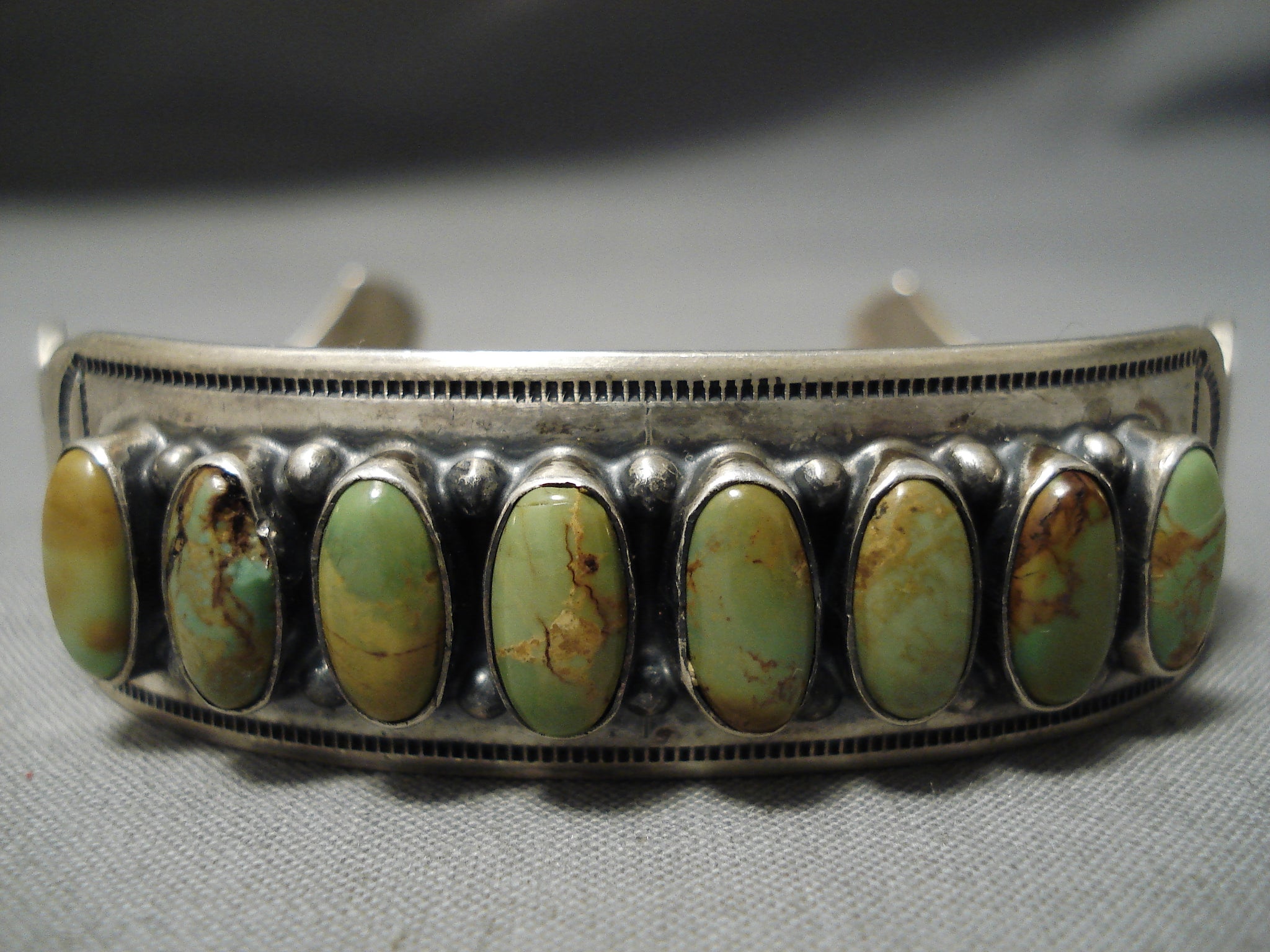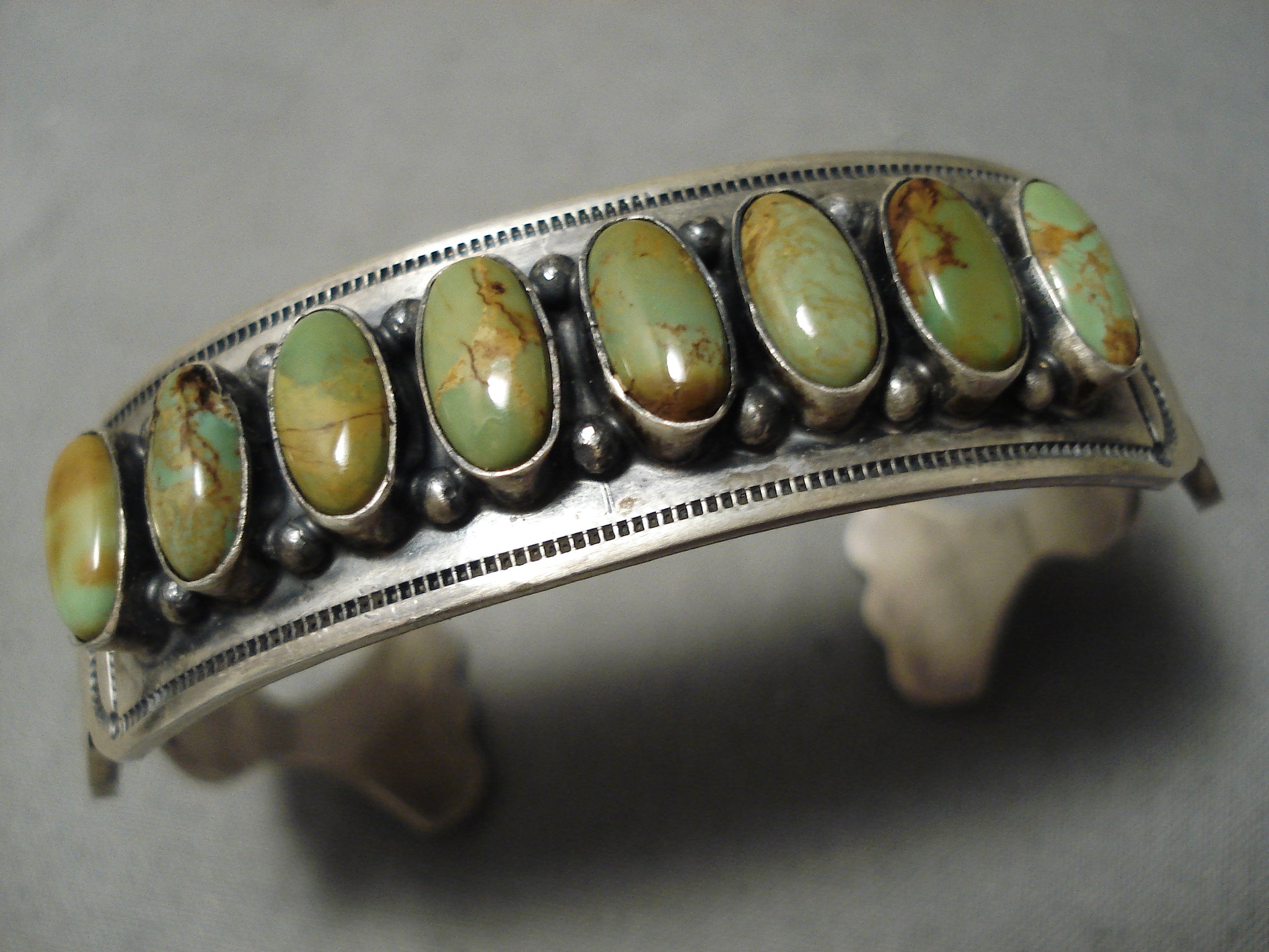 Rare Domed Royston Turquoise Vintage Native American Navajo Sterling Silver Bracelet