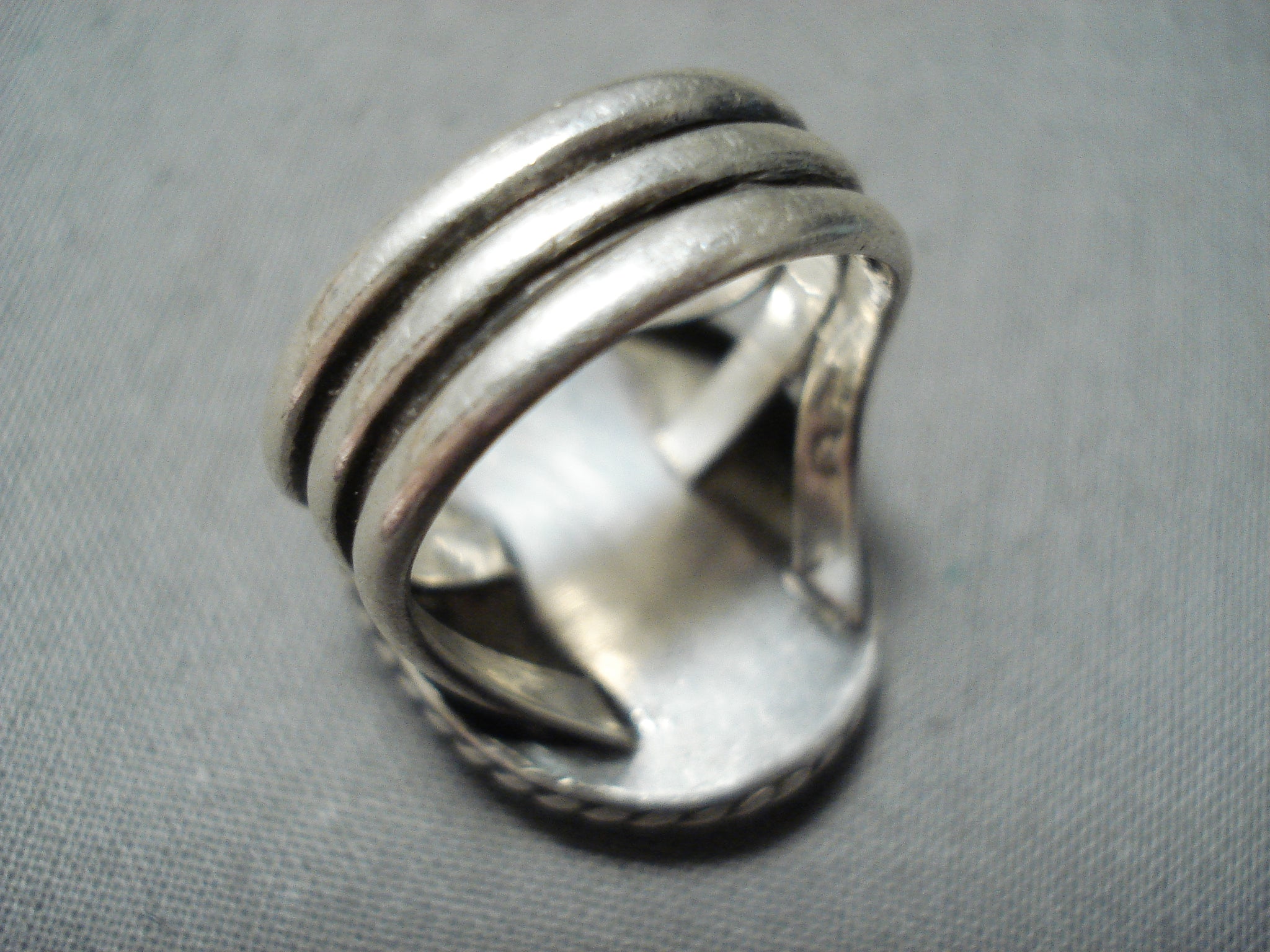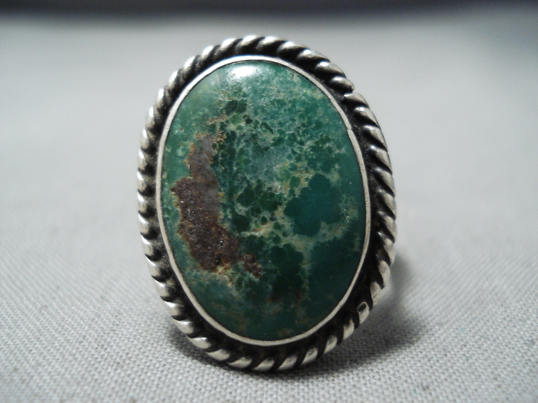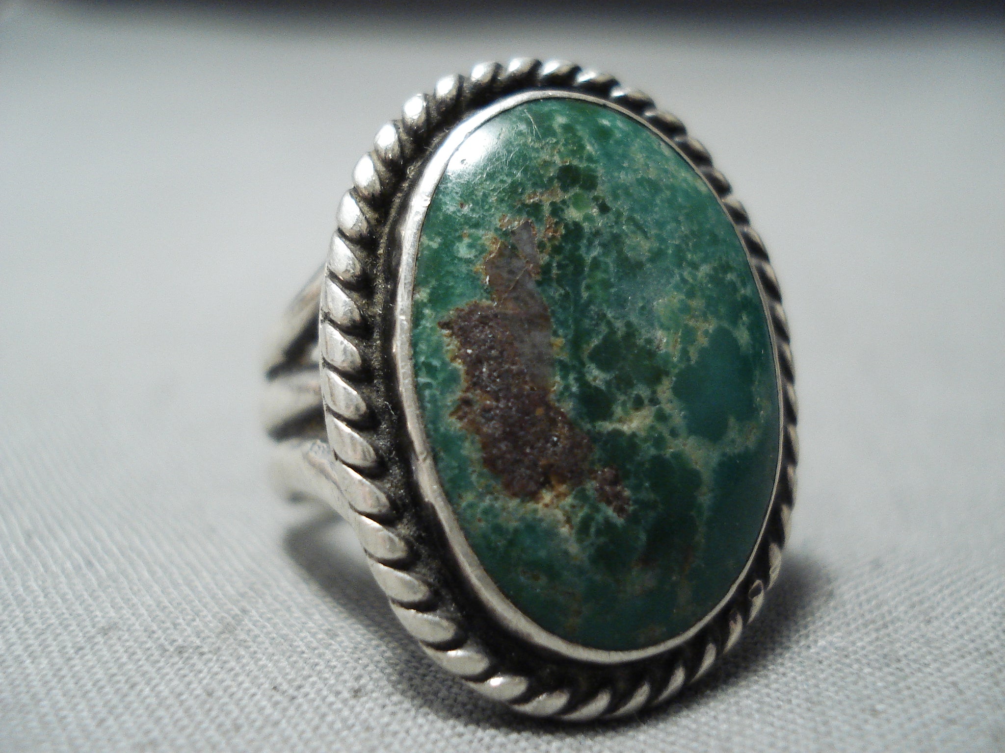 Rare Earlier Vintage Native American Navajo Domed Green Turquoise Sterling Silver Ring Old