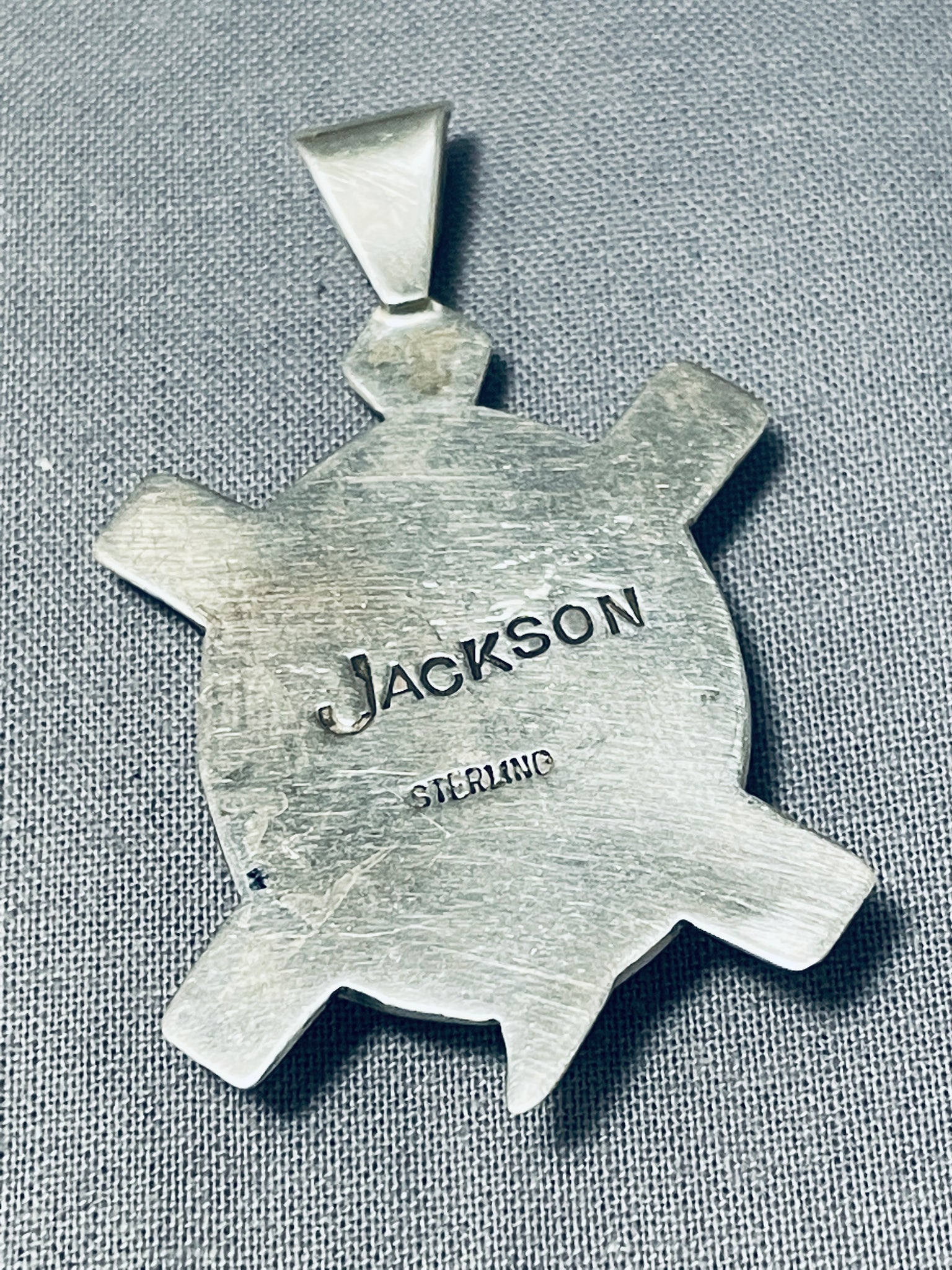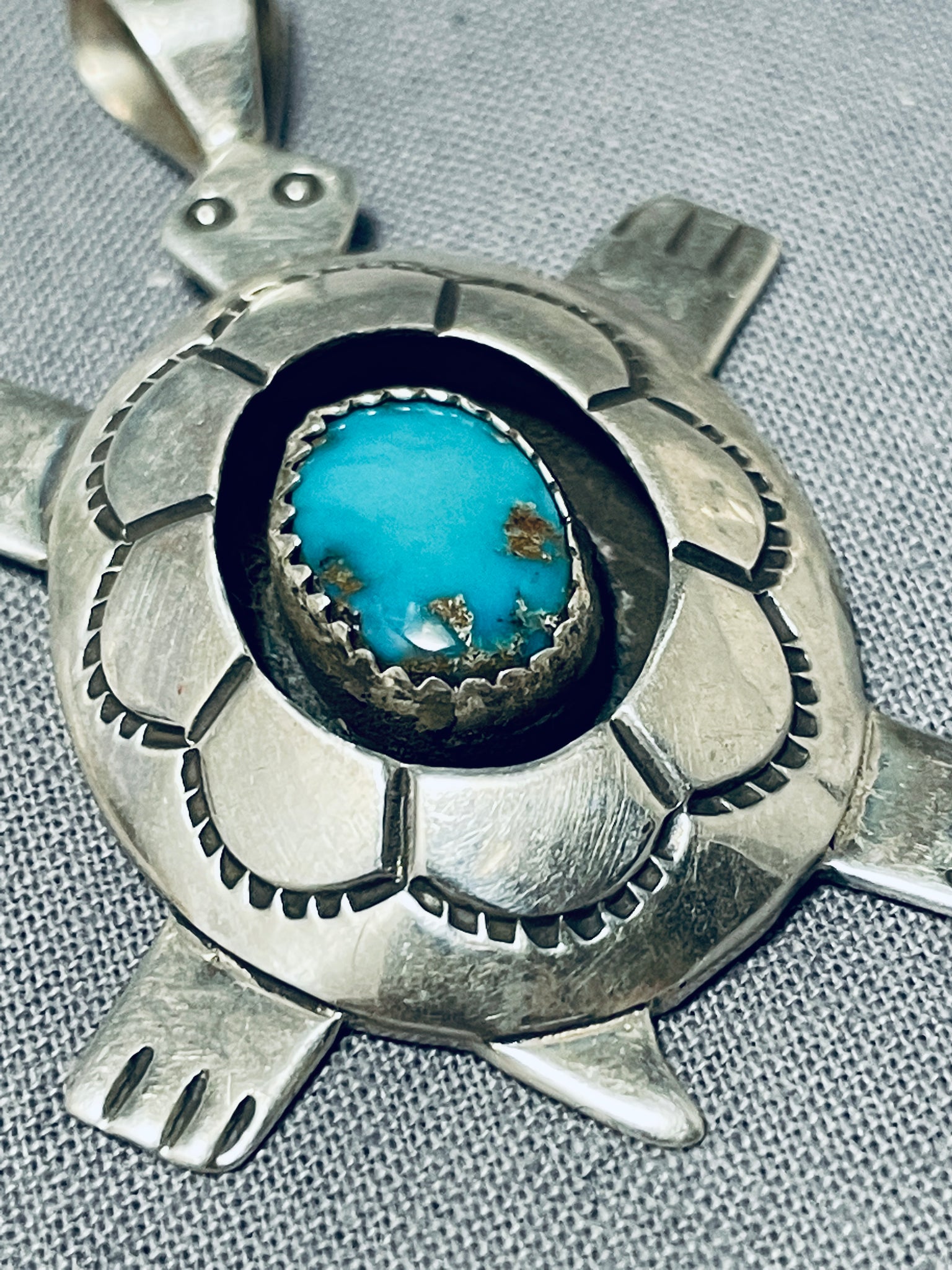Rare Early Tommy Jackson Vintage Native American Navajo Turtle Turquoise Sterling Silver Pendant