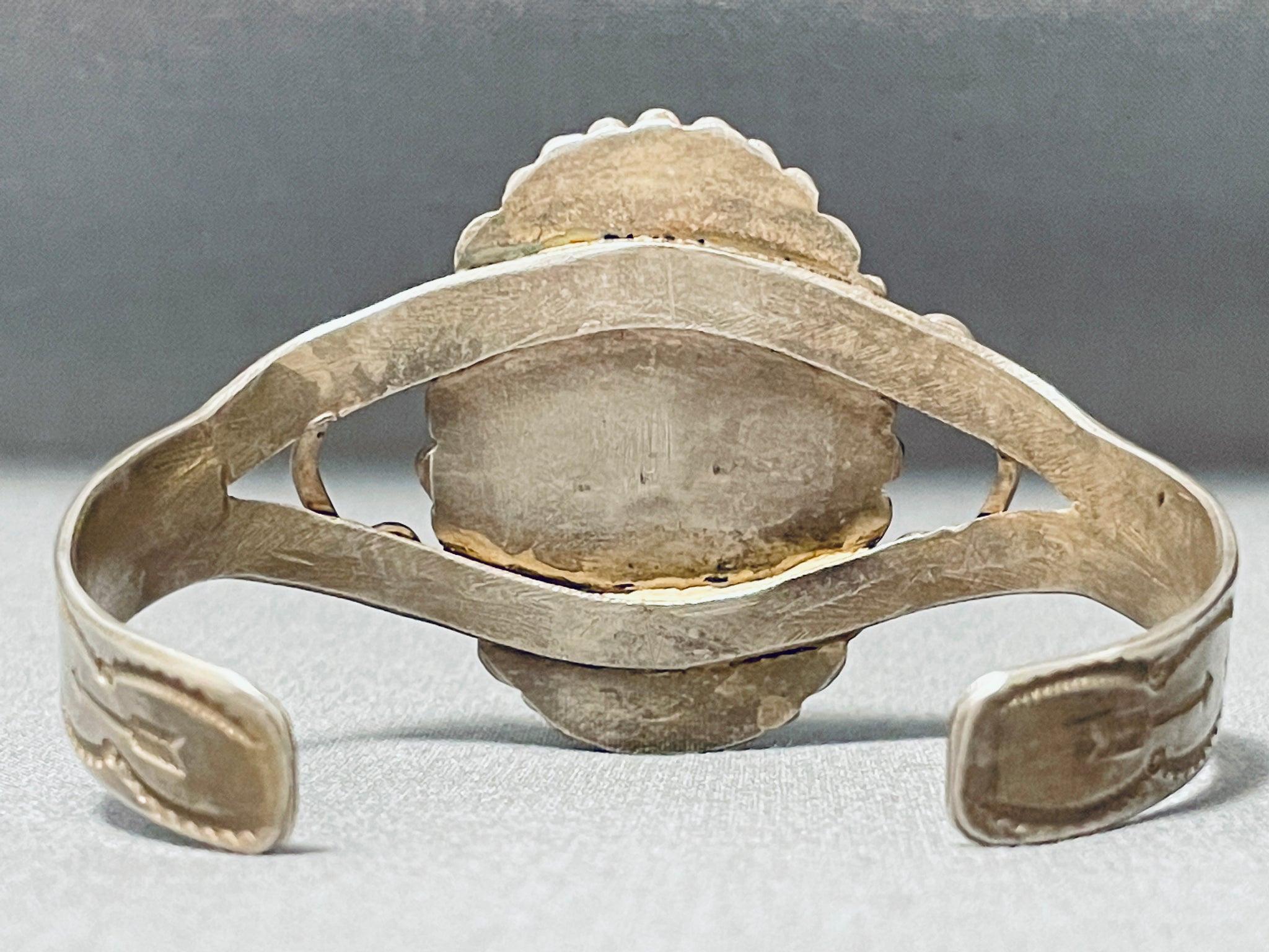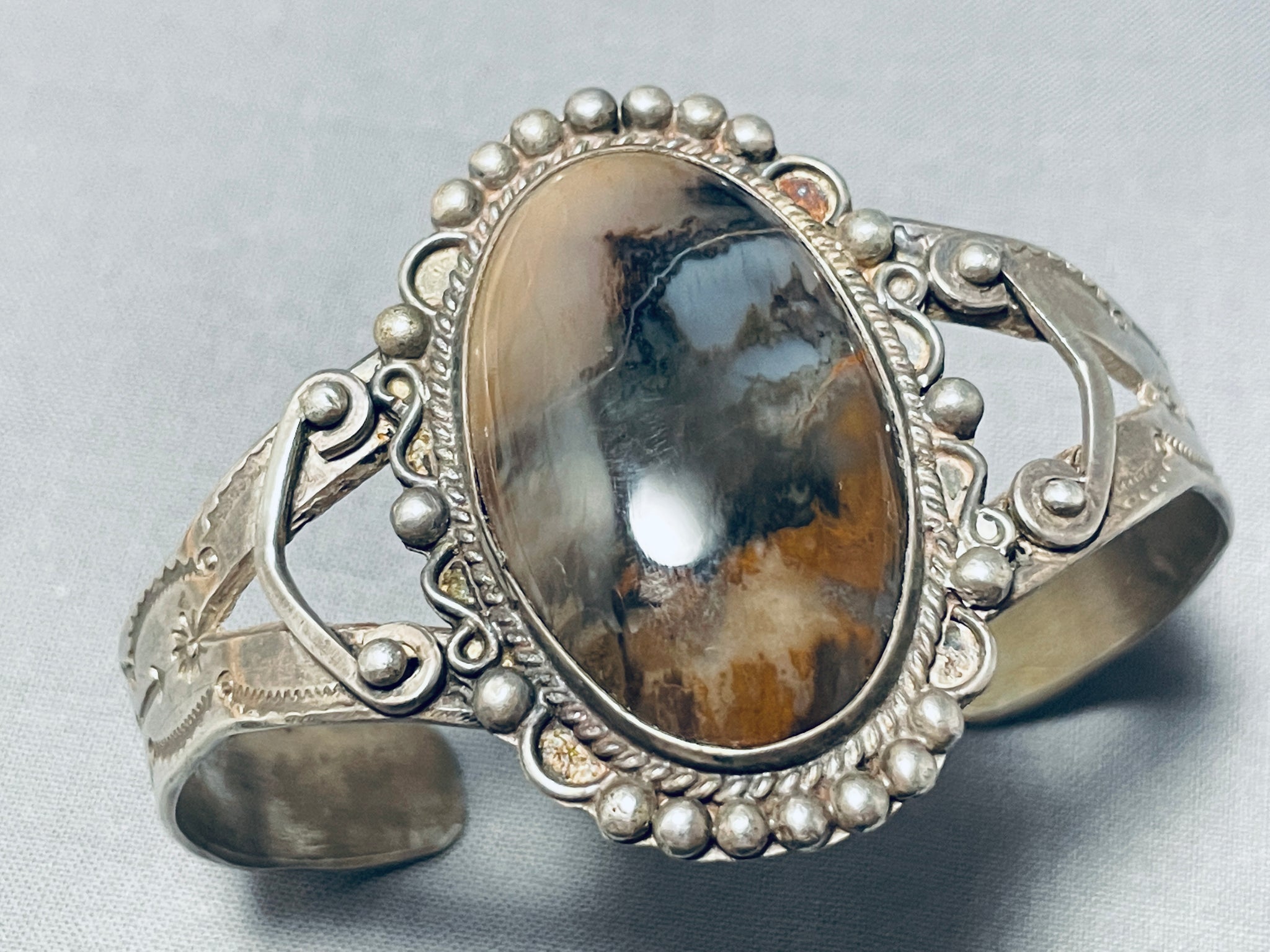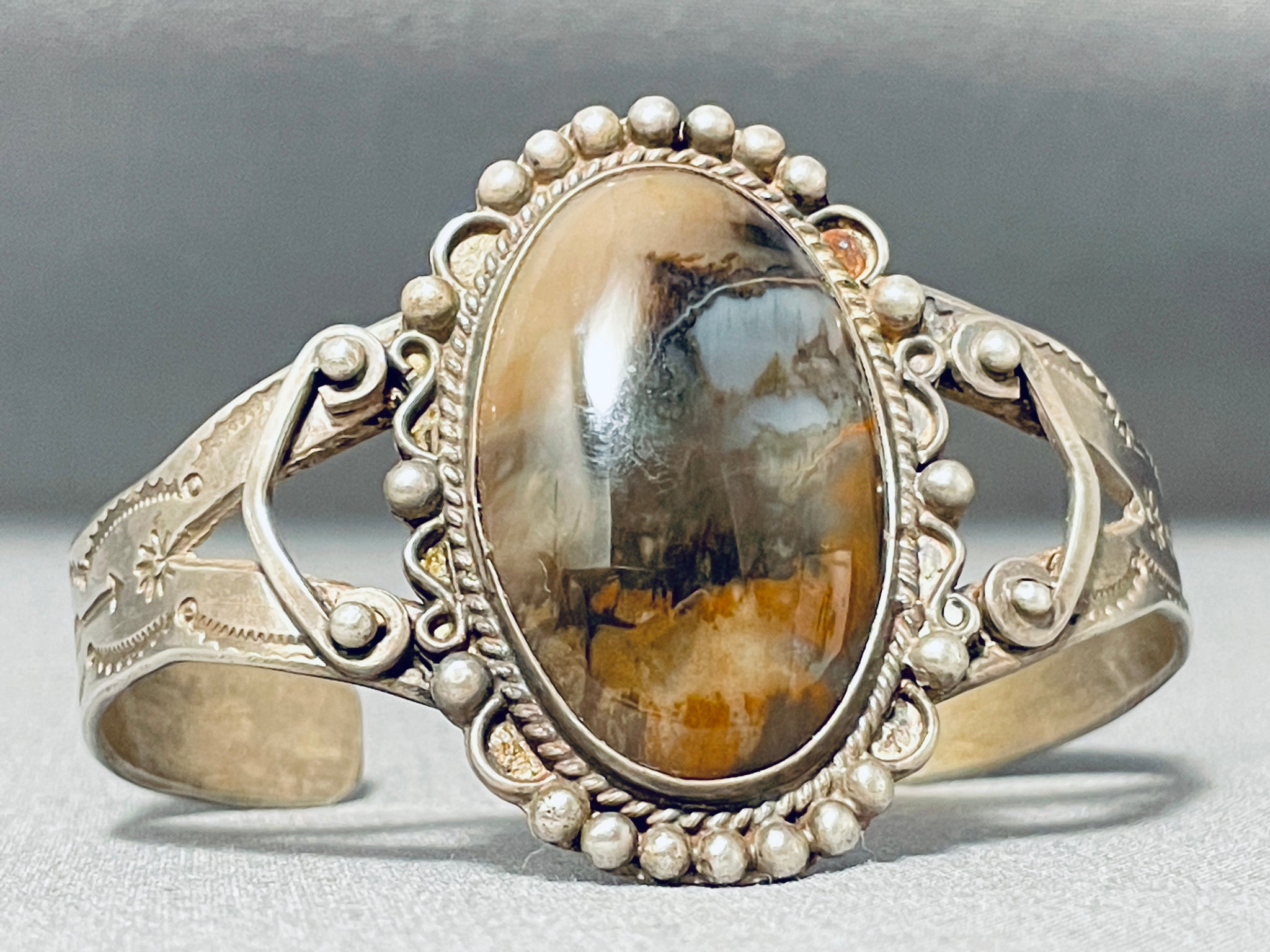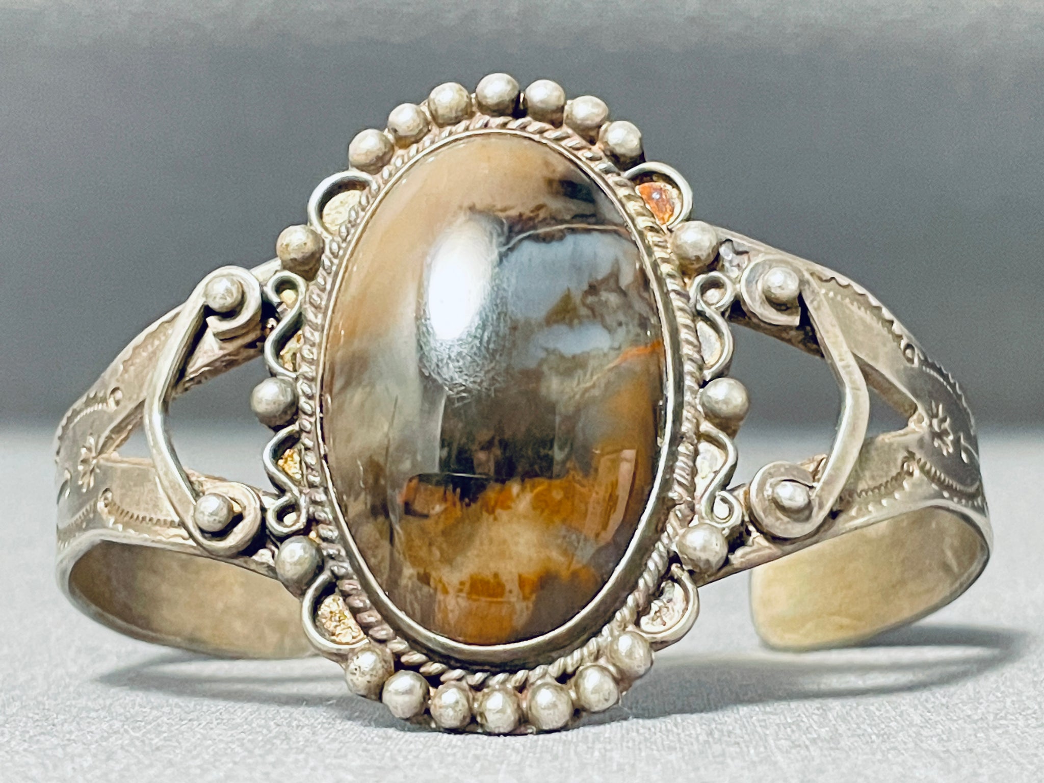 Rare Early Vintage Native American Navajo Petrified Wood Sterling Silver Bracelet