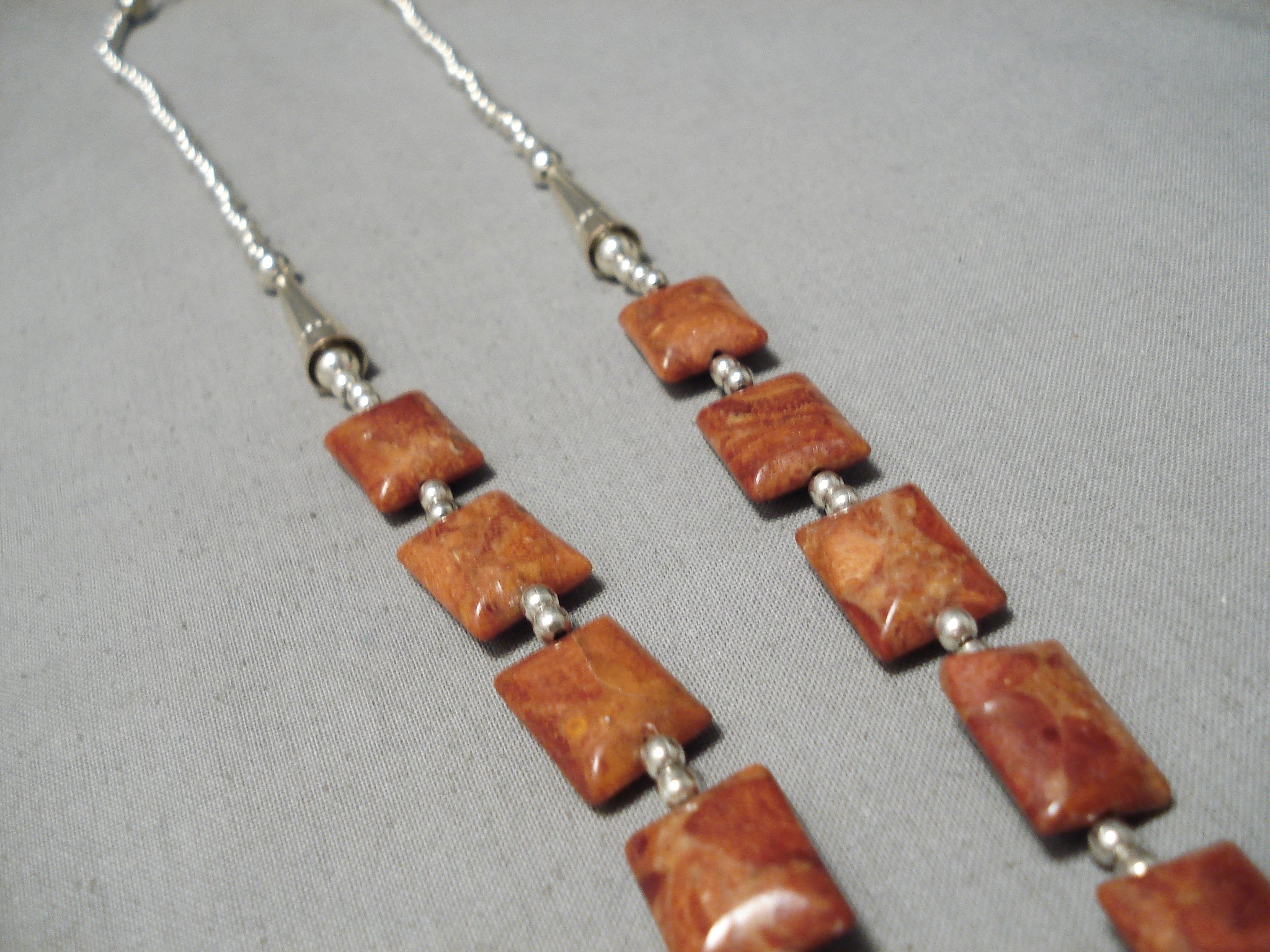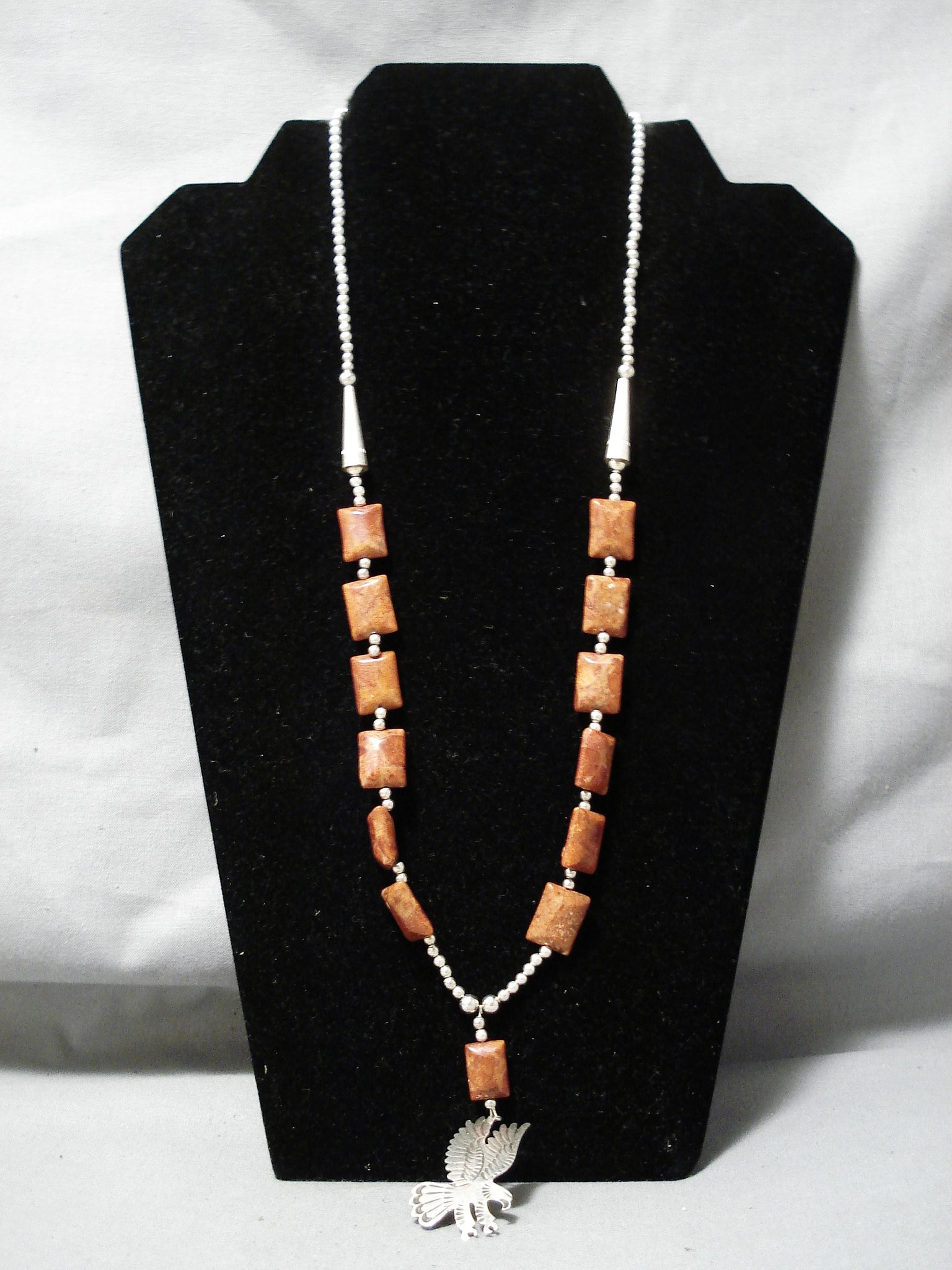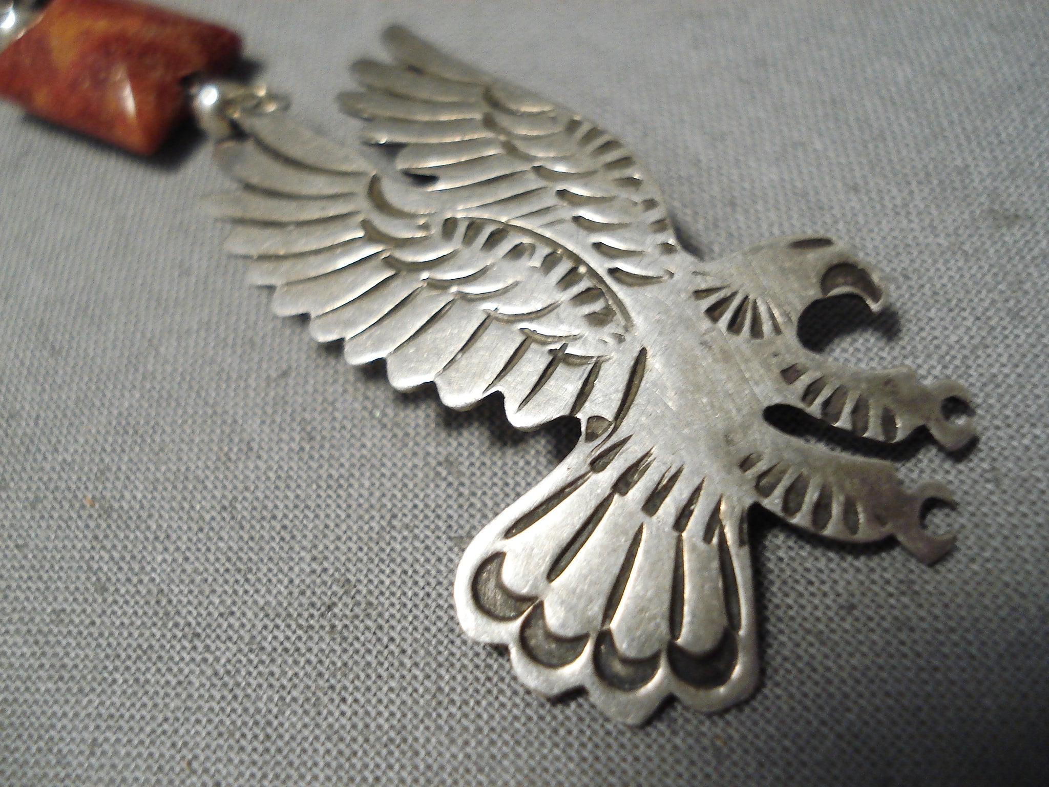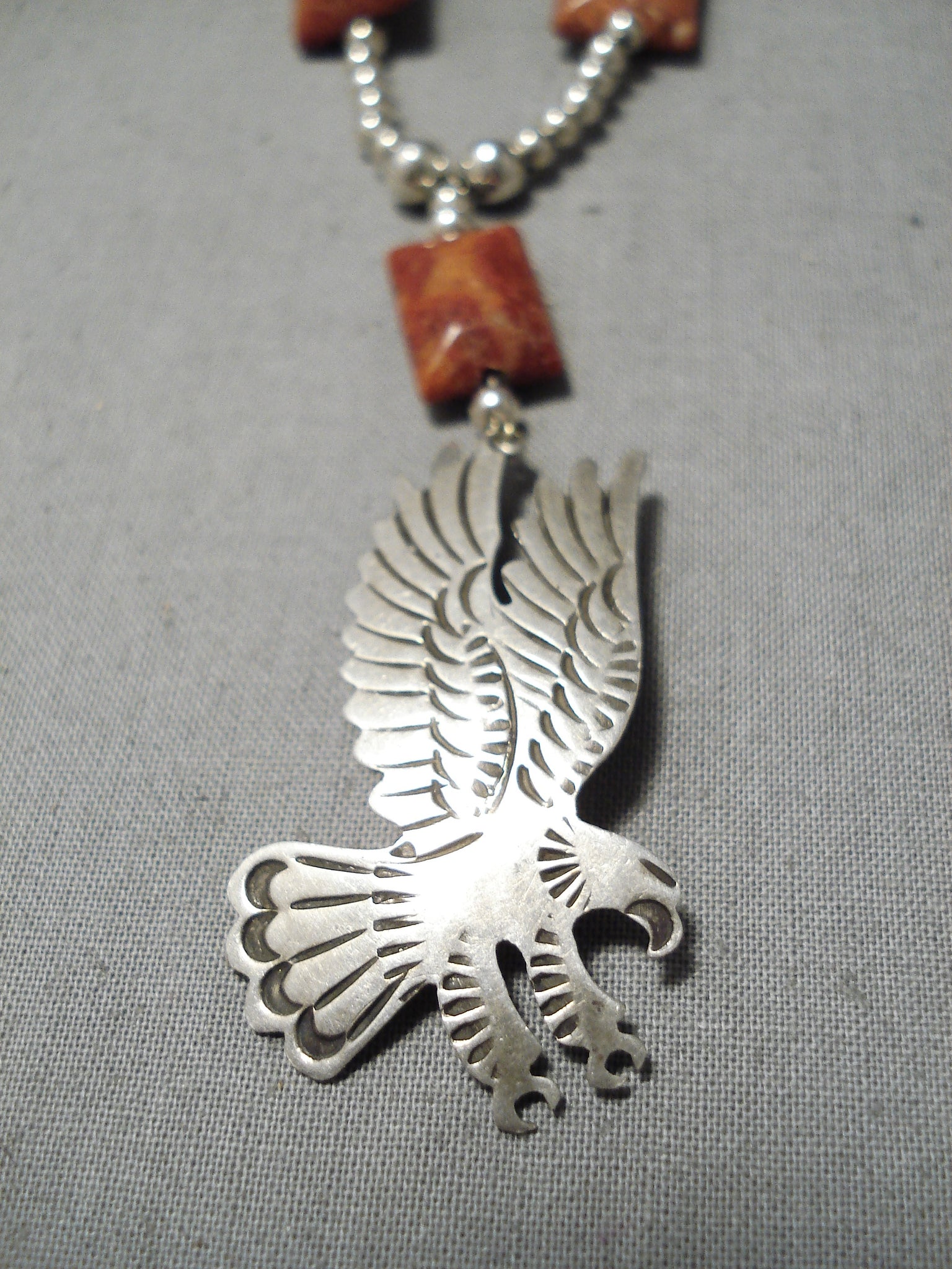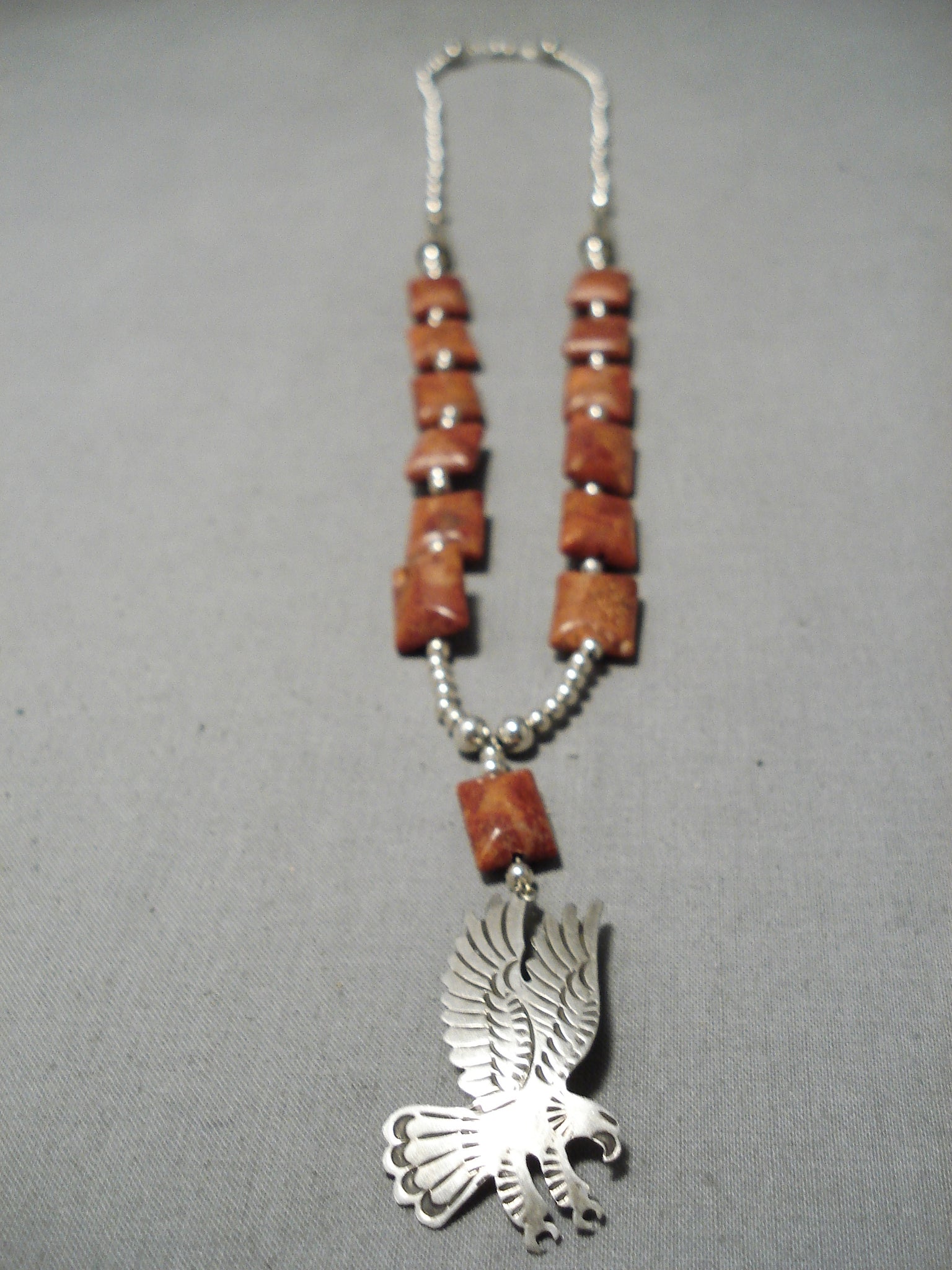 Rare Flying Eagle Vintage Native American Navajo Squared Spiny Oyster Sterling Silver Necklace