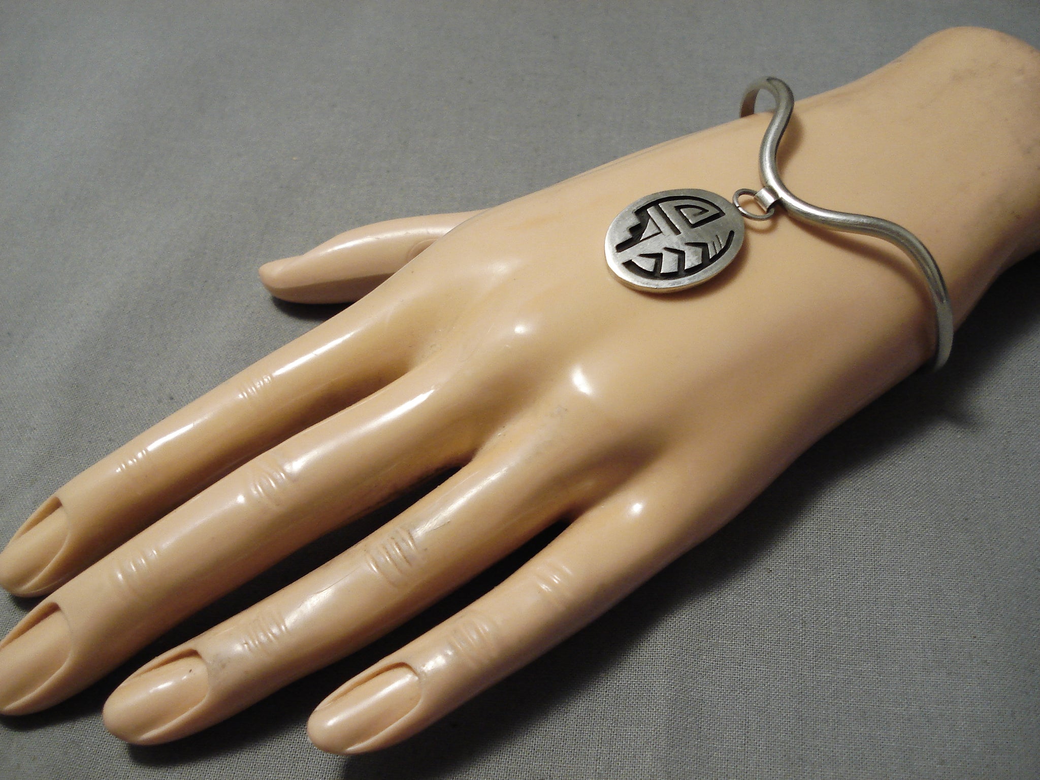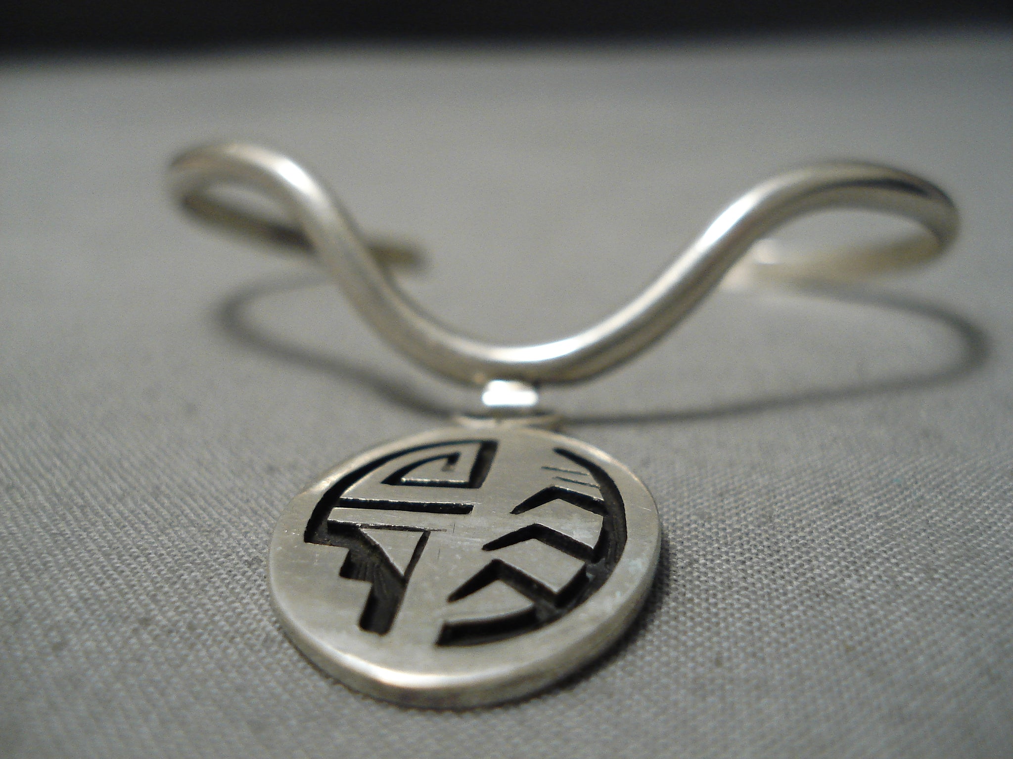 Rare Frank Lahaleon Waving Native American Hopi Vintage Sterling Silver Bracelet Old