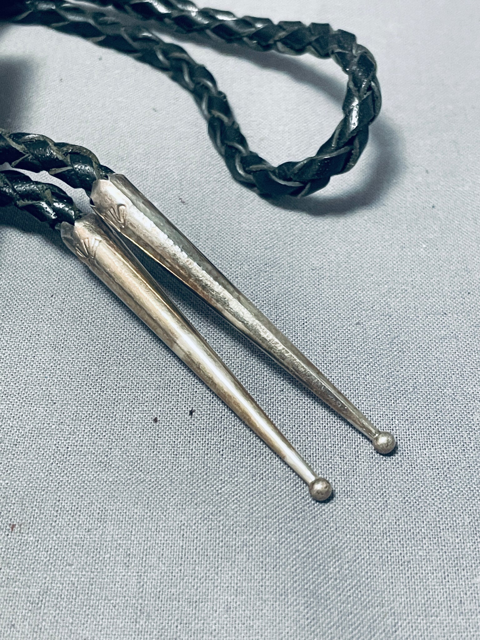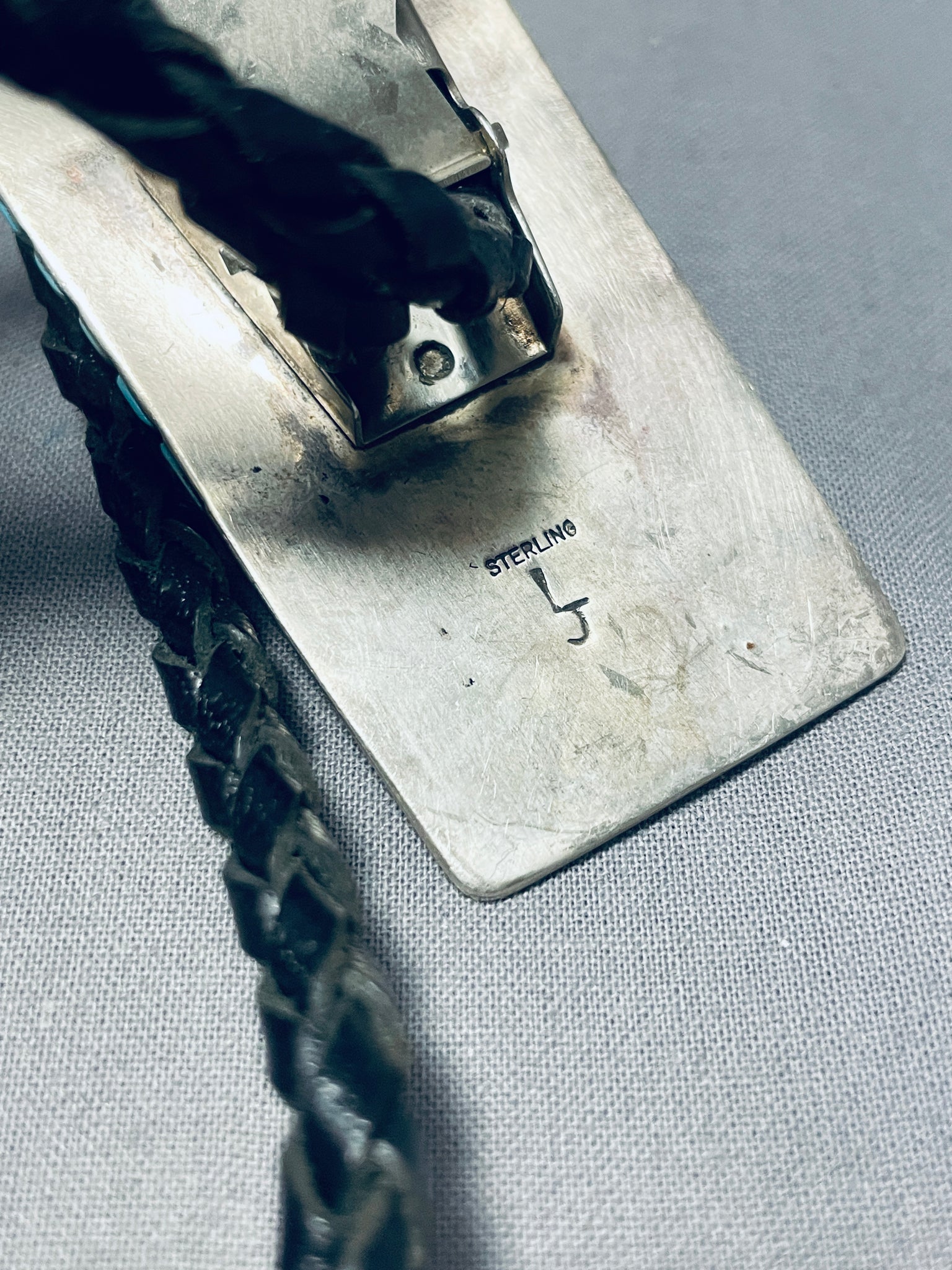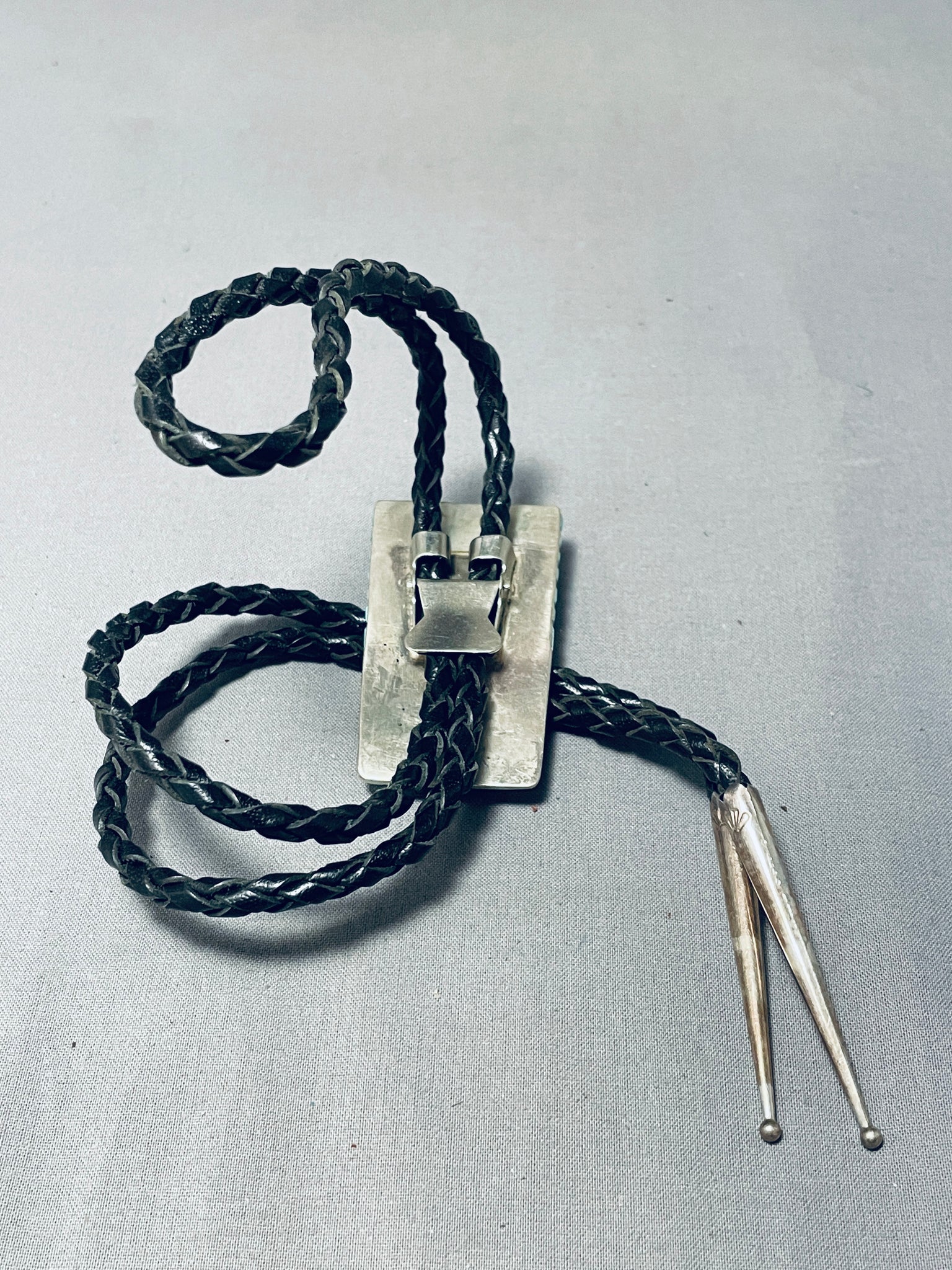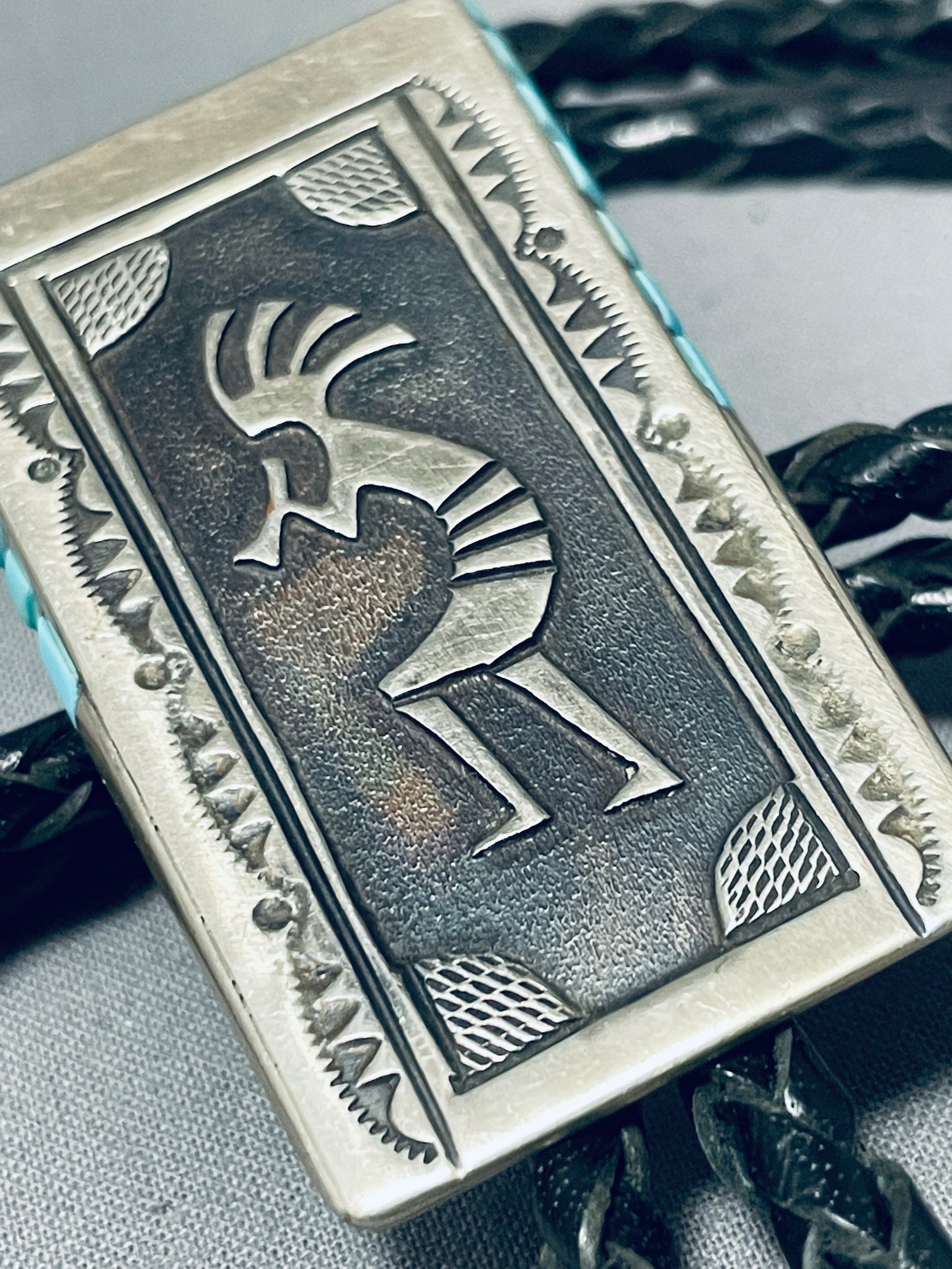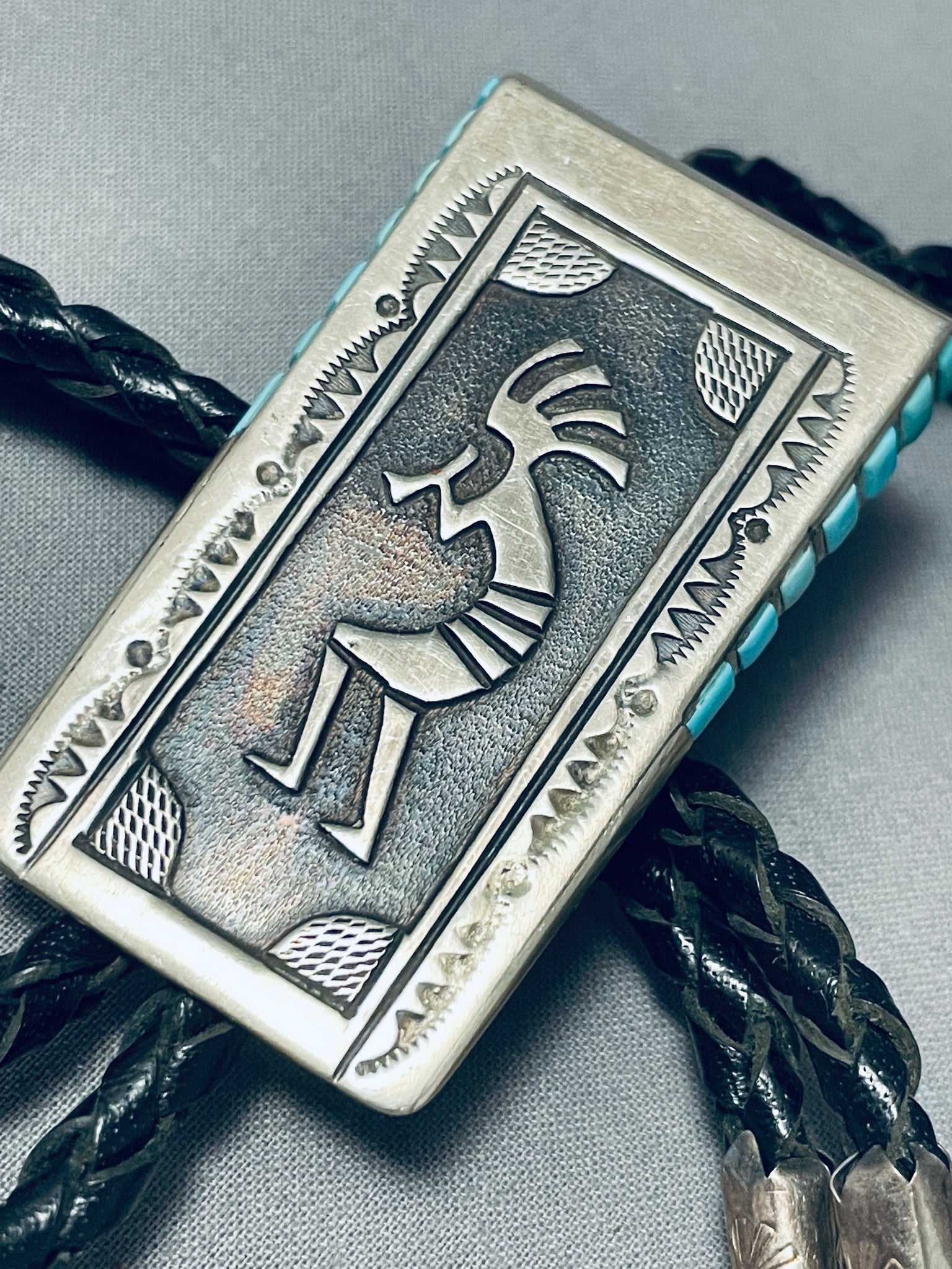 Rare Kokopelli Side Inlay Vintage Native American Navajo Turquois Esterling Silver Bolo Tie