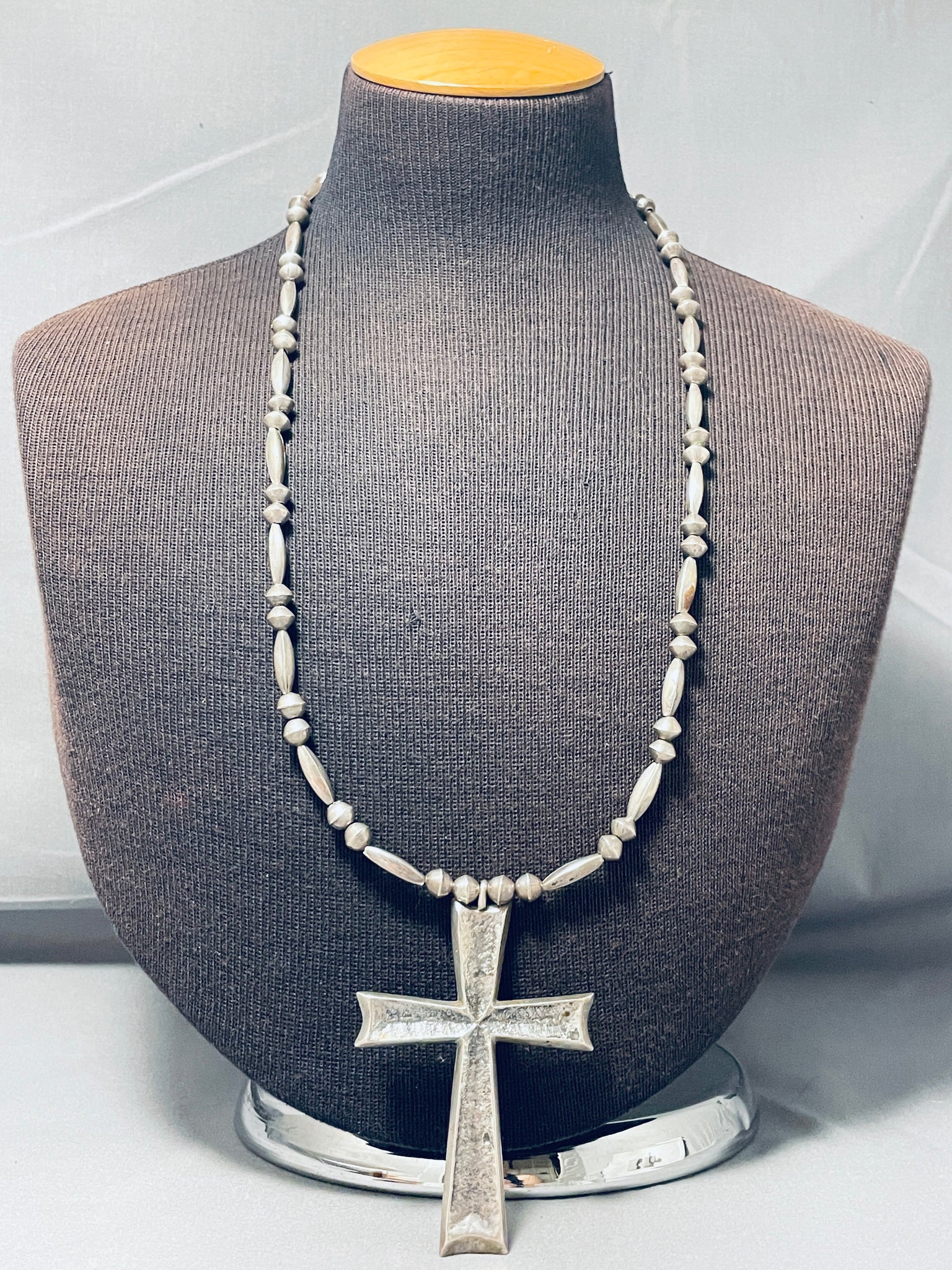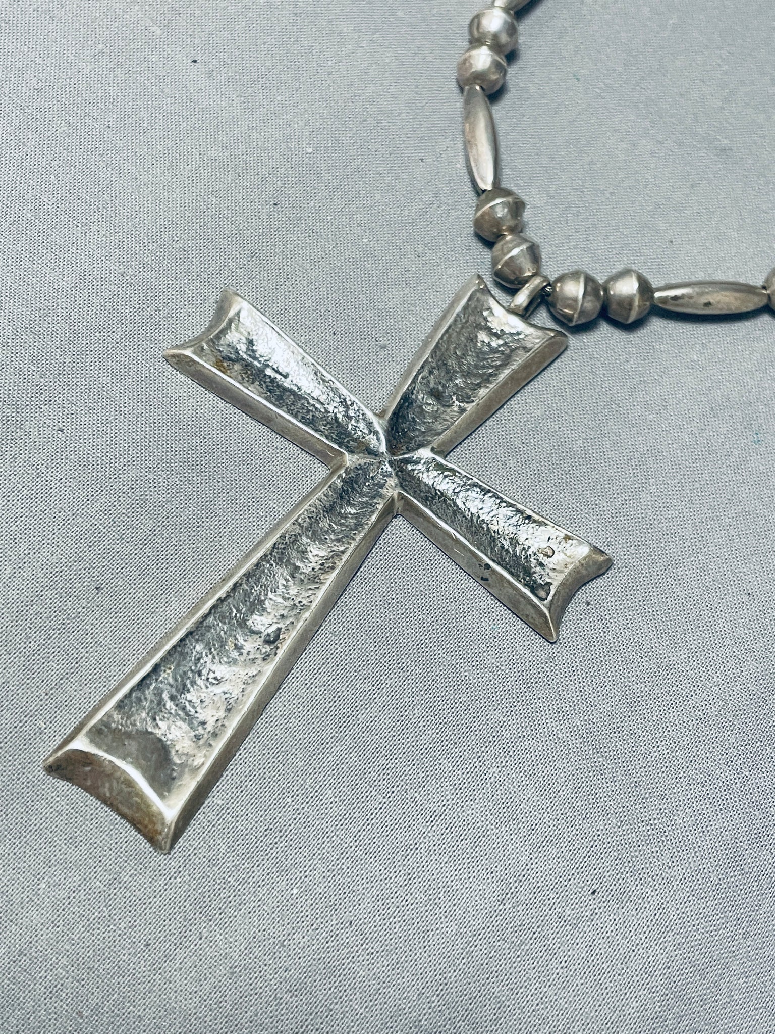 Rare Longer Authentic Vintage Native American Navajo Sterling Silver Cross Necklace