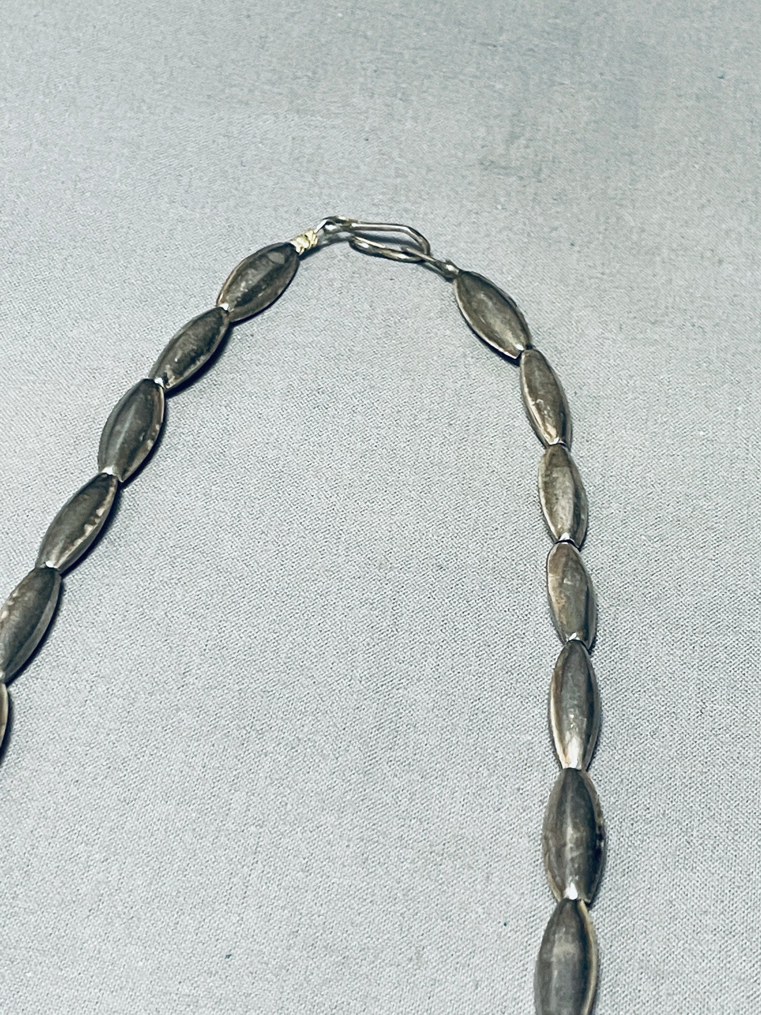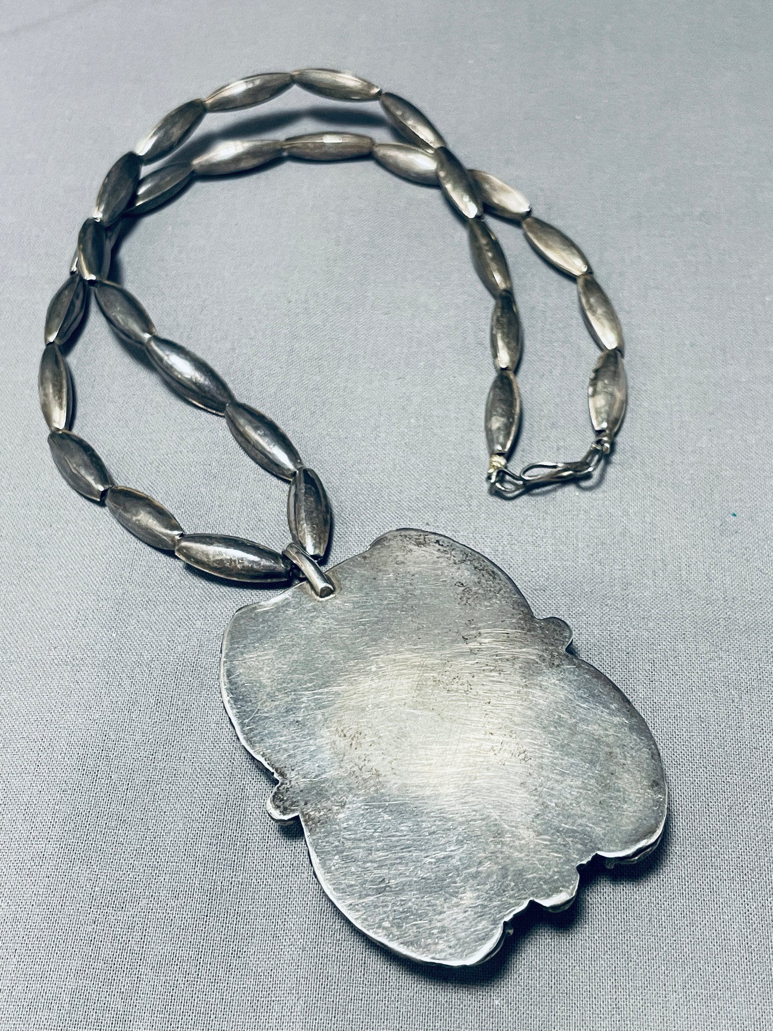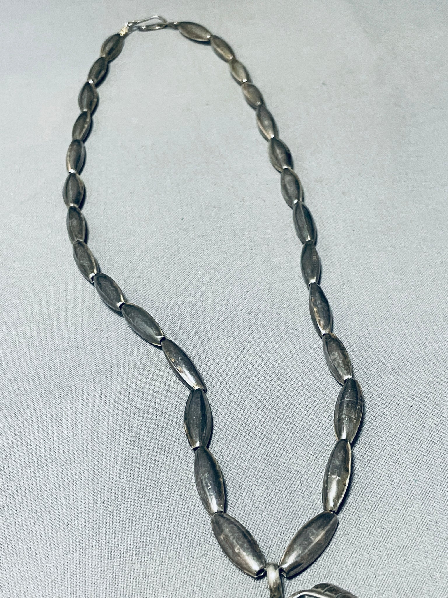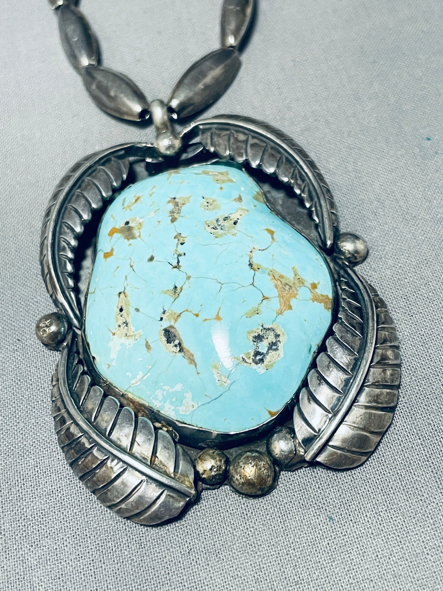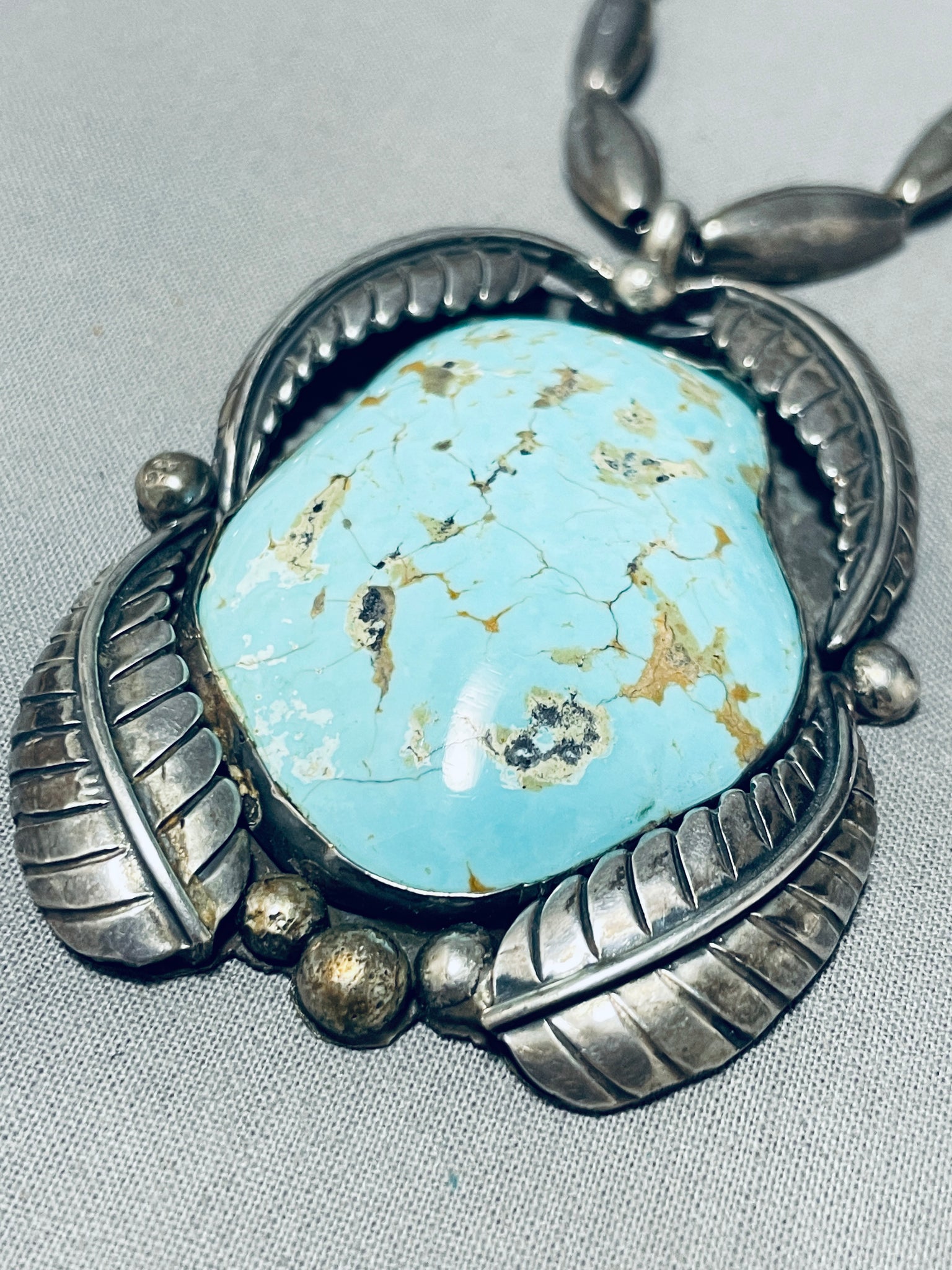 Rare Longer Vintage Native American Navajo #8 Turquoise Sterling Silver Leaf Necklace
