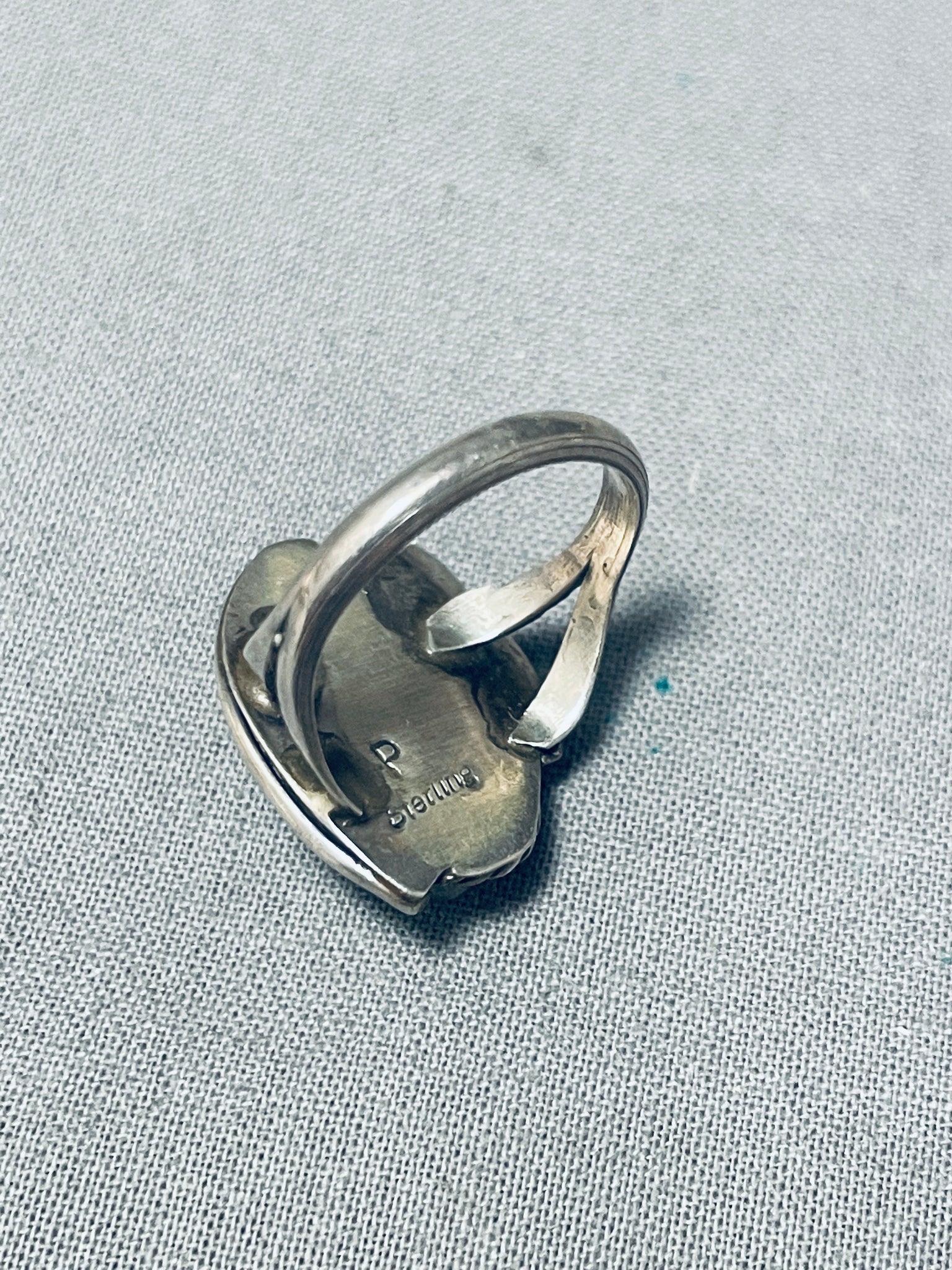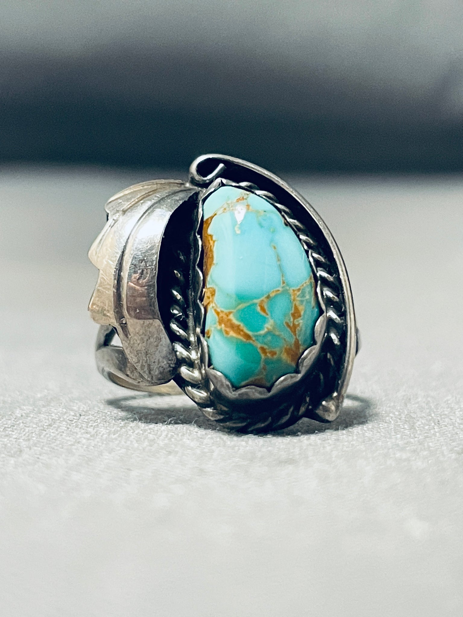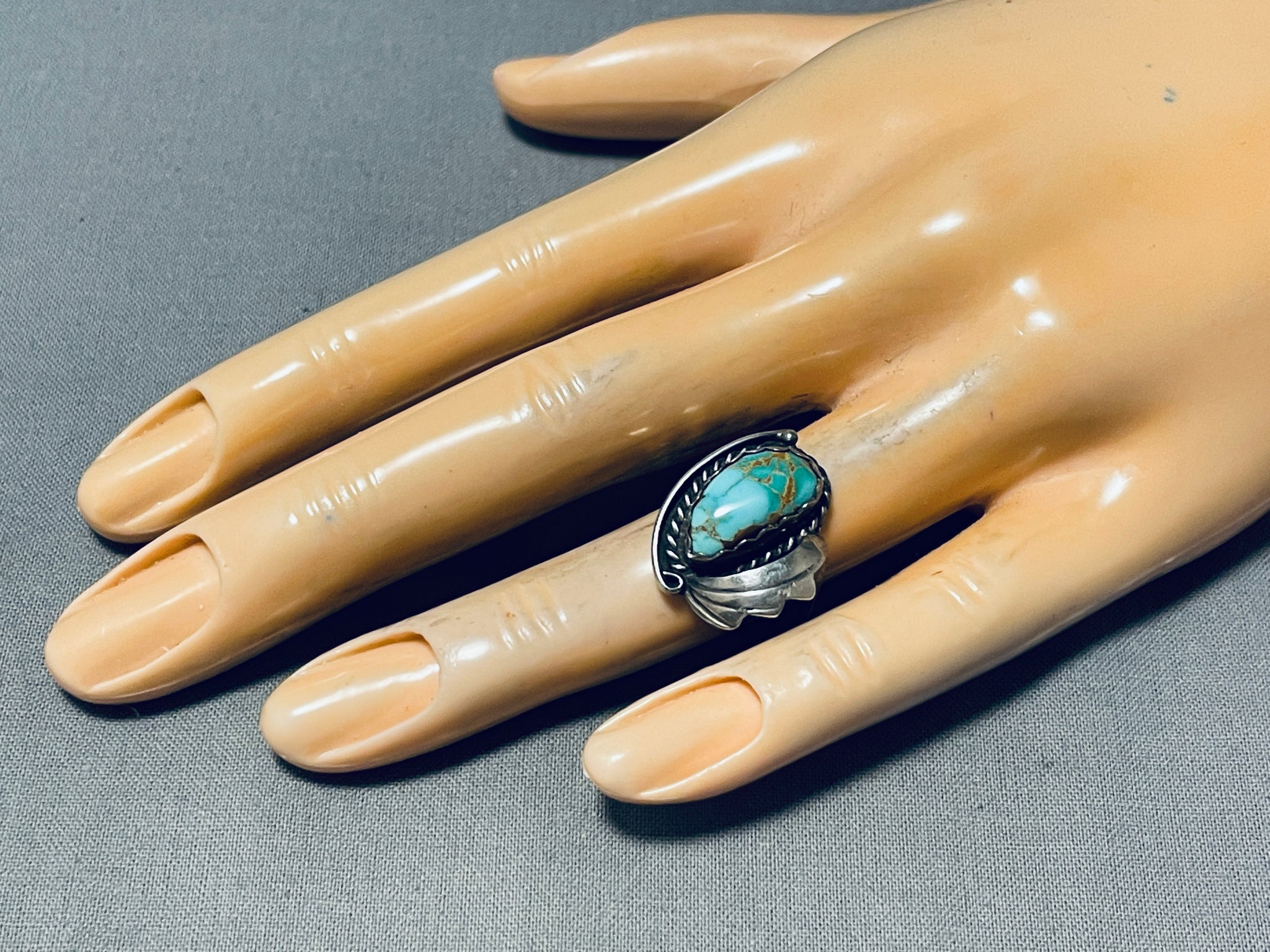 Rare Old Turquoise Vintage Native American Navajo Royston Sterling Silver Leaf Ring