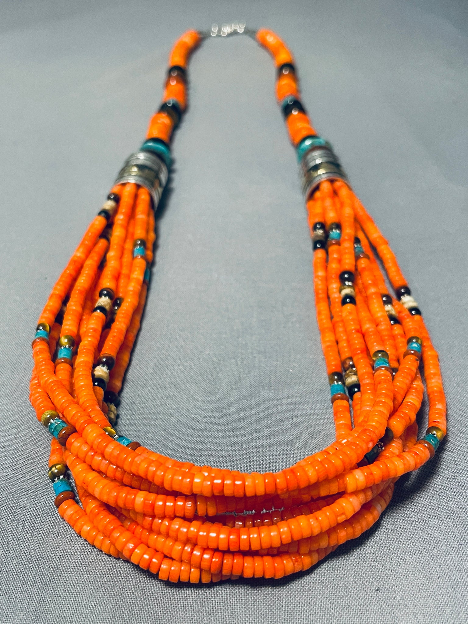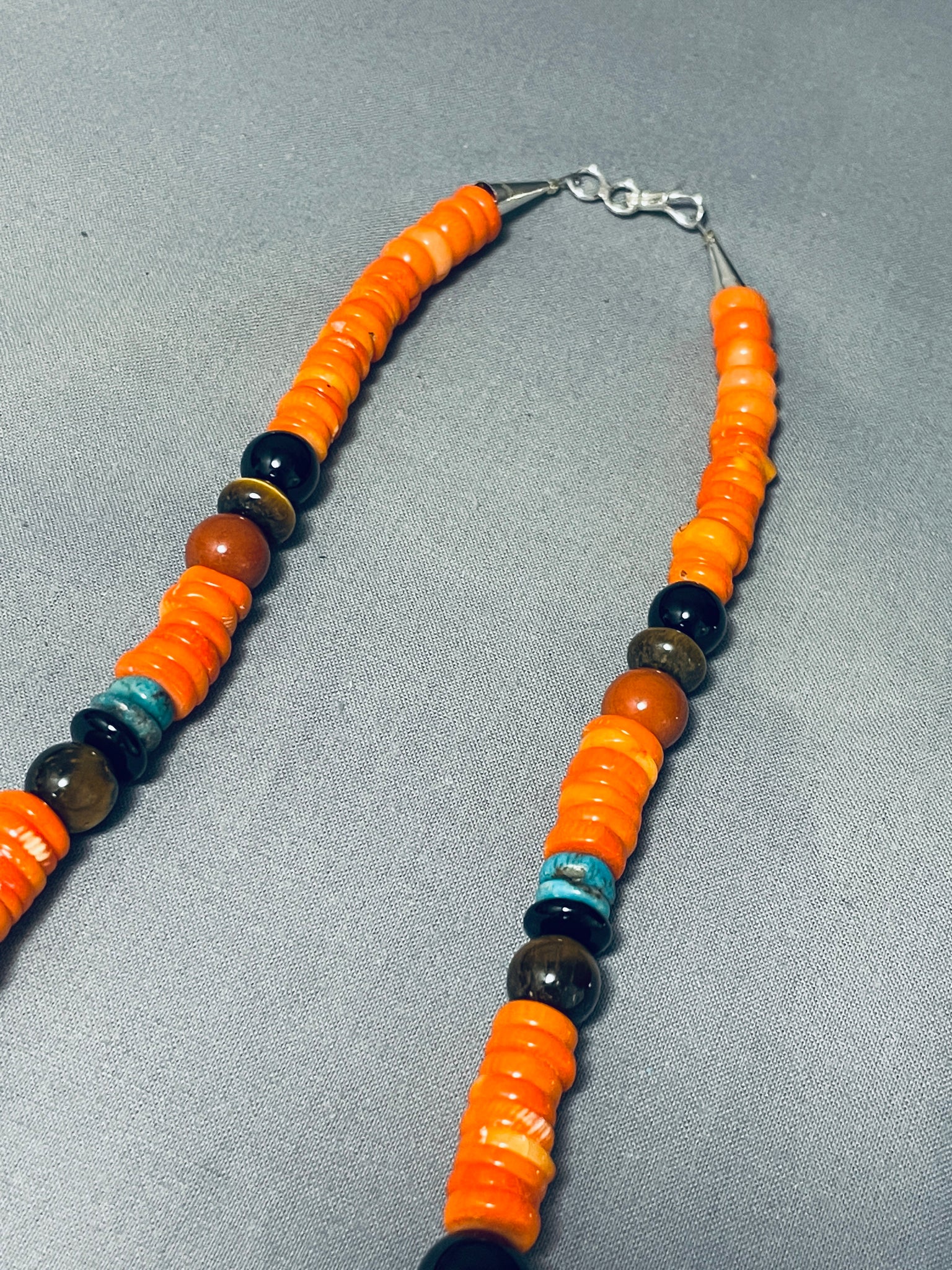 Rare Orange Coral Authentic Singer Native American Navajo Sterling Silver Necklace