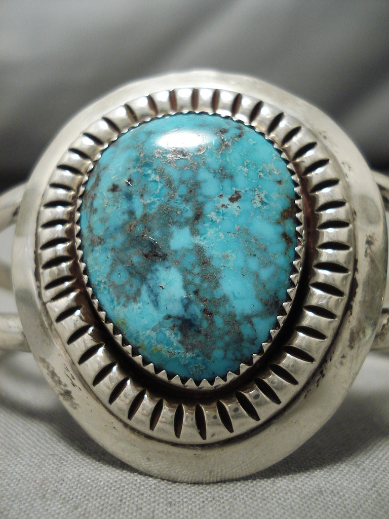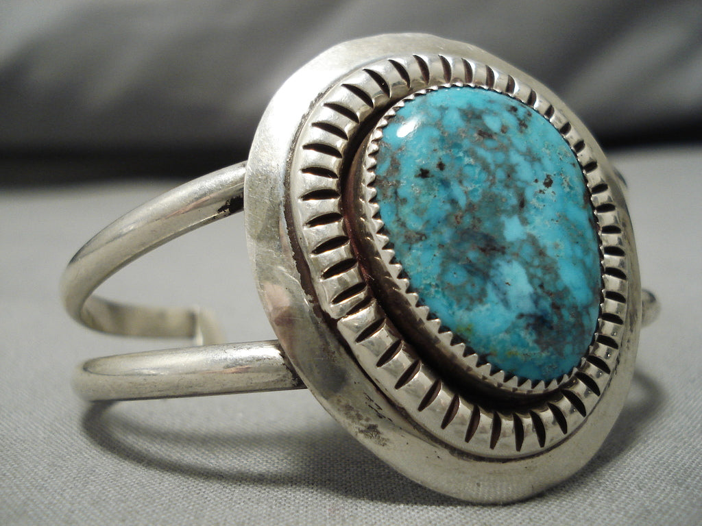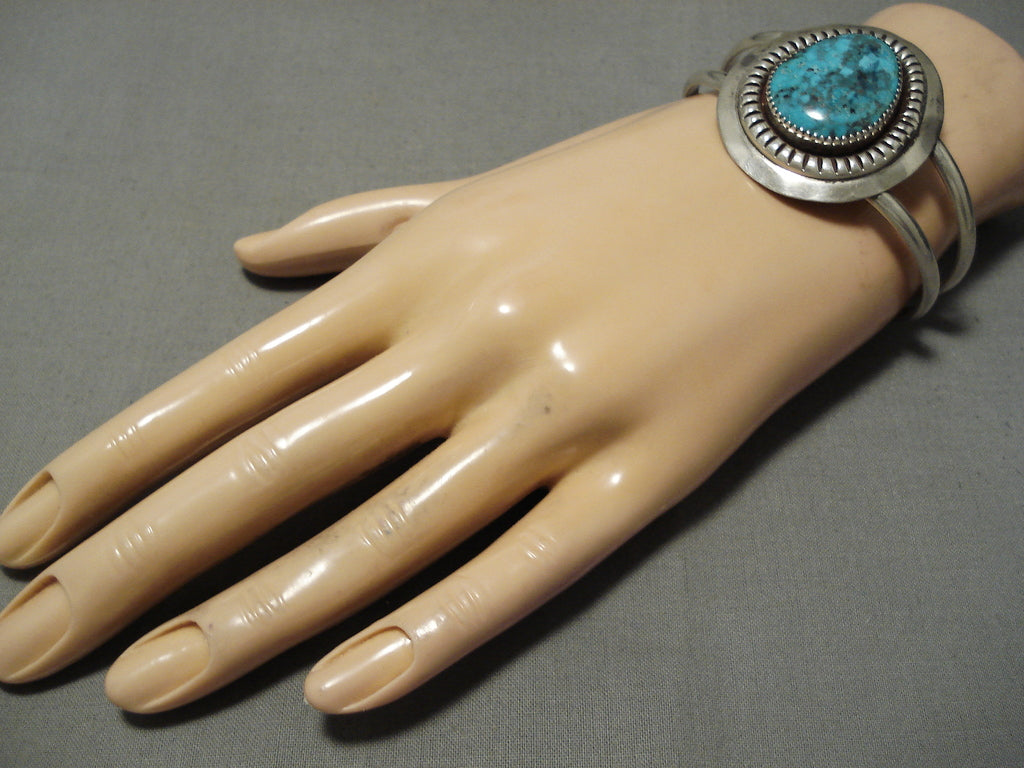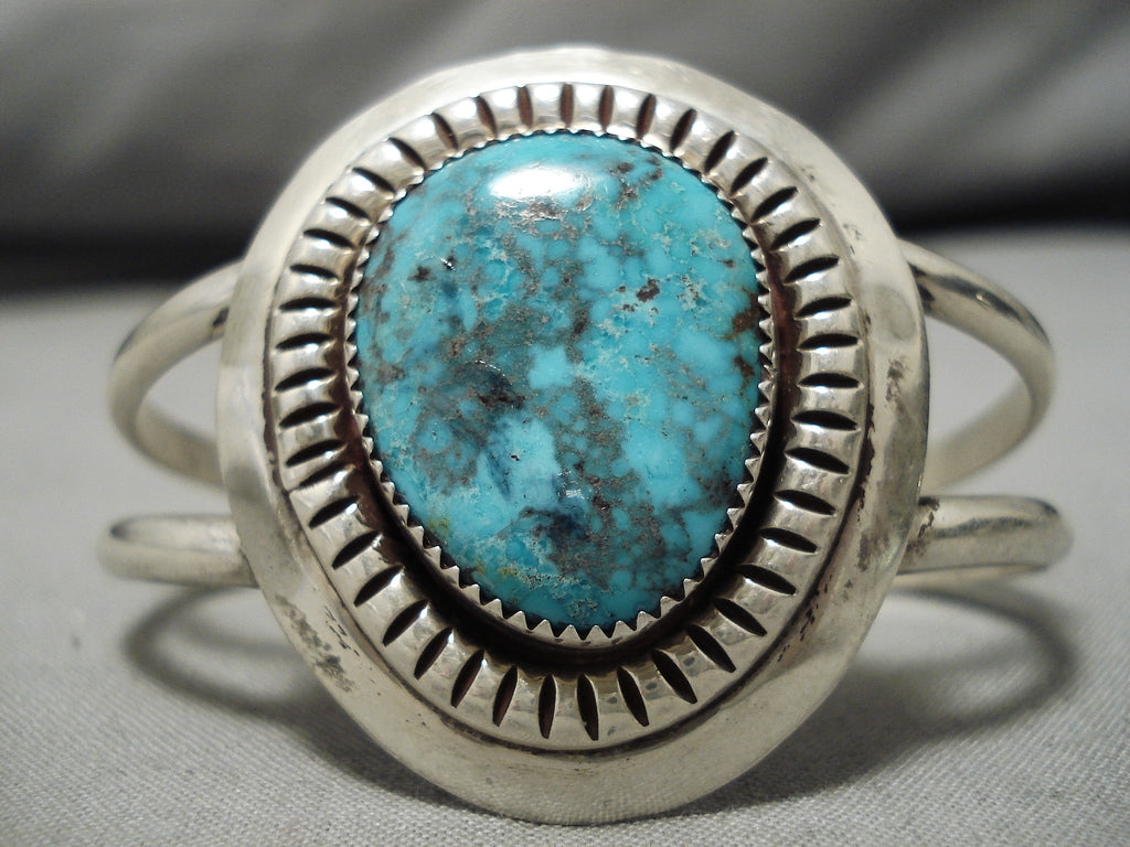 Rare Pilot Mountain Turquoise Vintage Native American Navajo Sterling Silver Bracelet Old