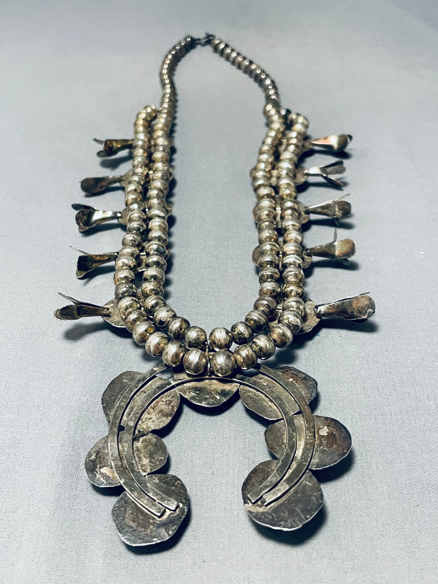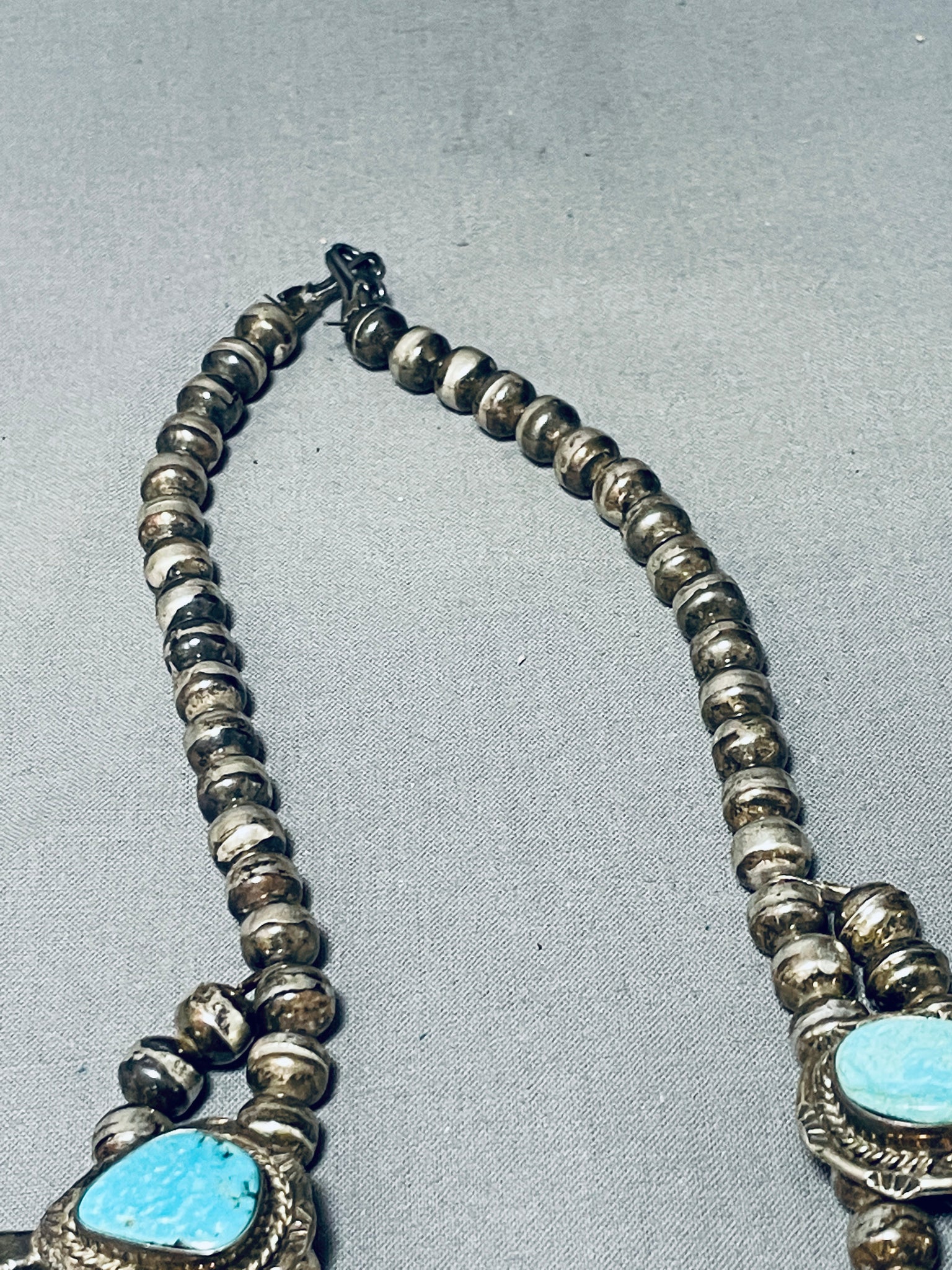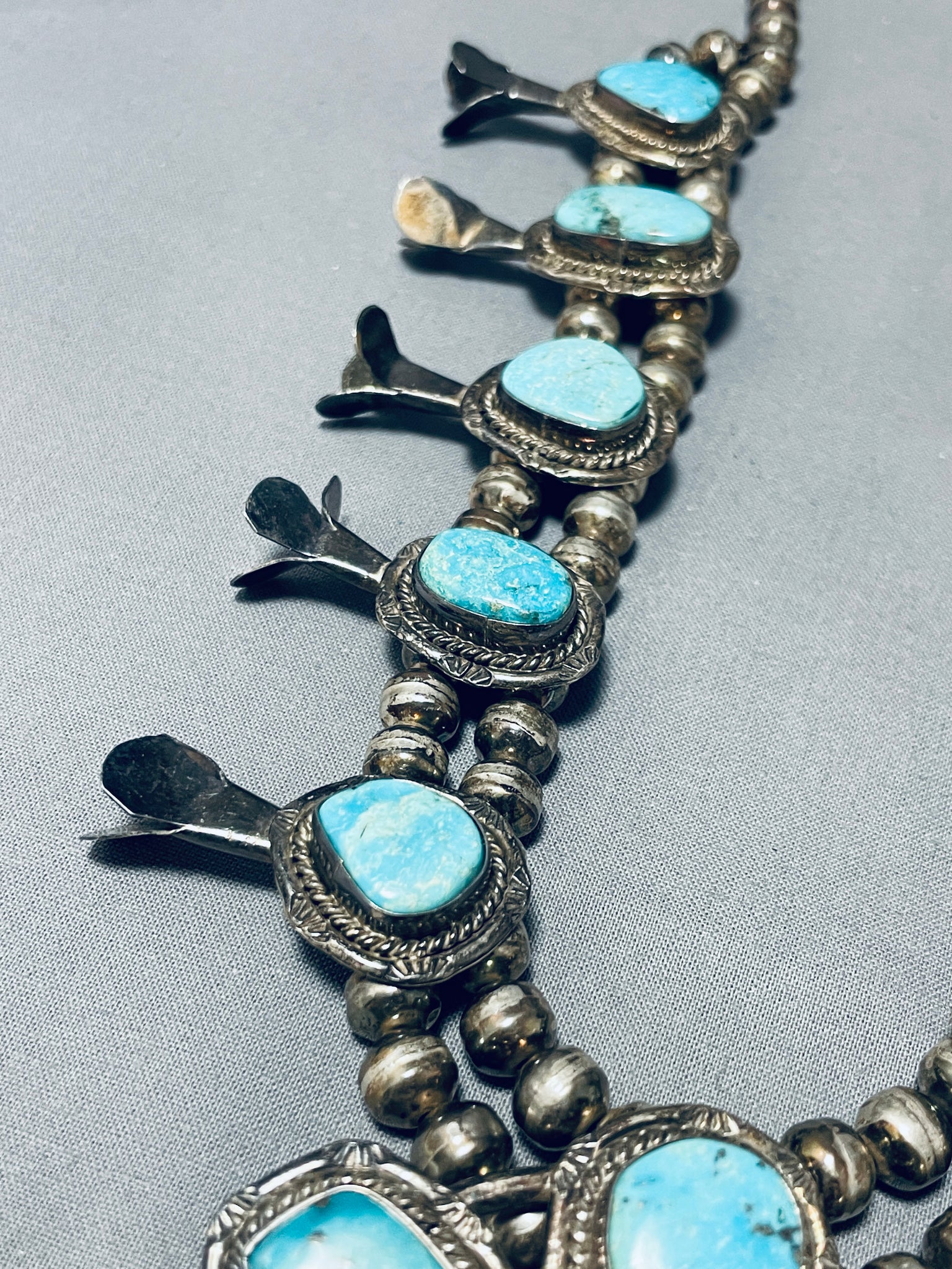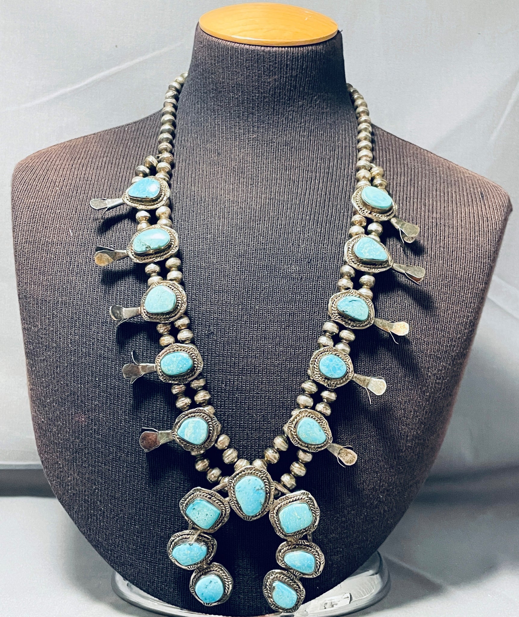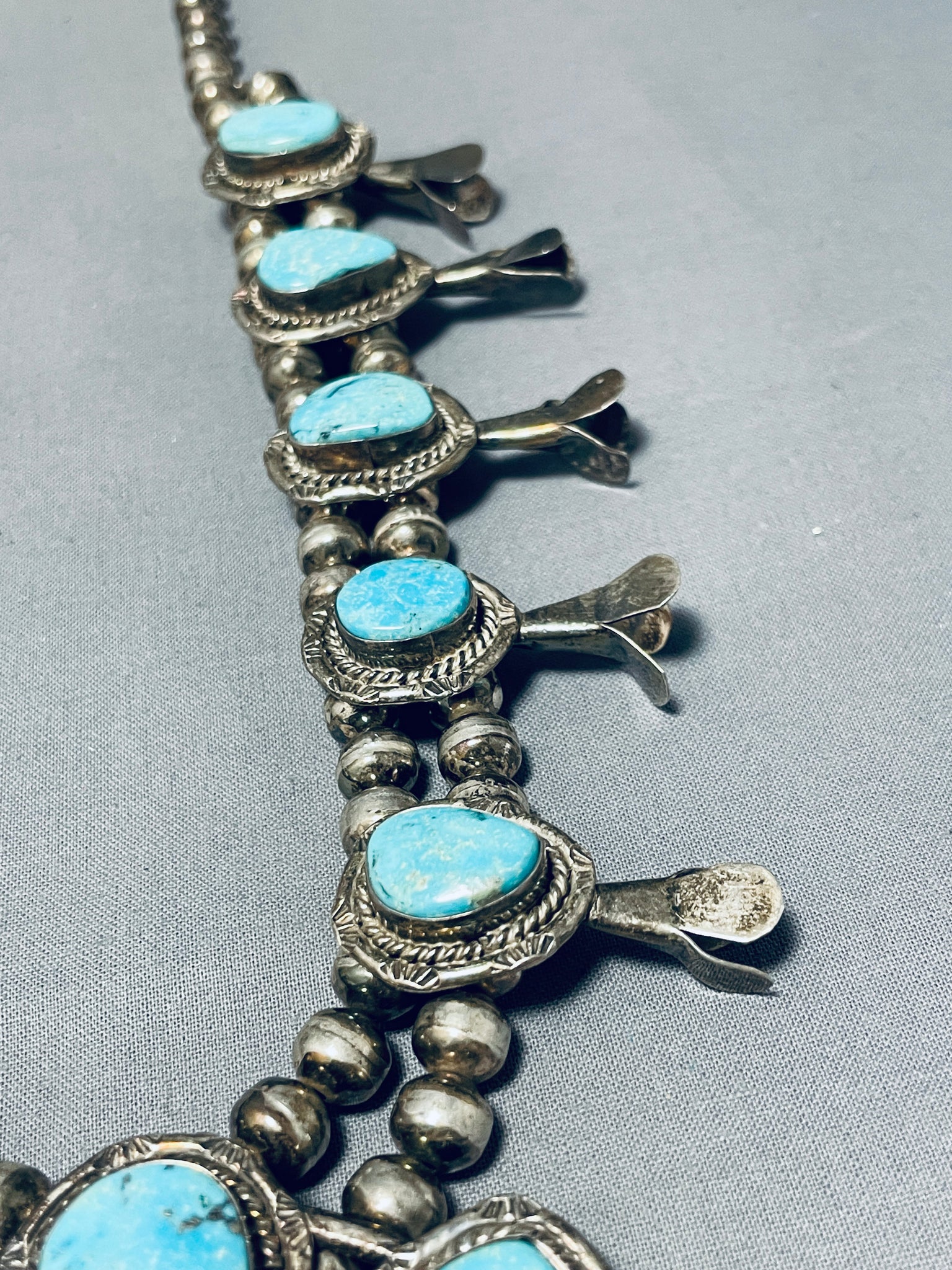 Rare Robins Egg Turquoise Vintage Native American Navajo Sterling Silve Squash Blossom Necklace