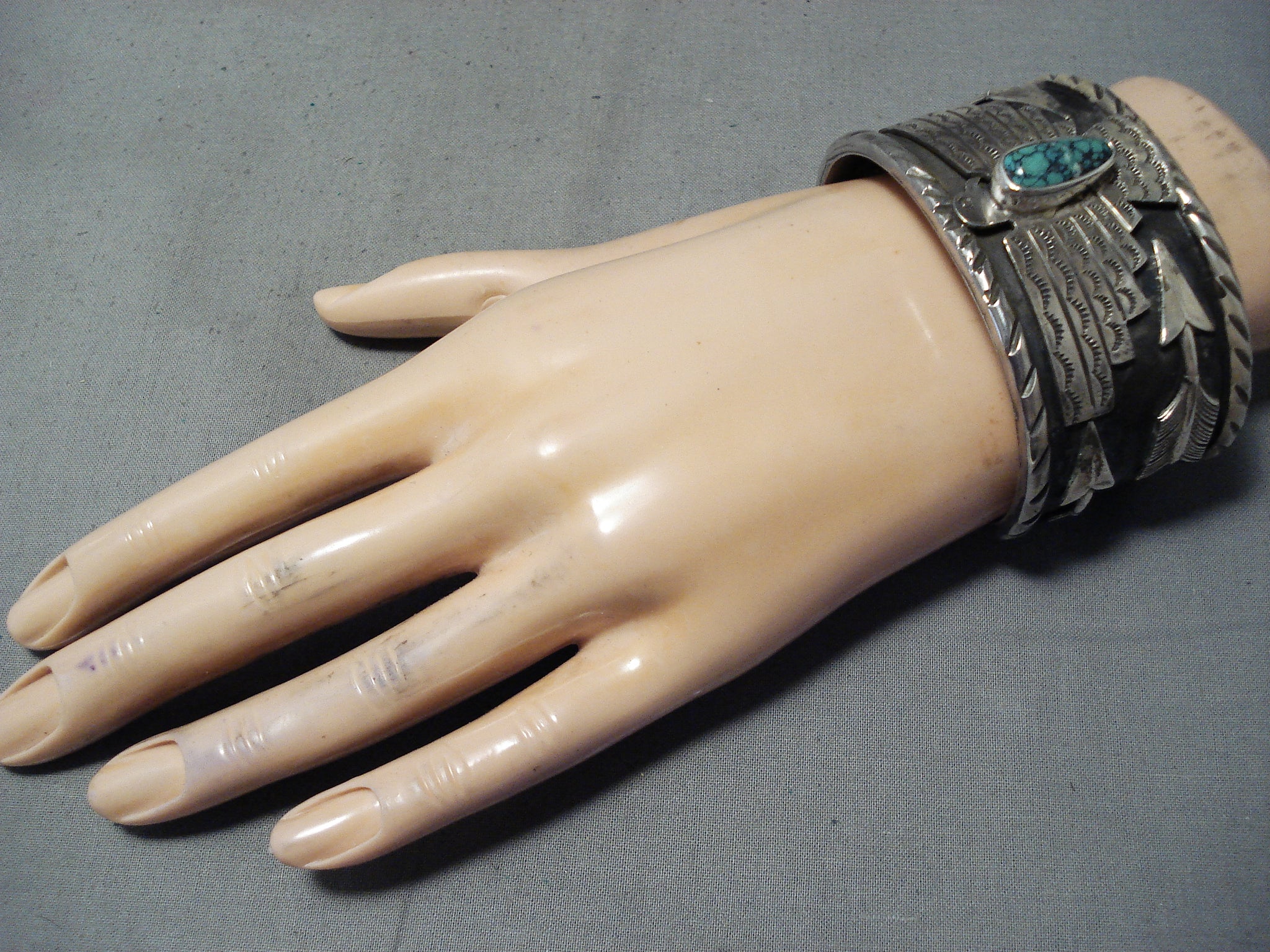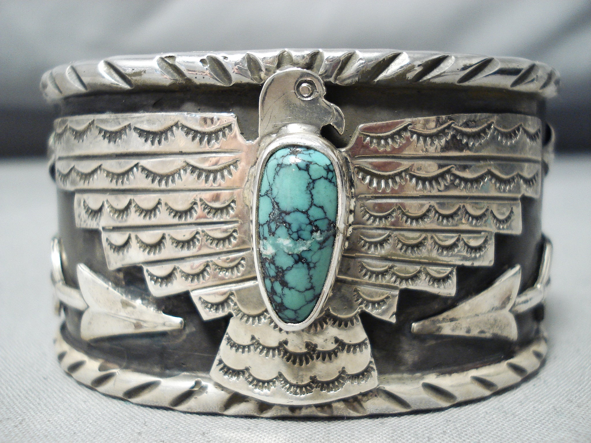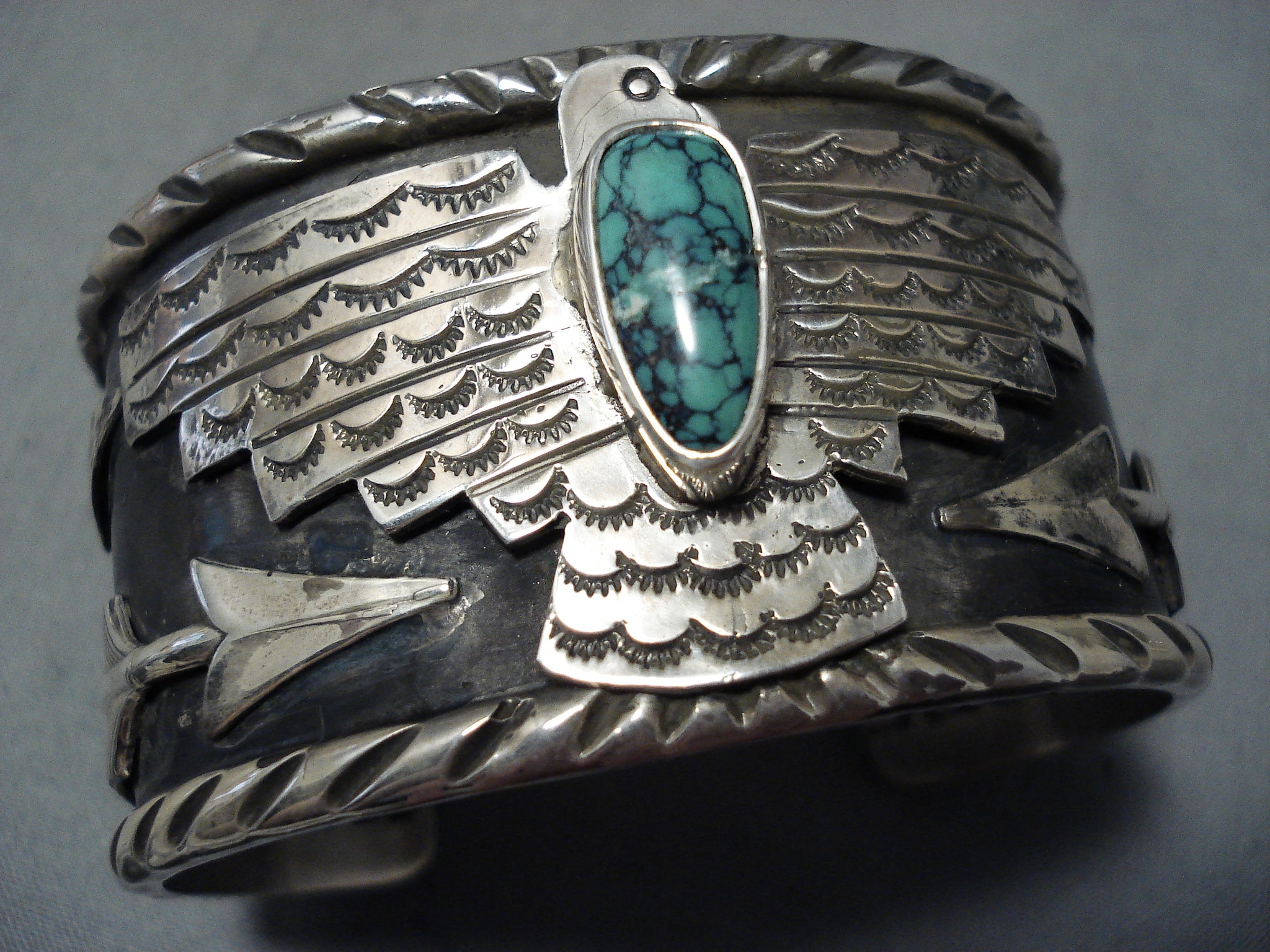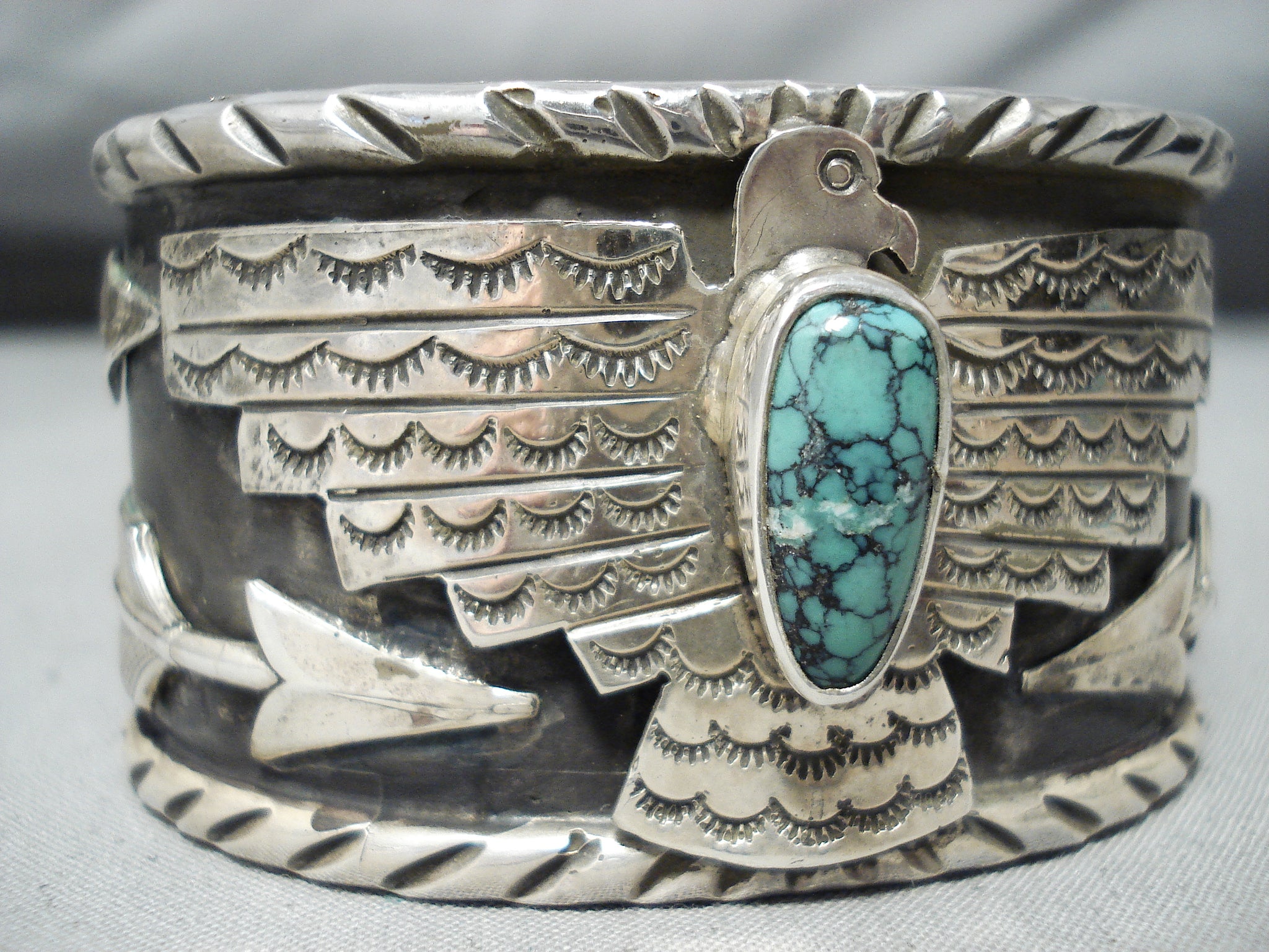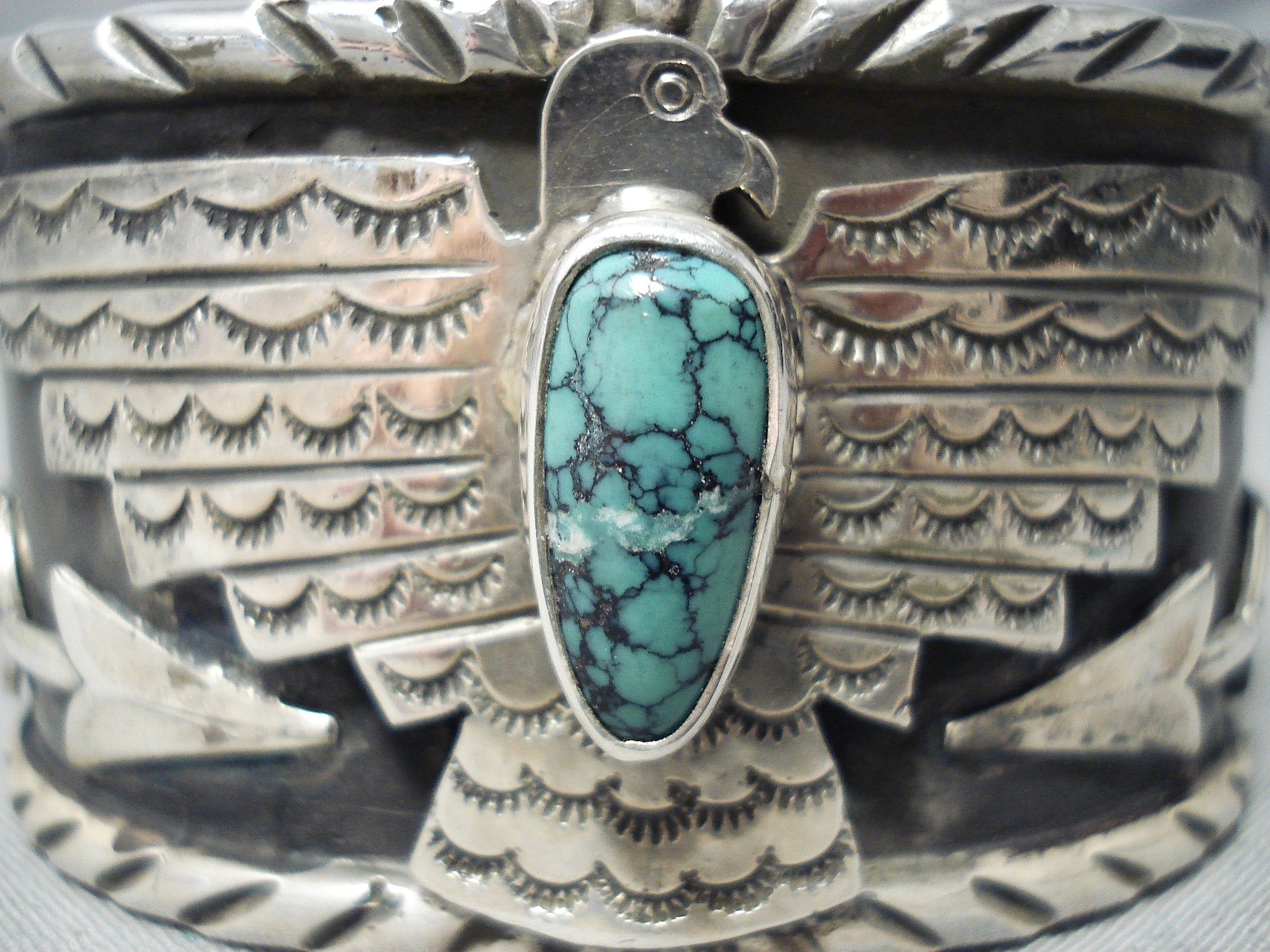 Rare San Felipe Spiderweb Turquoise Sterling Silver Eagle Bracelet