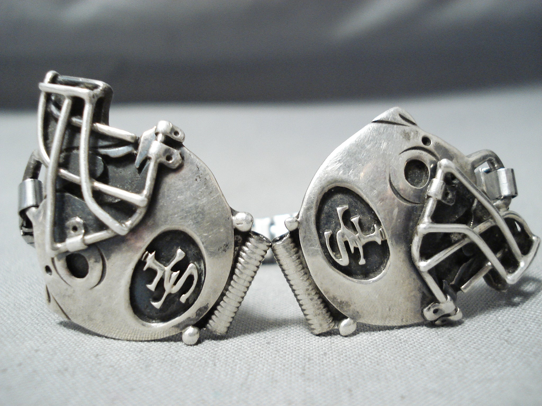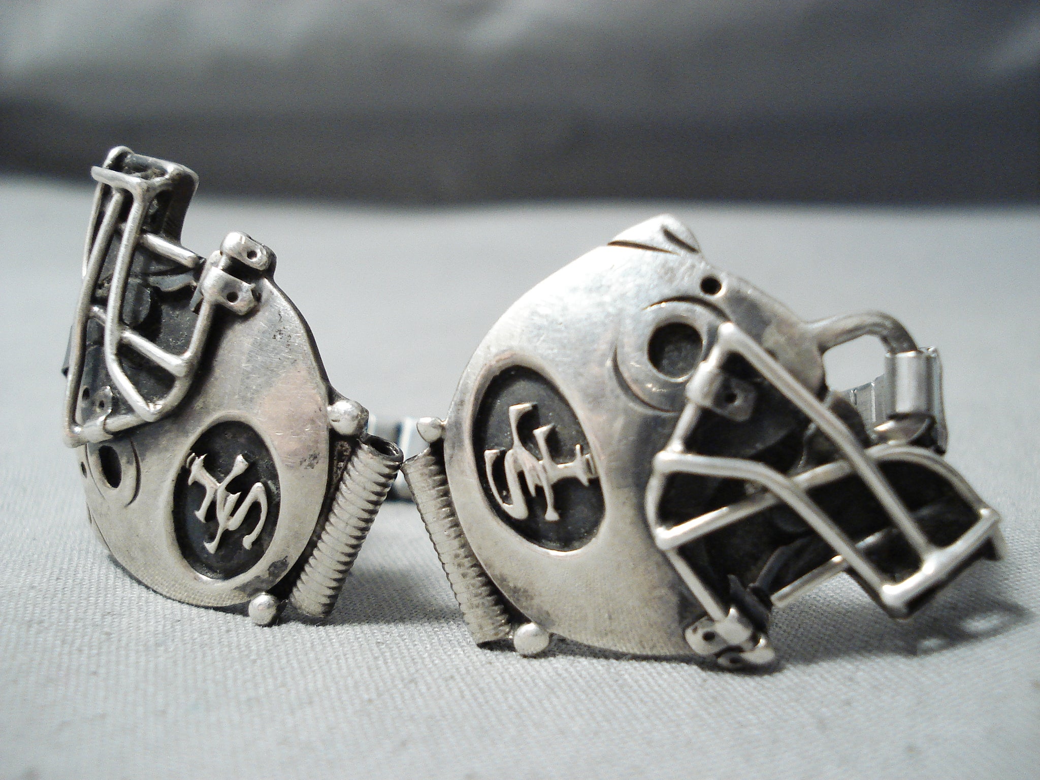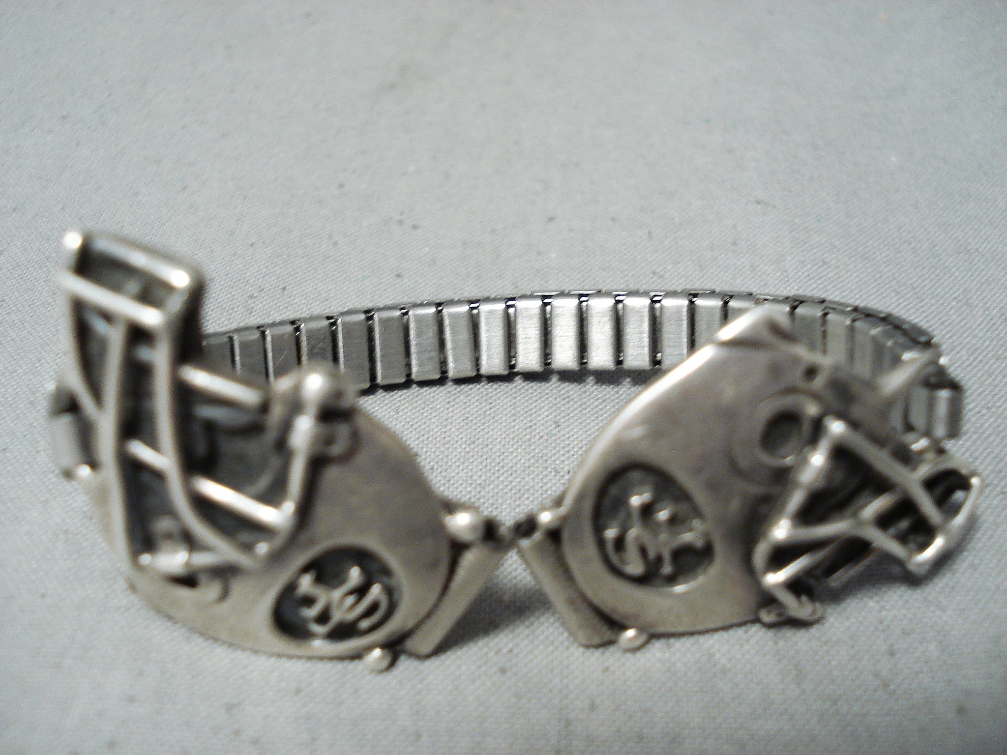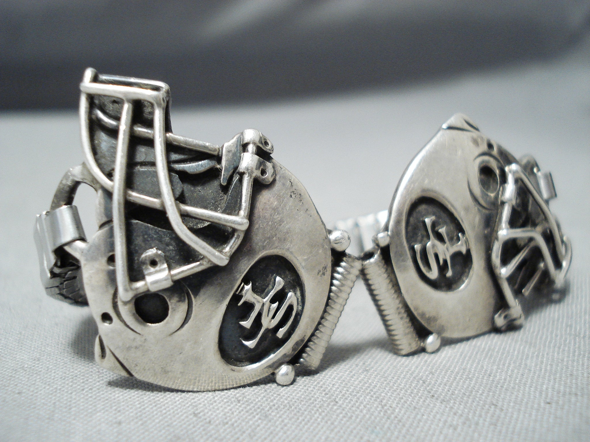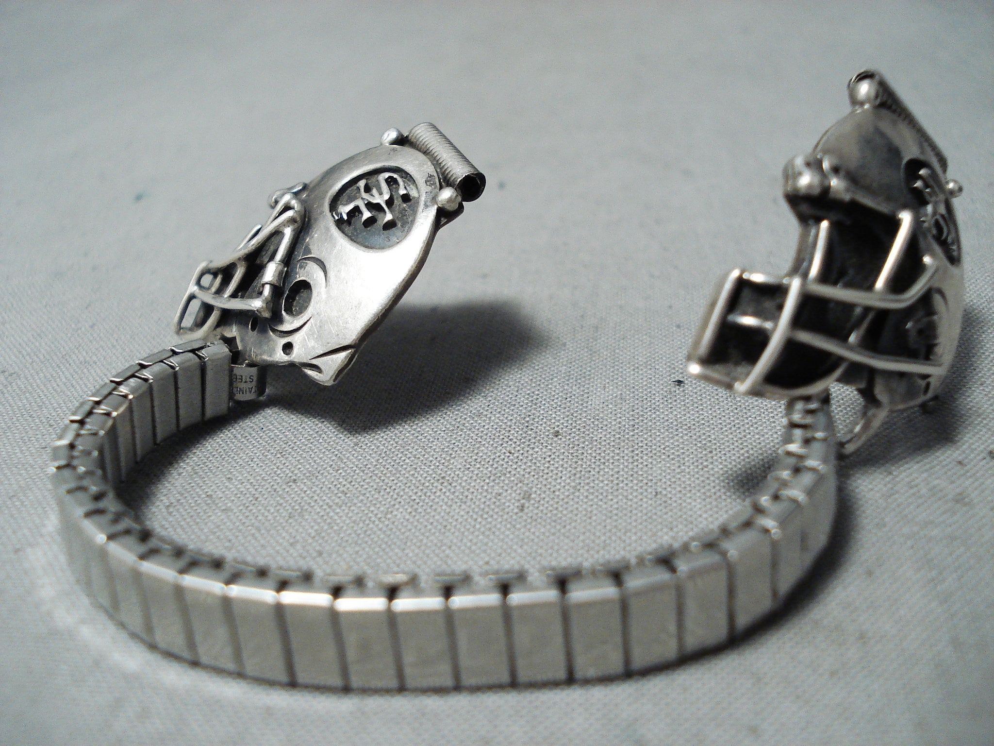 Rare San Francisco Vintage Native American Navajo Sterling Silver Football Watch Bracelet