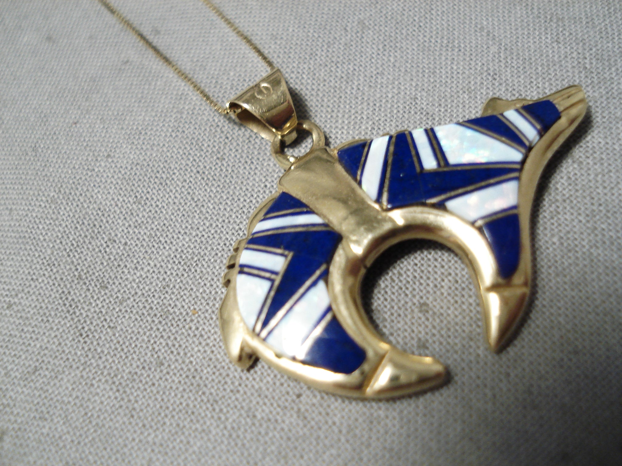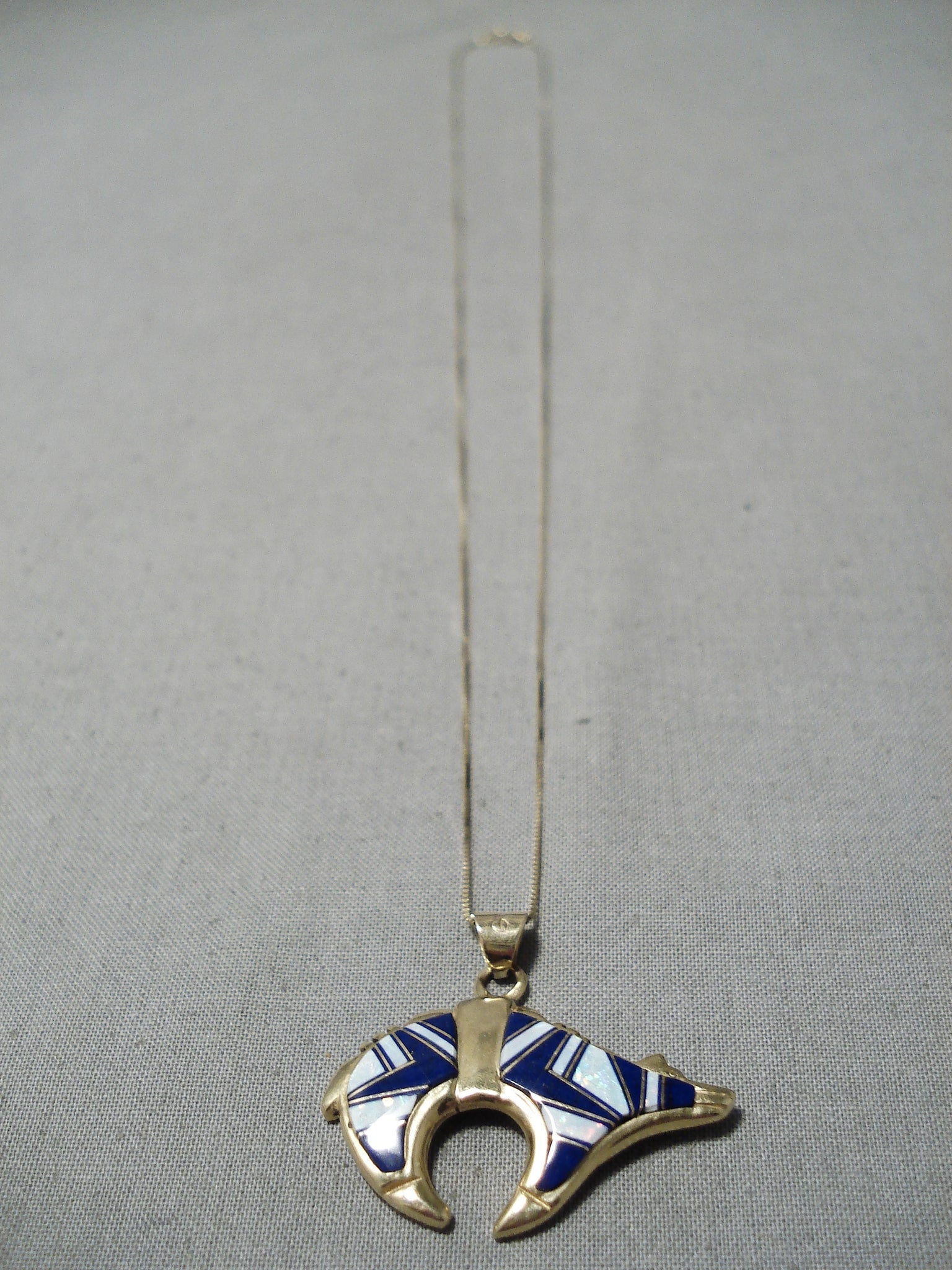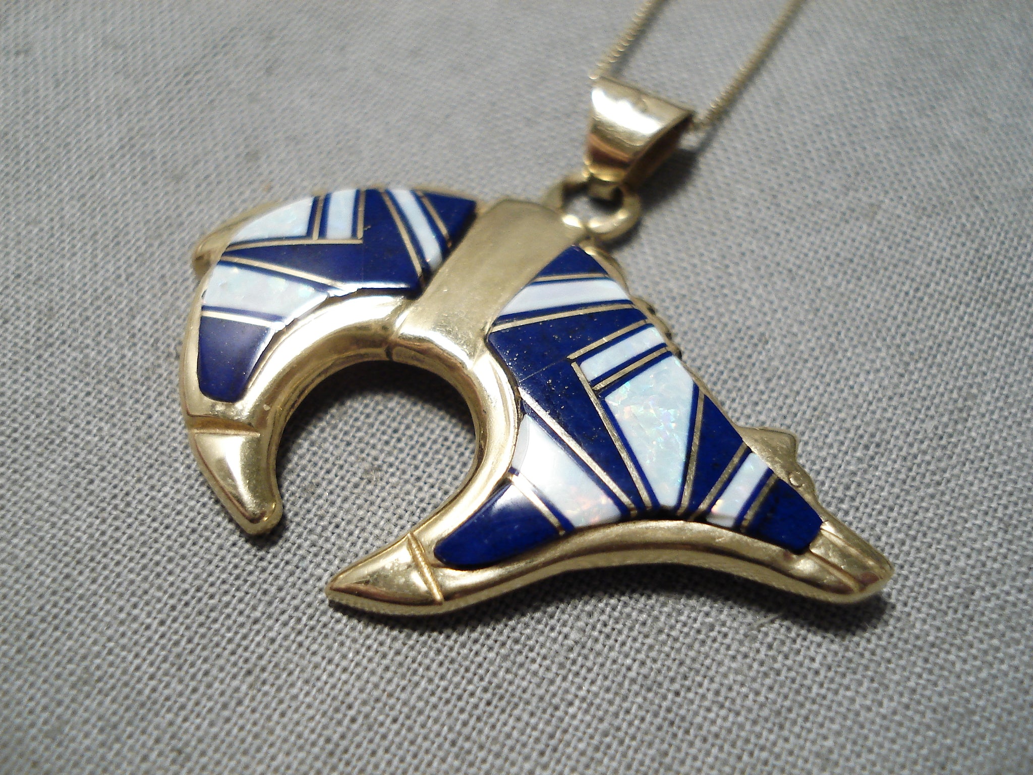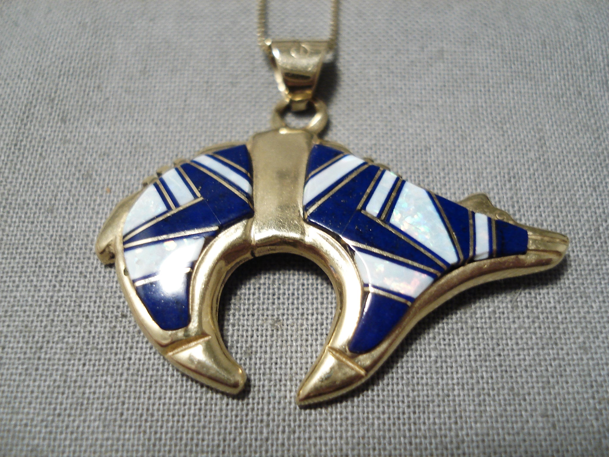 Rare Solid 14k Gold Vintage Navajo Lapis Opal Native American Necklace