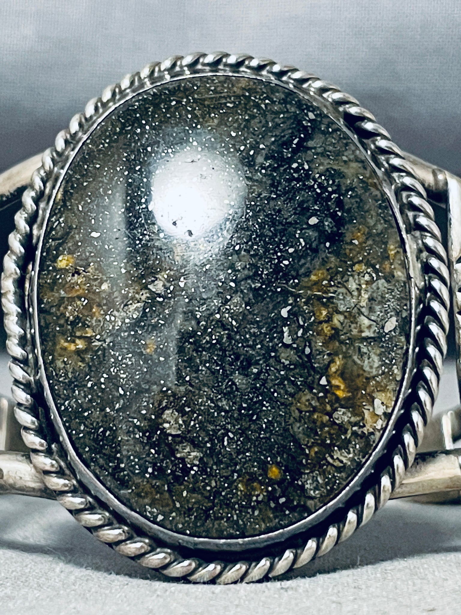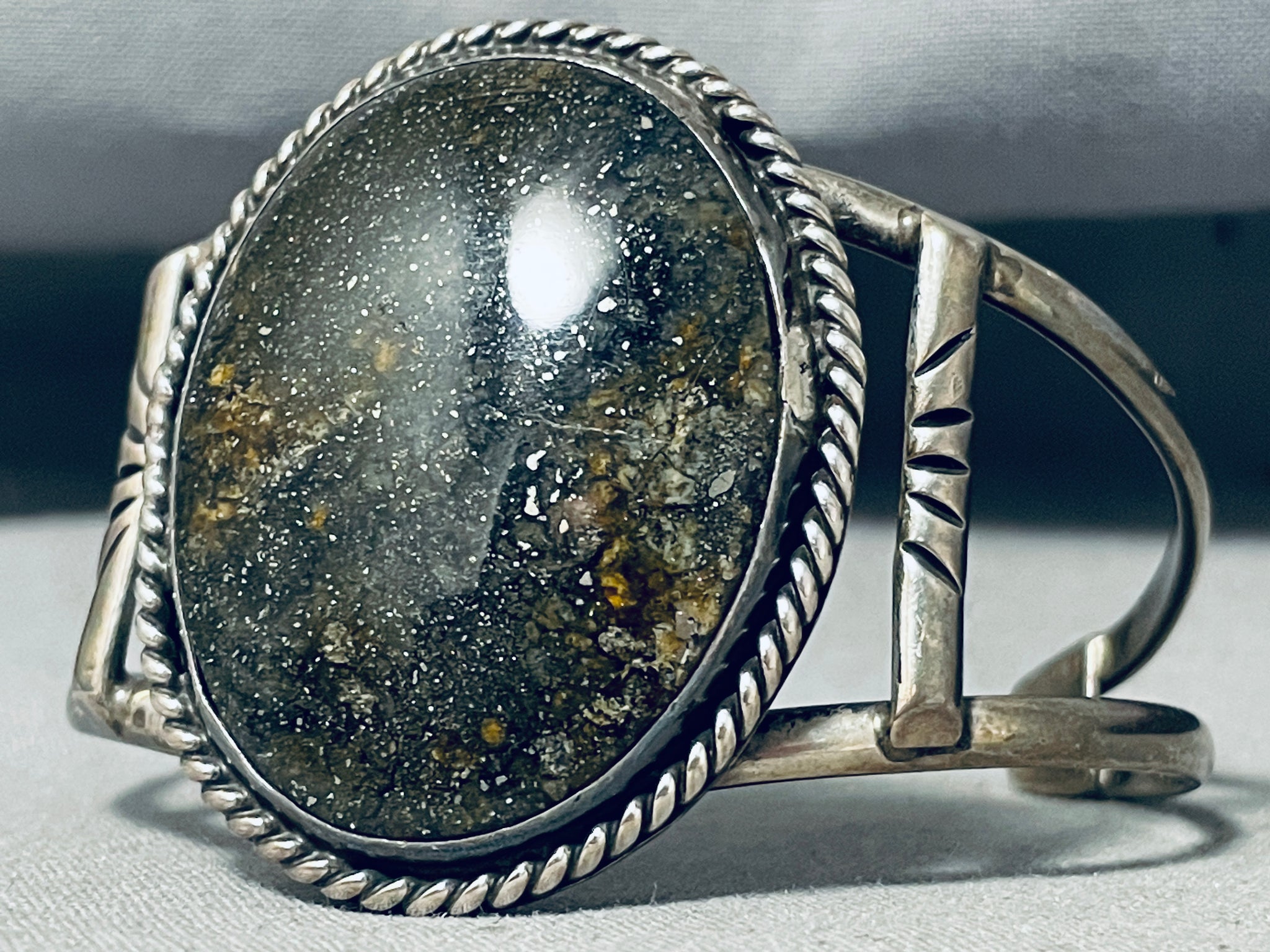 Rare Stars Of The Sky Stone Vintage Native American Navajo Sterling Silver Bracelet