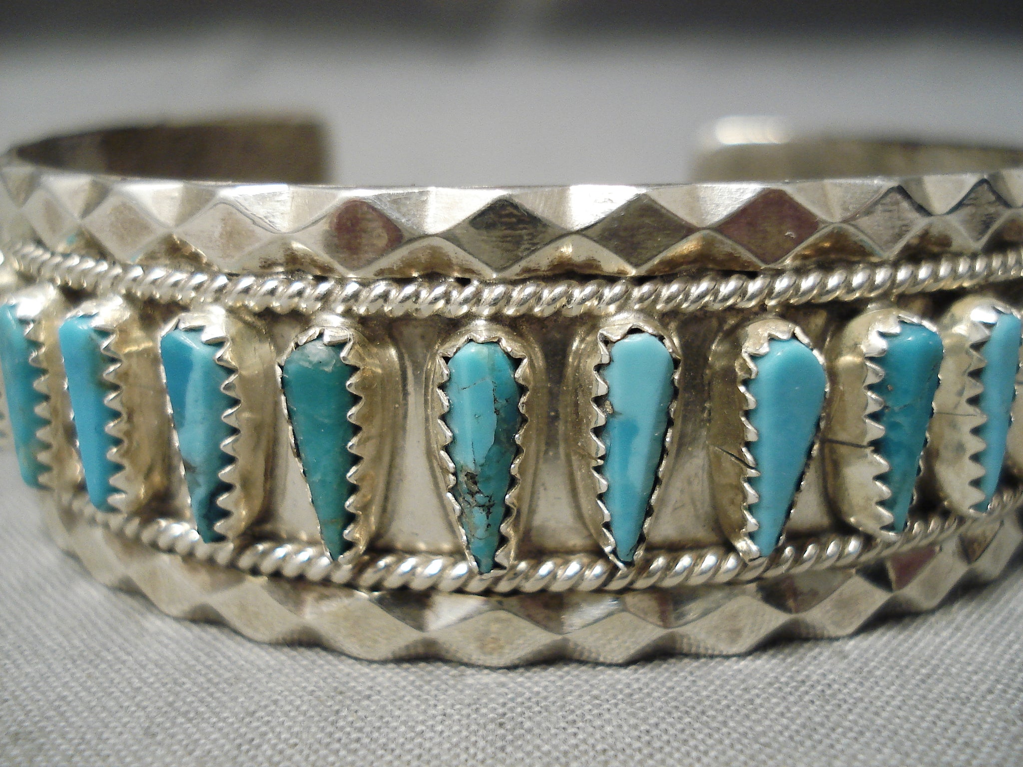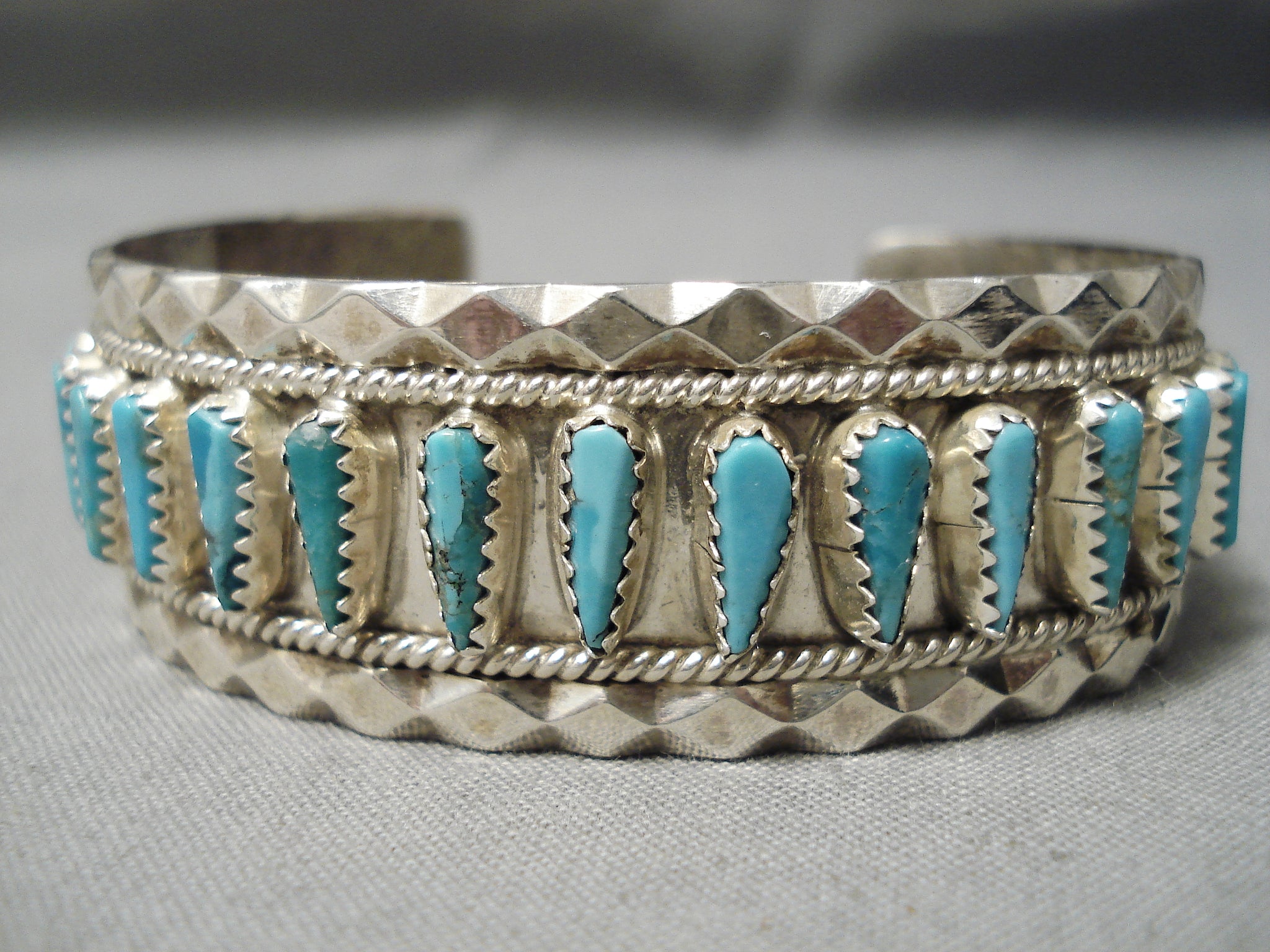 Rare Teardrop Blue Diamond Vintage Turquoise Sterling Silver Native American Navajo Bracelet