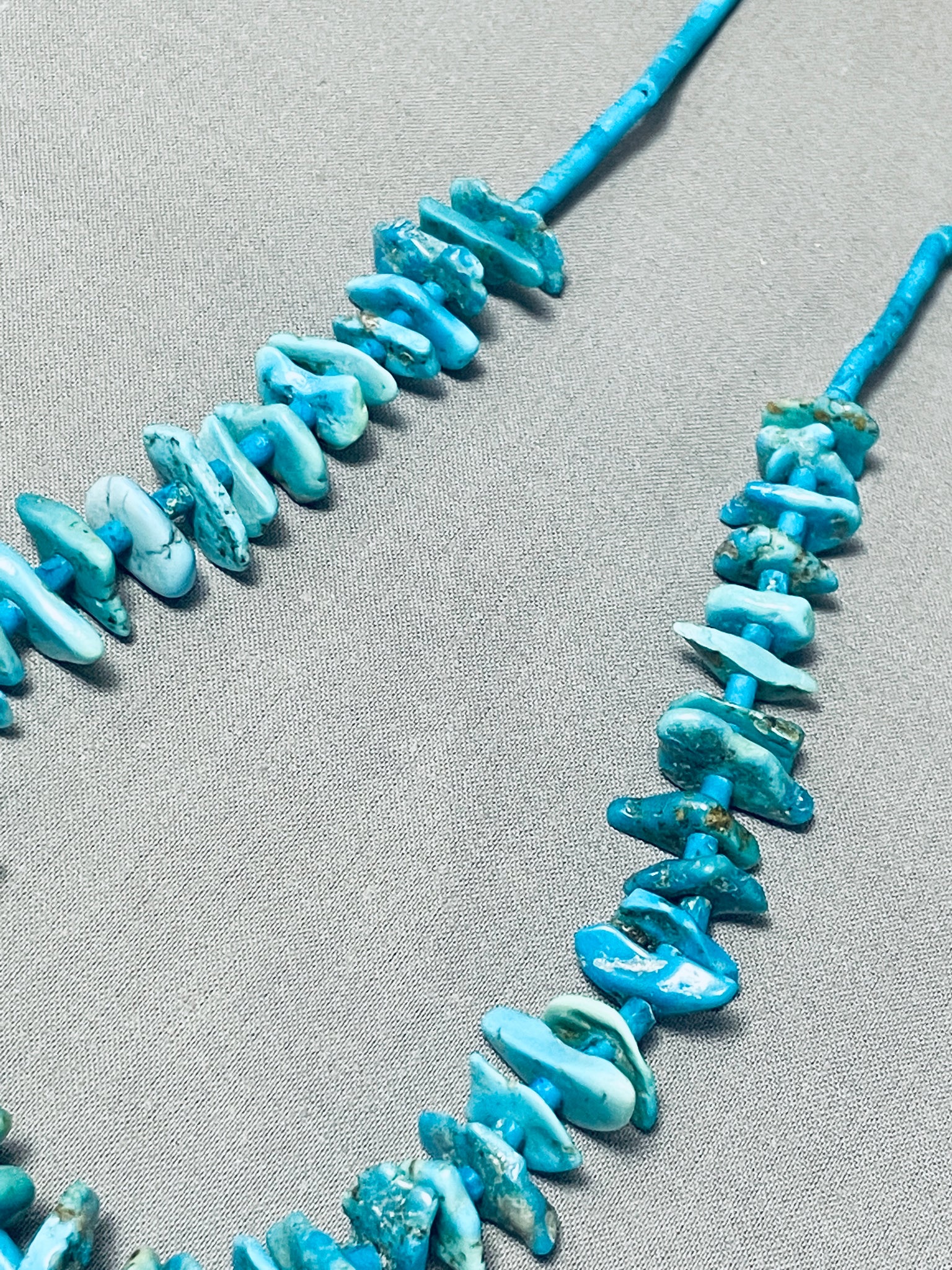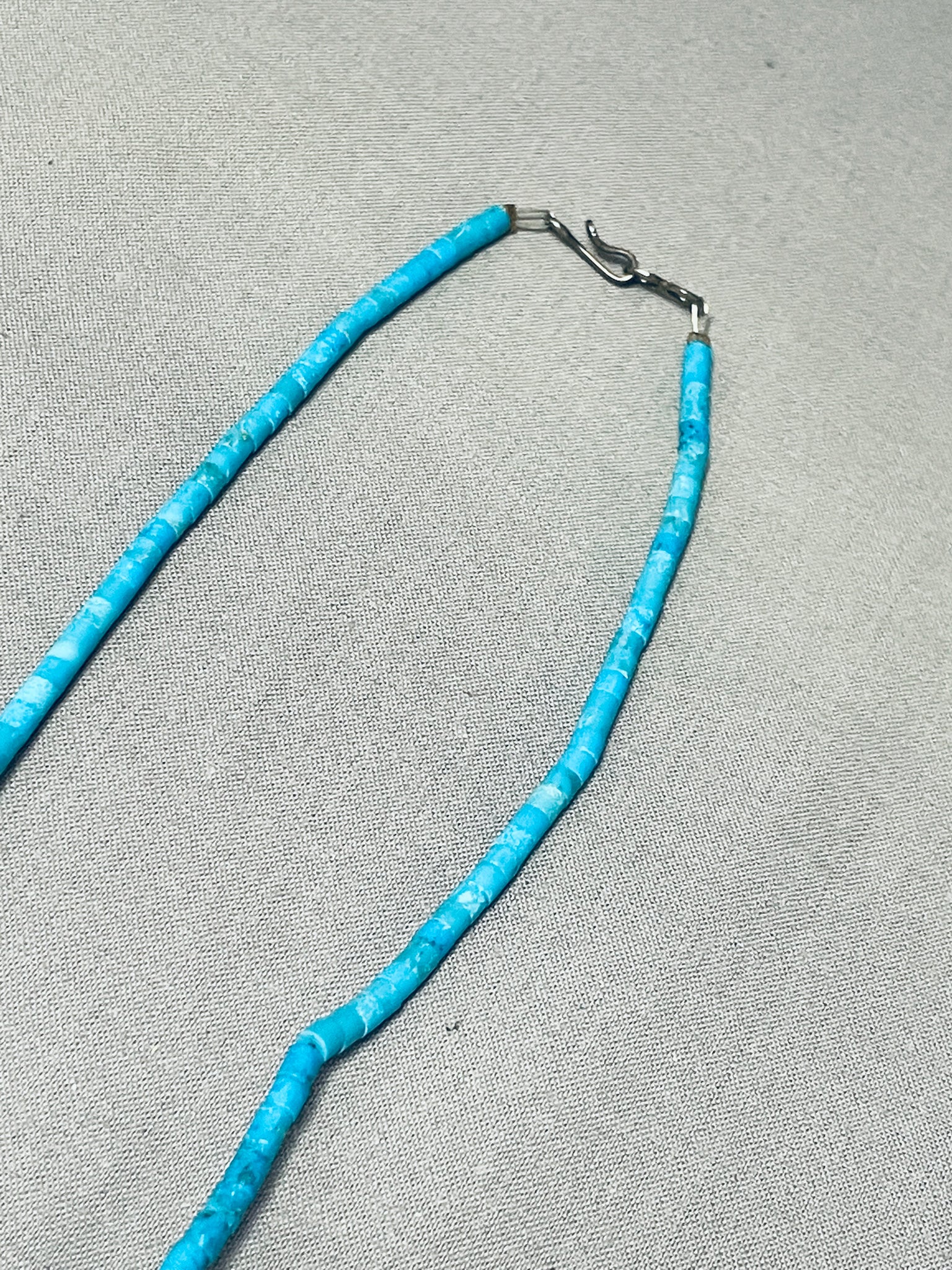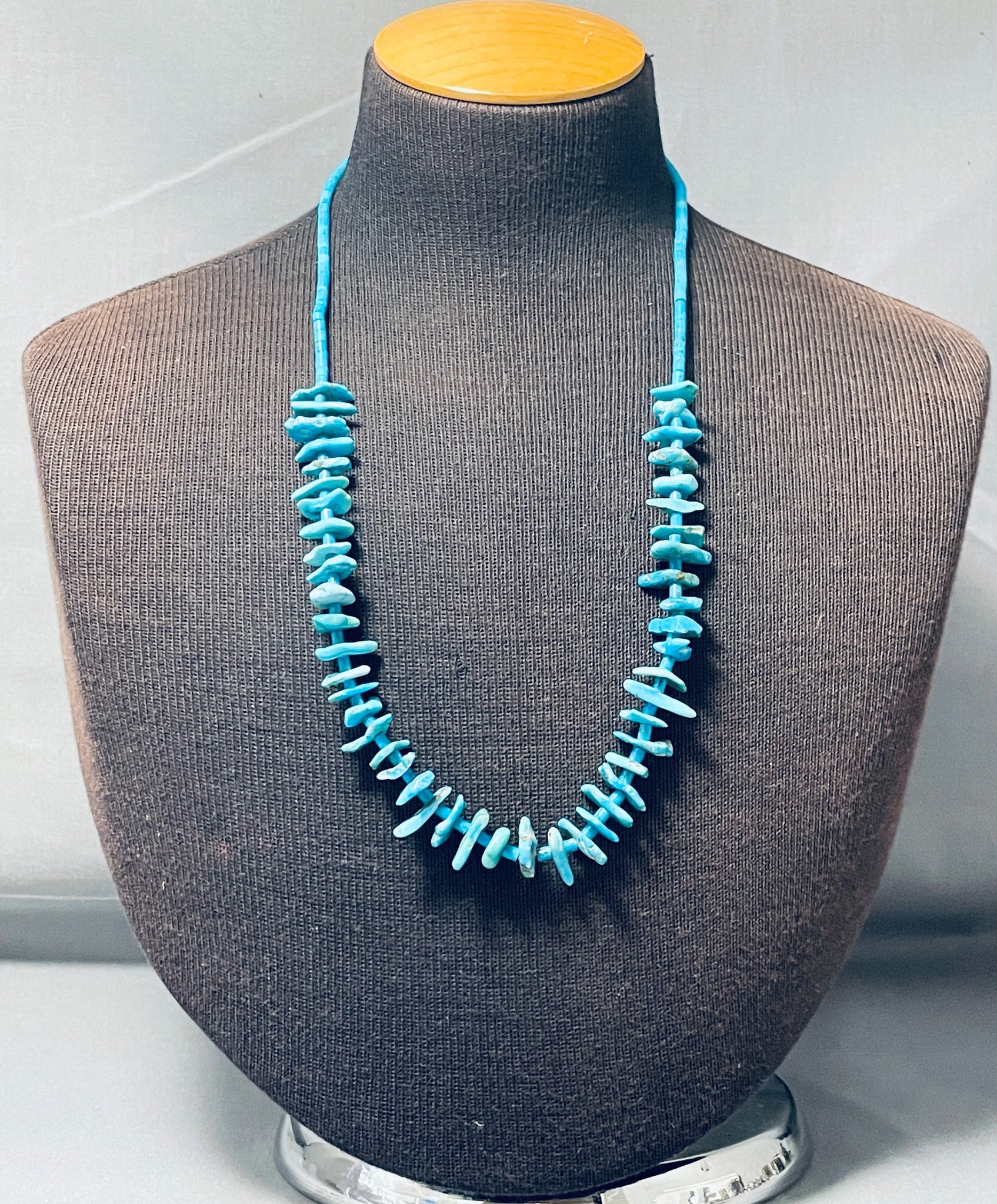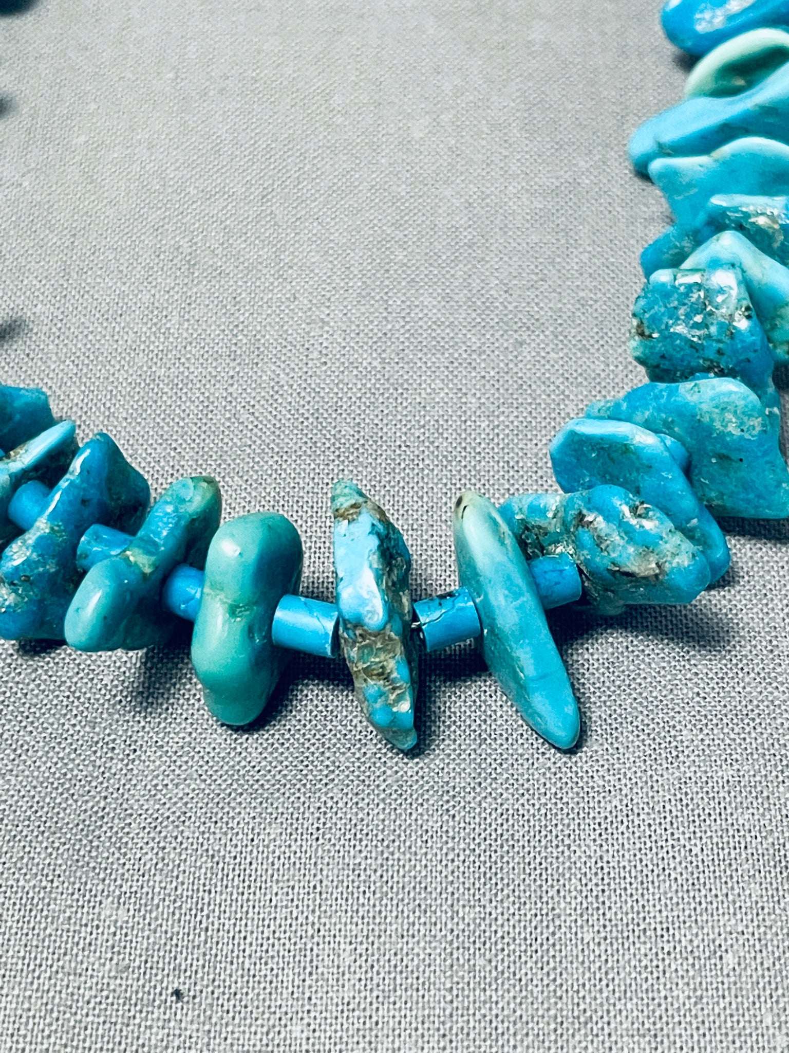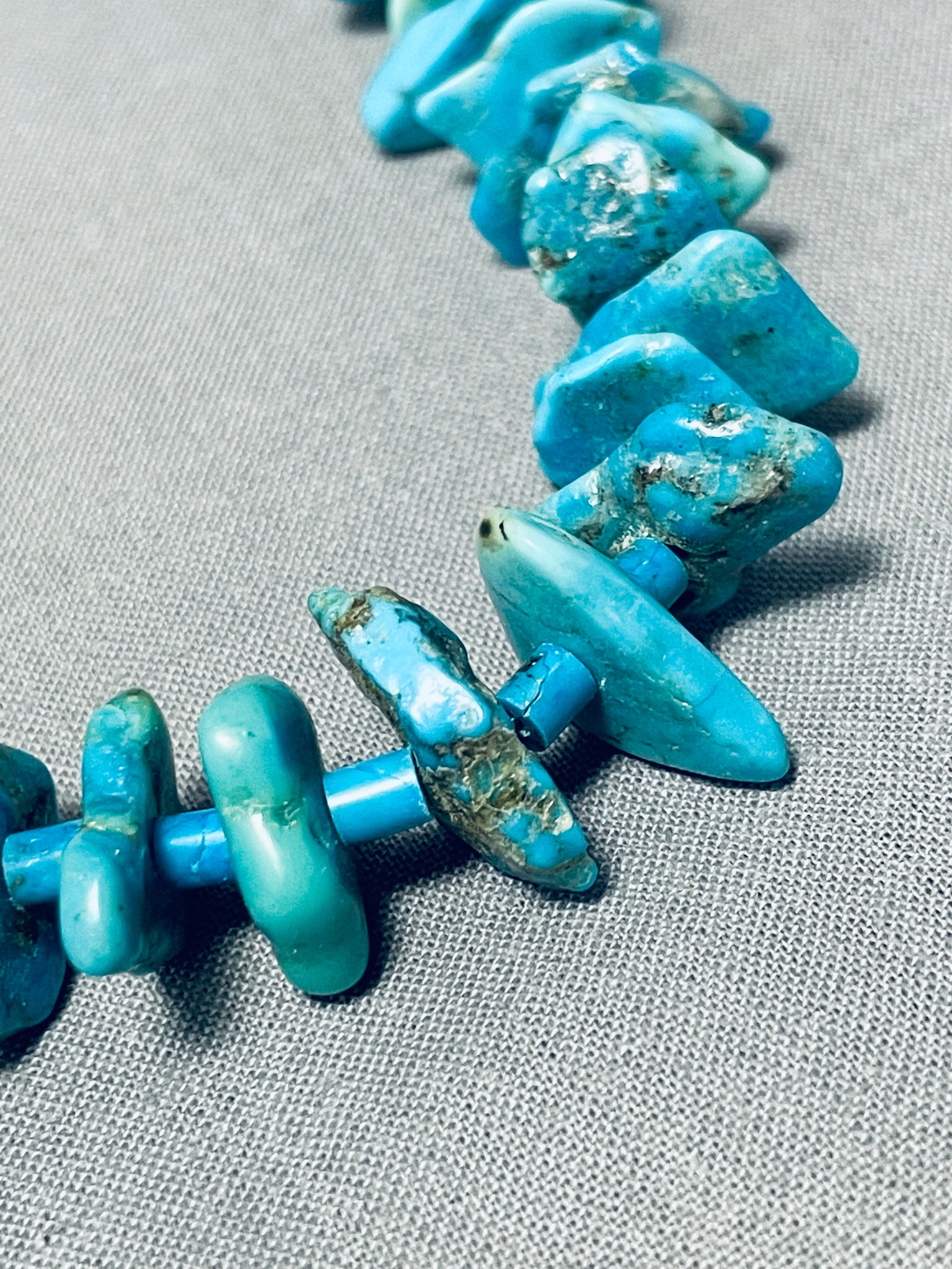 Rare Turquoise Heishi Vintage Native American Navajo Nugget Sterling Silver Necklace