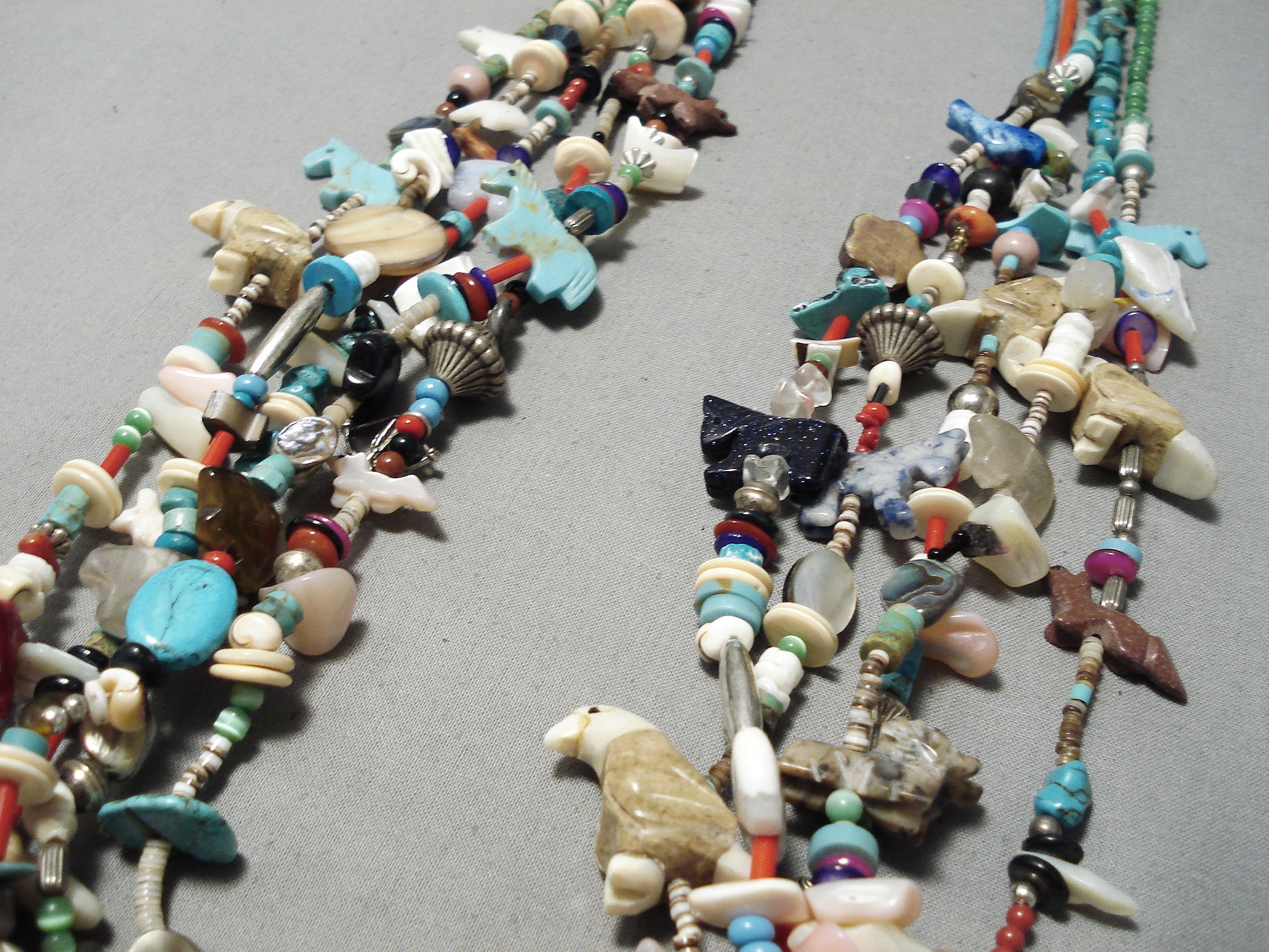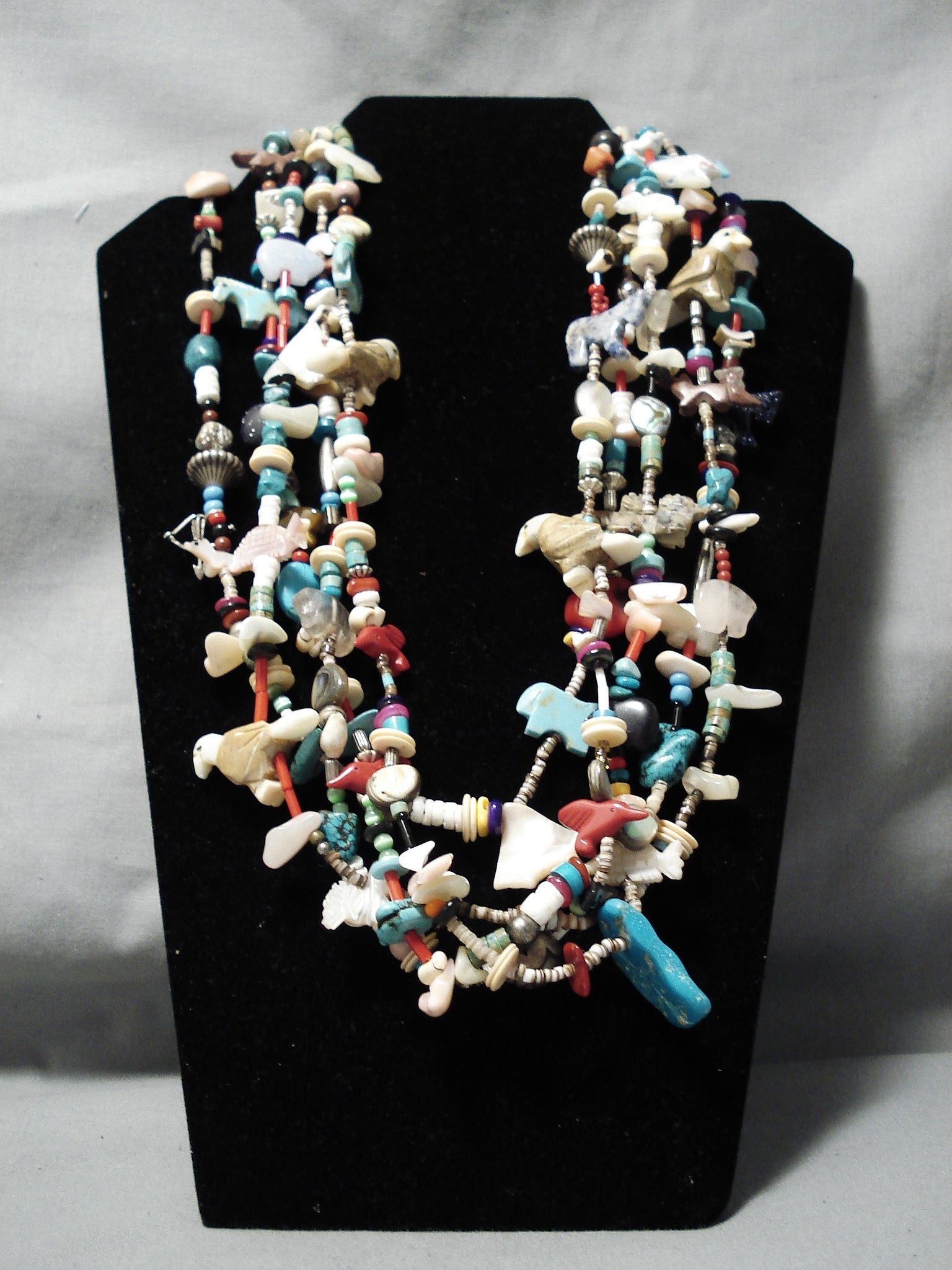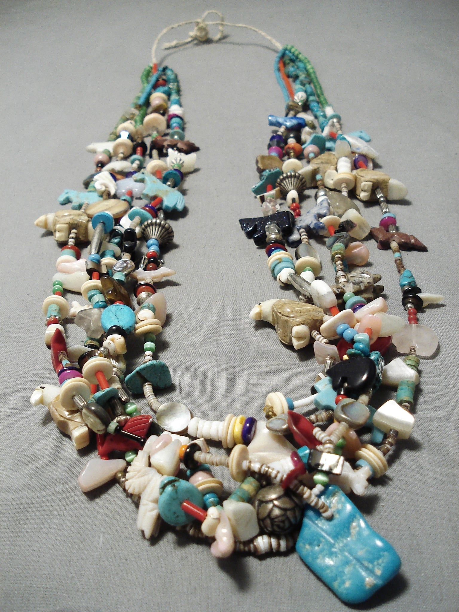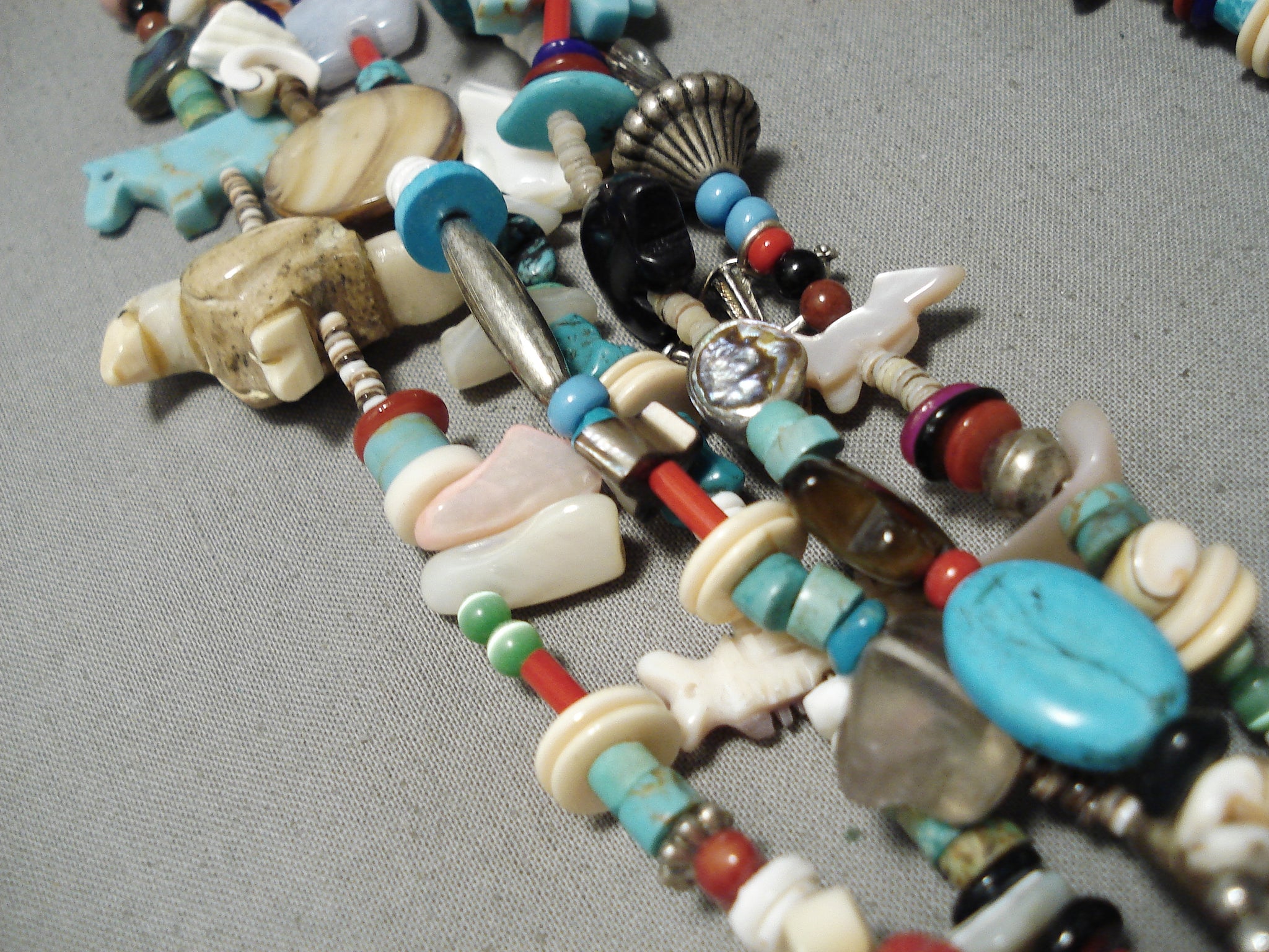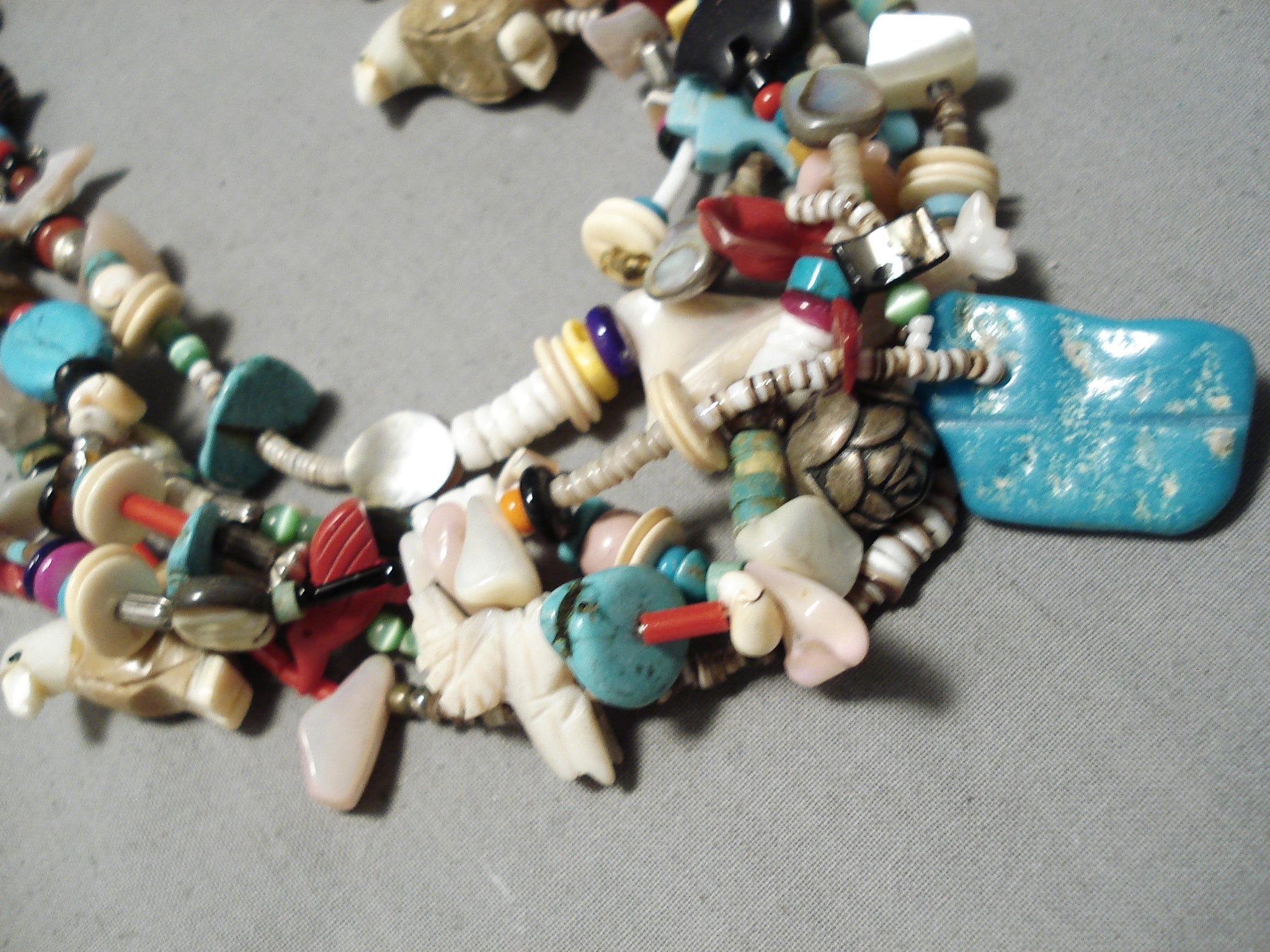 Rare Vintage Native American Navajo 243 Gram Royston Turquoise Charm Sterling Silver Necklace