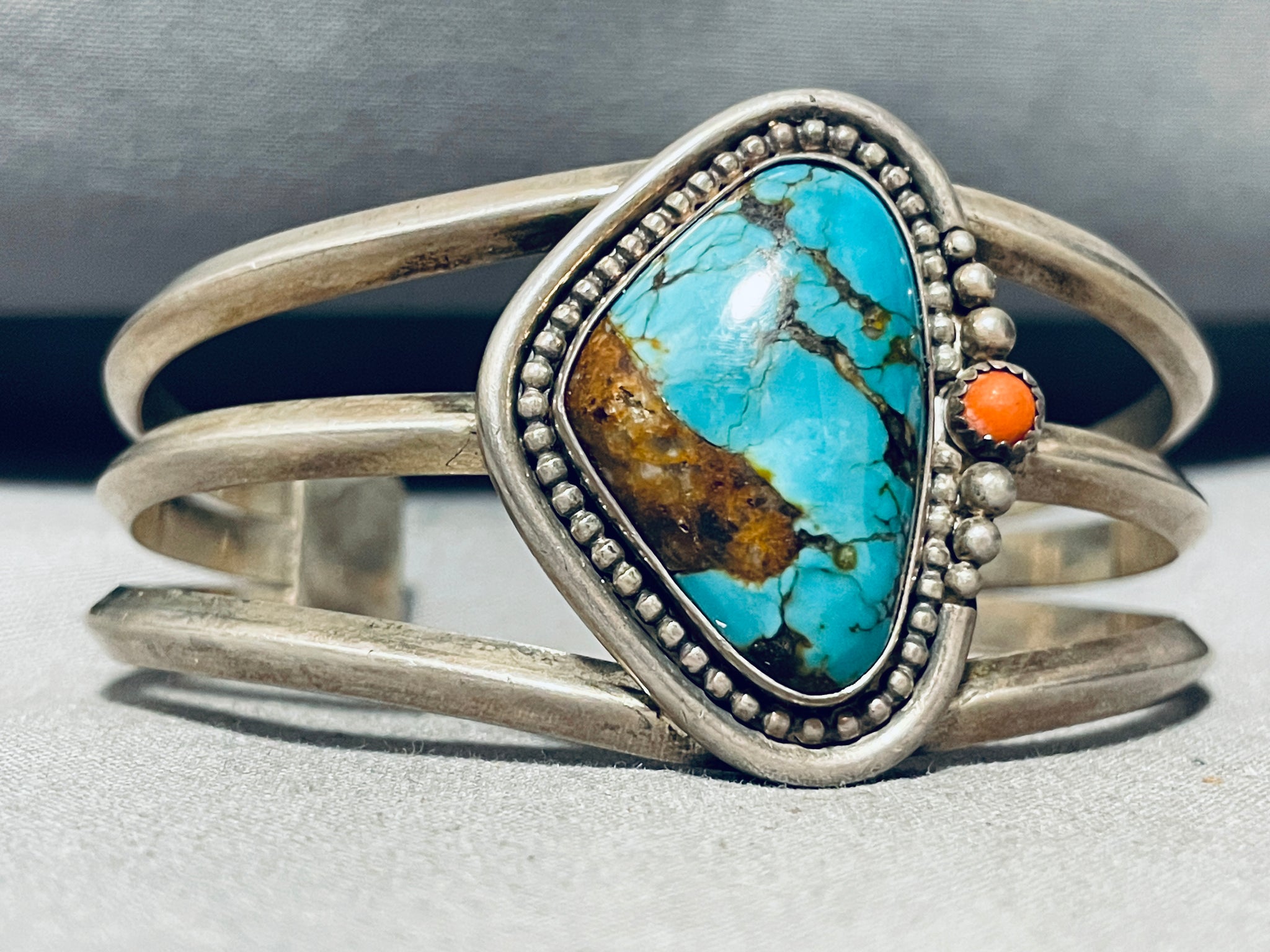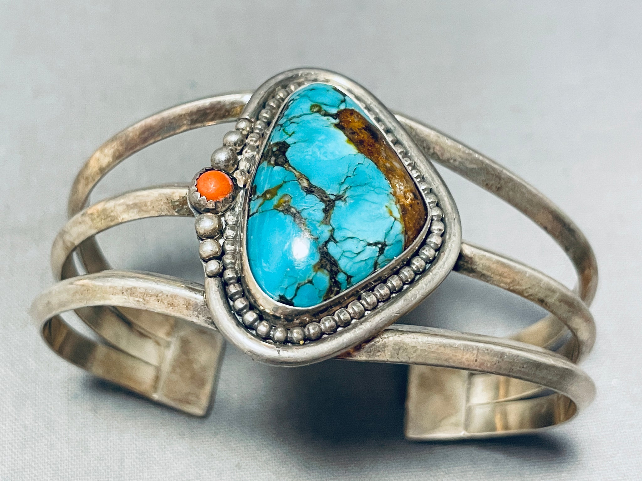 Rare Vintage Native American Navajo Bisbee Turquoise Sterling Silver Bracelet Old