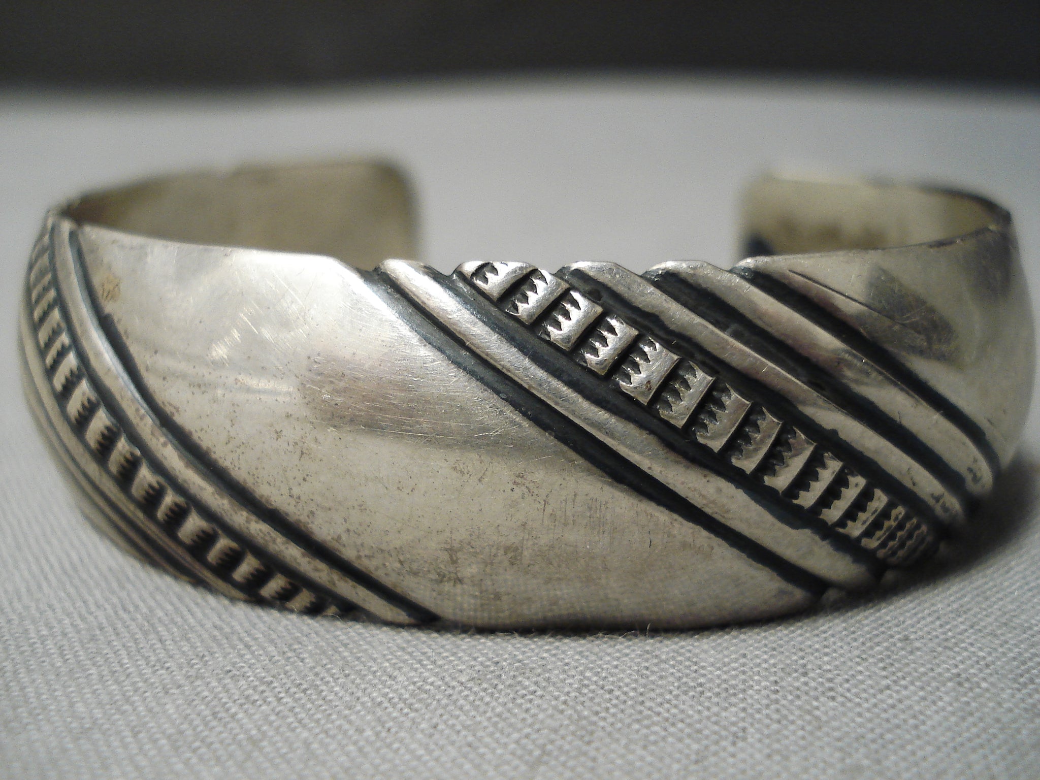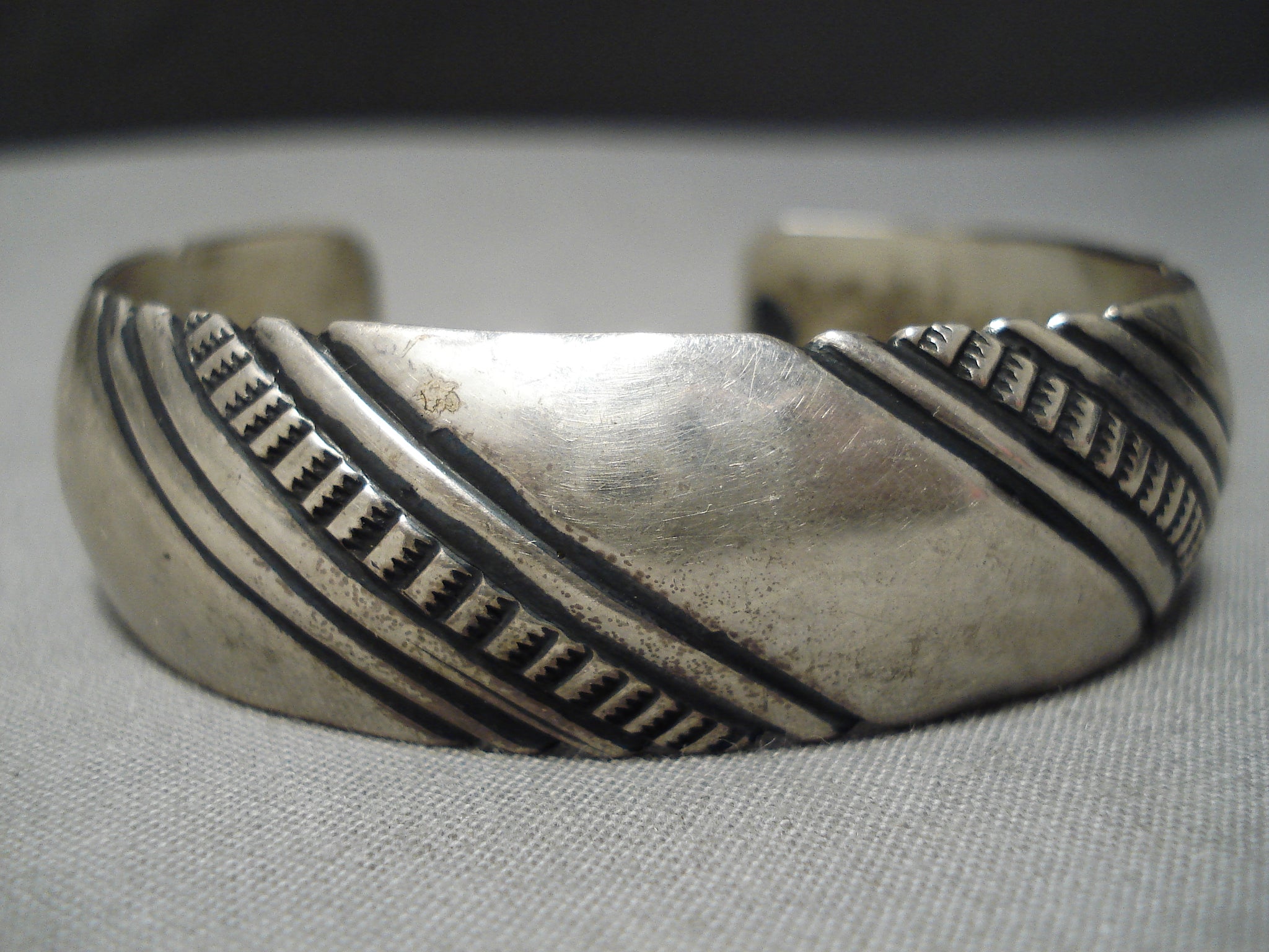 Rare Vintage Native American Navajo Hand Tooled Sterling Silver Segmented Bracelet Old