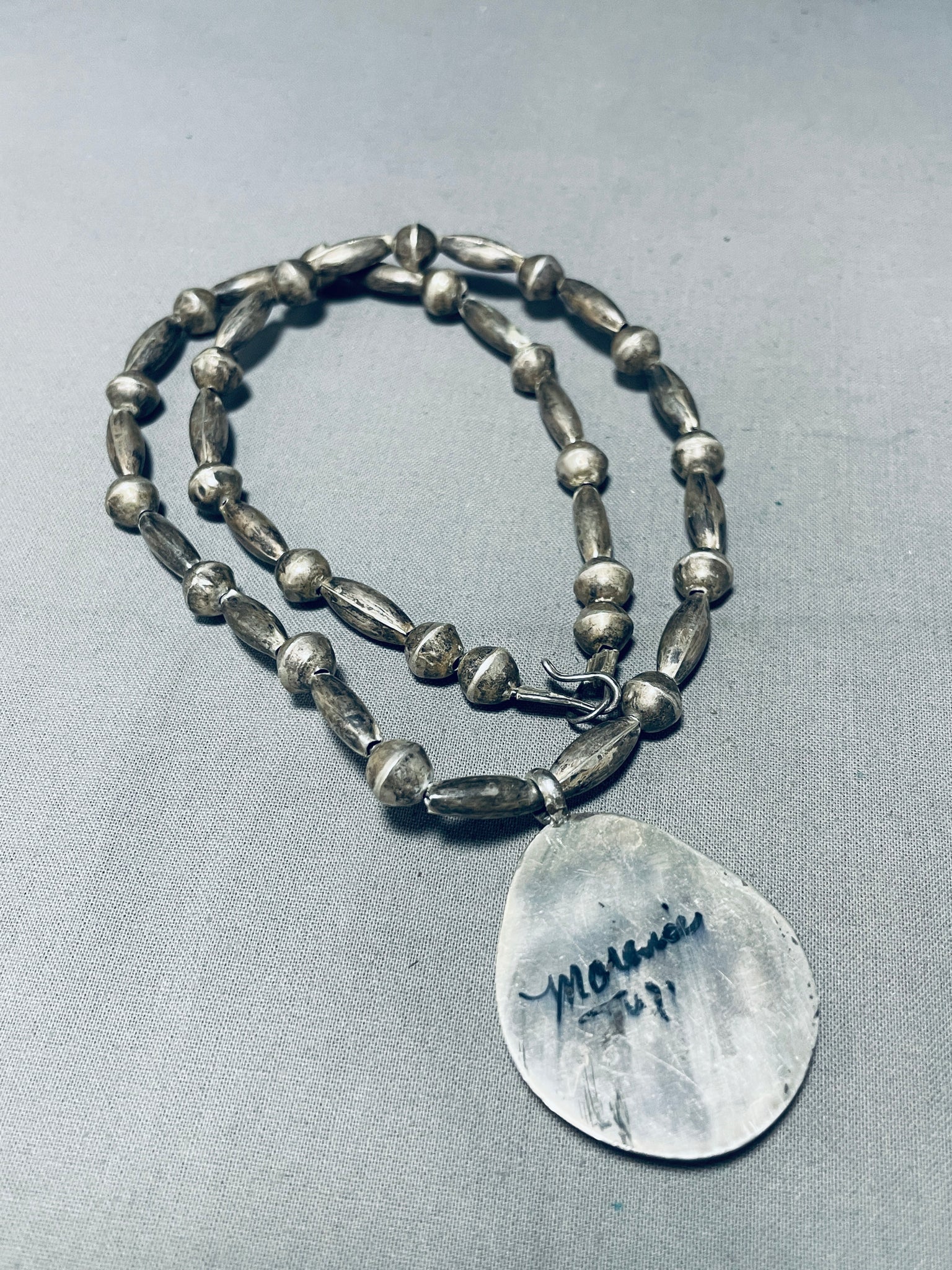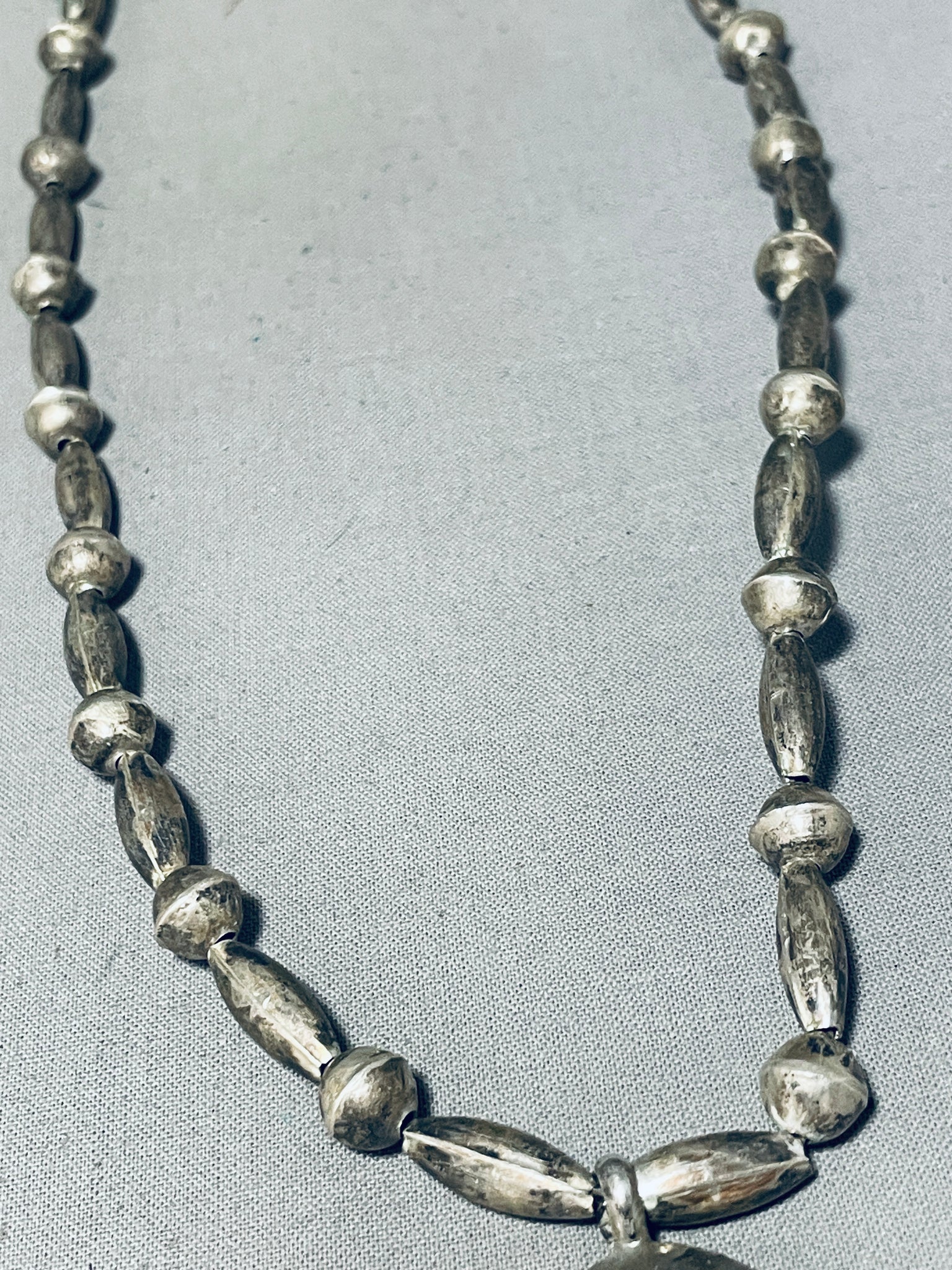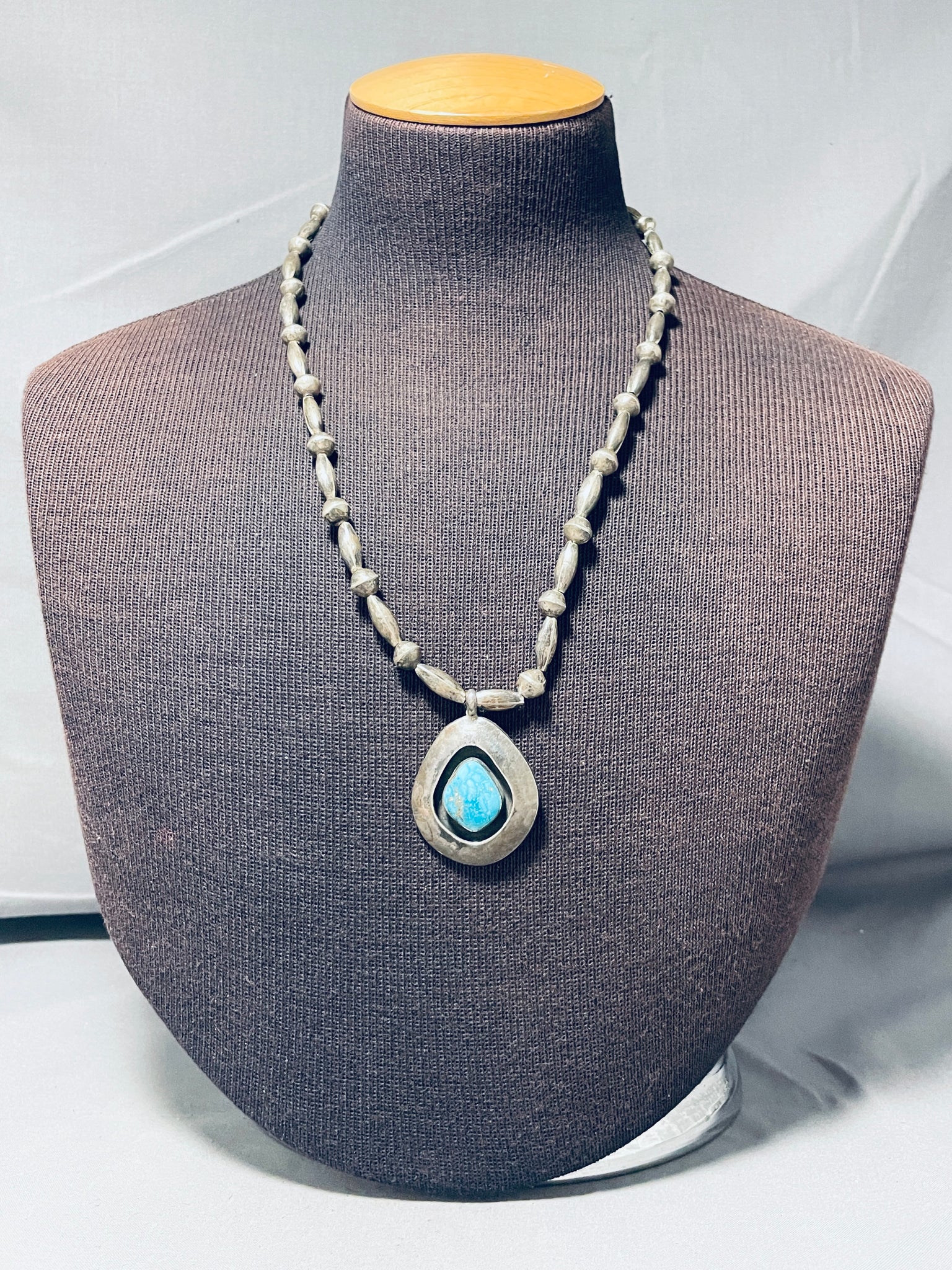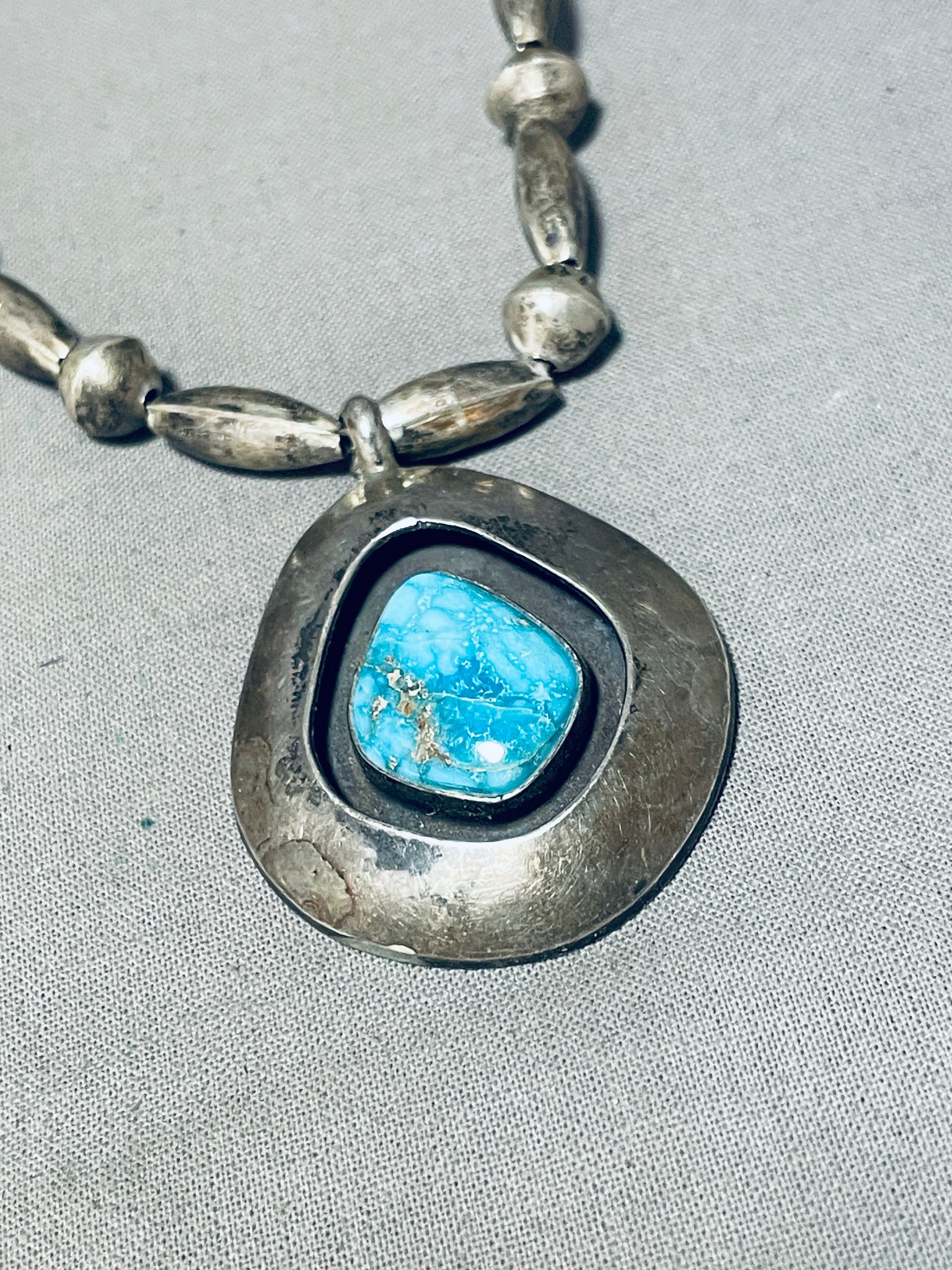 Rare Vintage Native American Navajo Sleeping Beauty Turquoise Silver Shadowbox Necklace