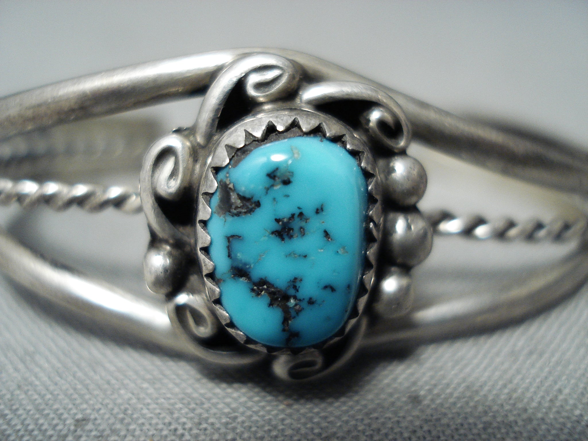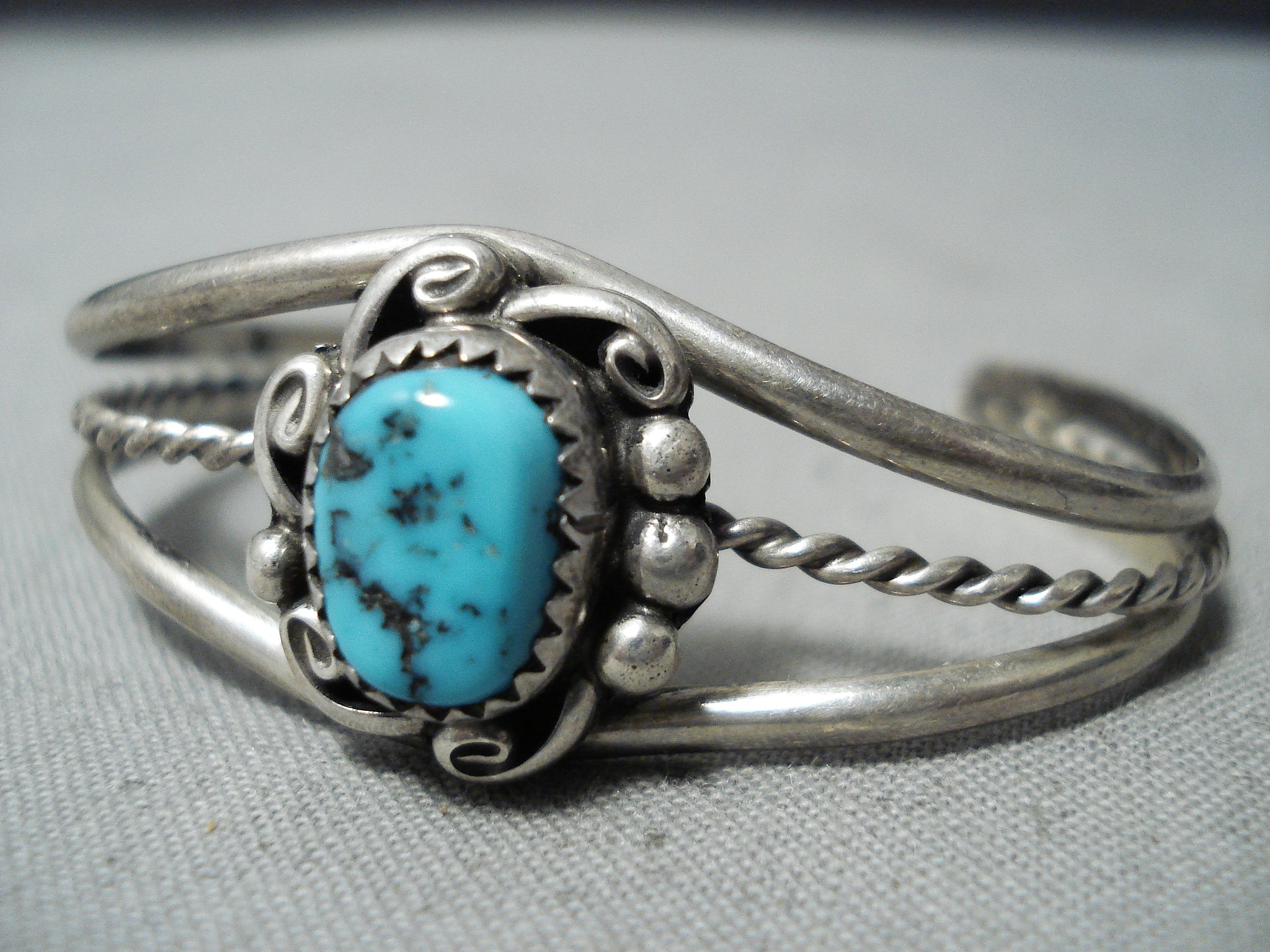 Rare Vintage Native American Navajo Sleeping Beauty Turquoise Sterling Silver Baby Bracelet Old