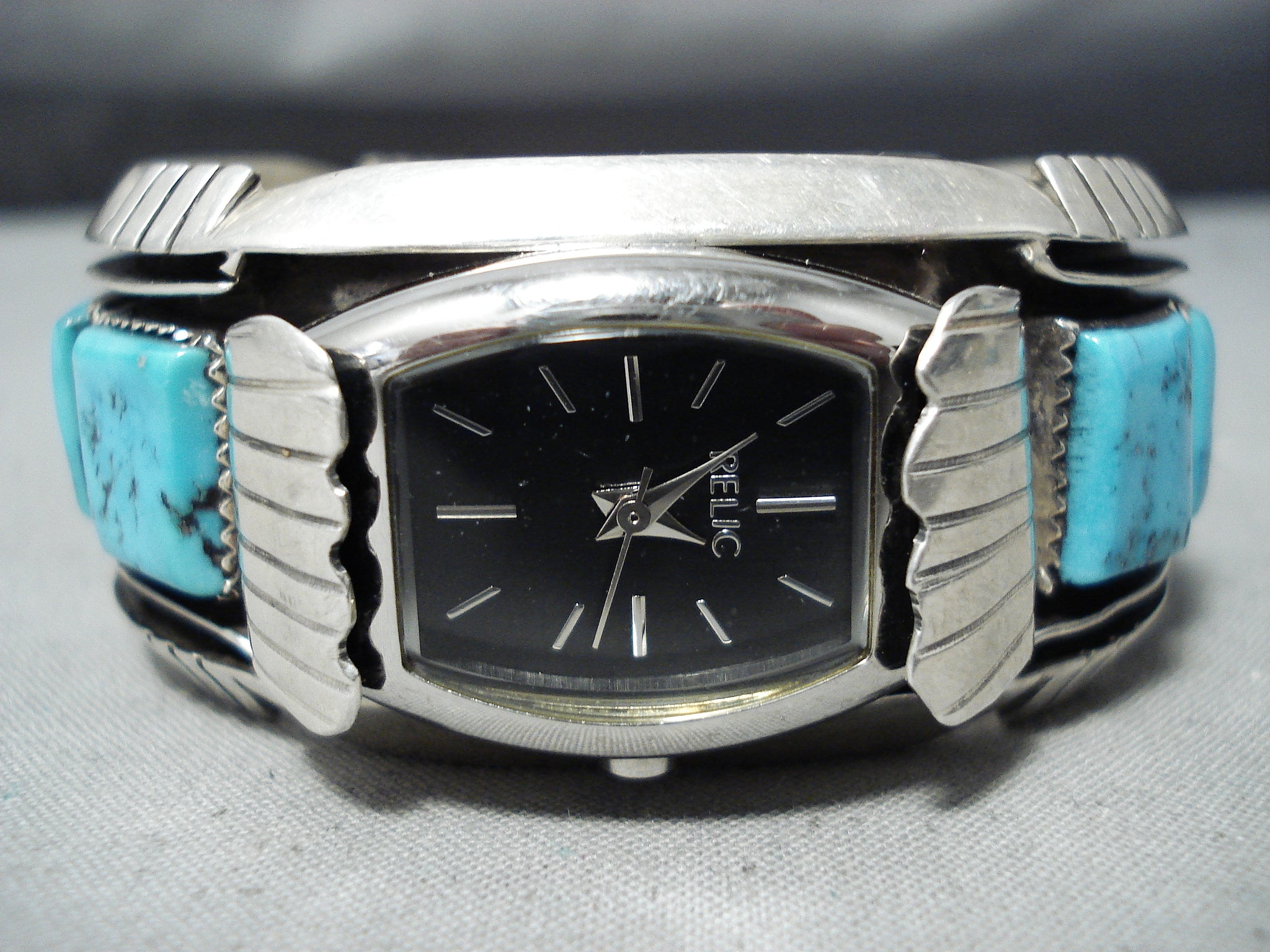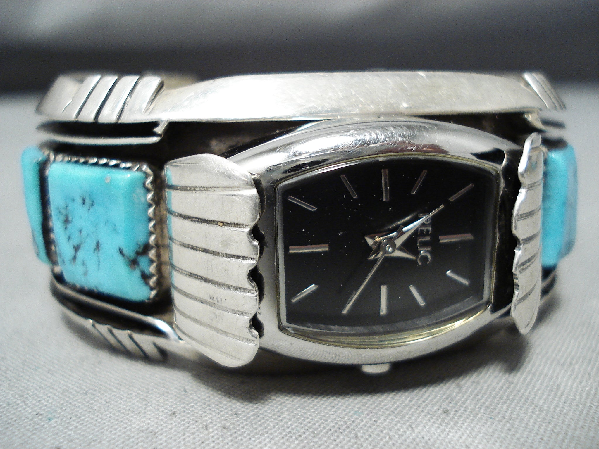 Rare!! Vintage Native American Navajo Sleeping Beauty Turquoise Sterling Silver Watch Bracelet