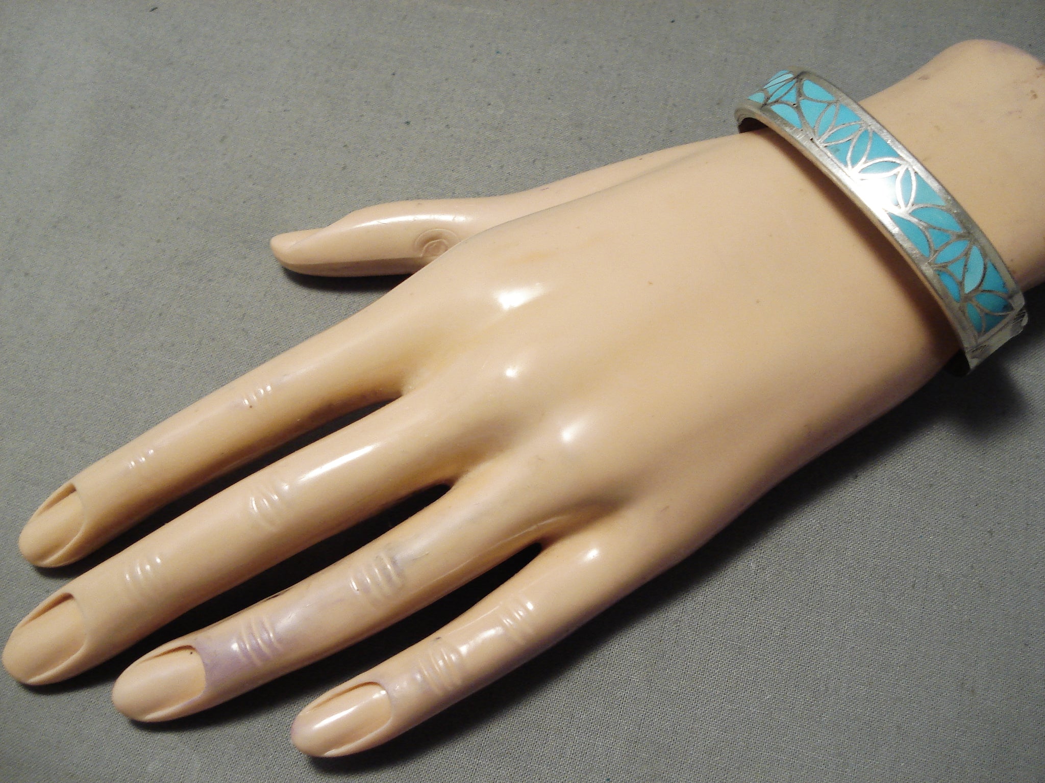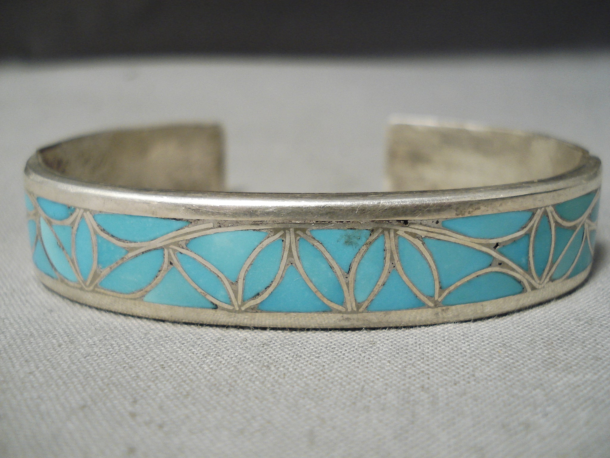 Rare Vintage Zuni Os Nacteva Turquoise Sterling Silver Native American Bracelet